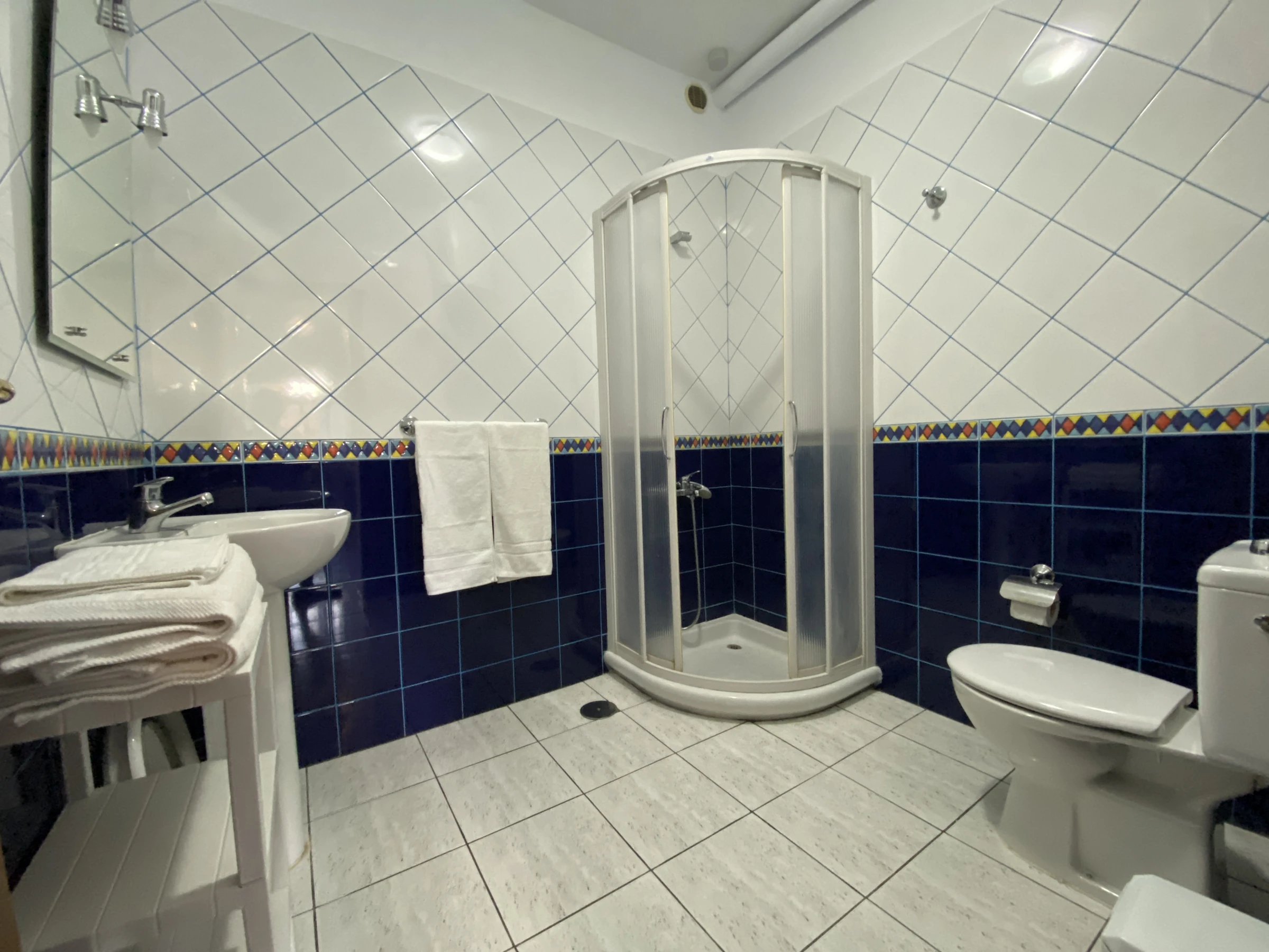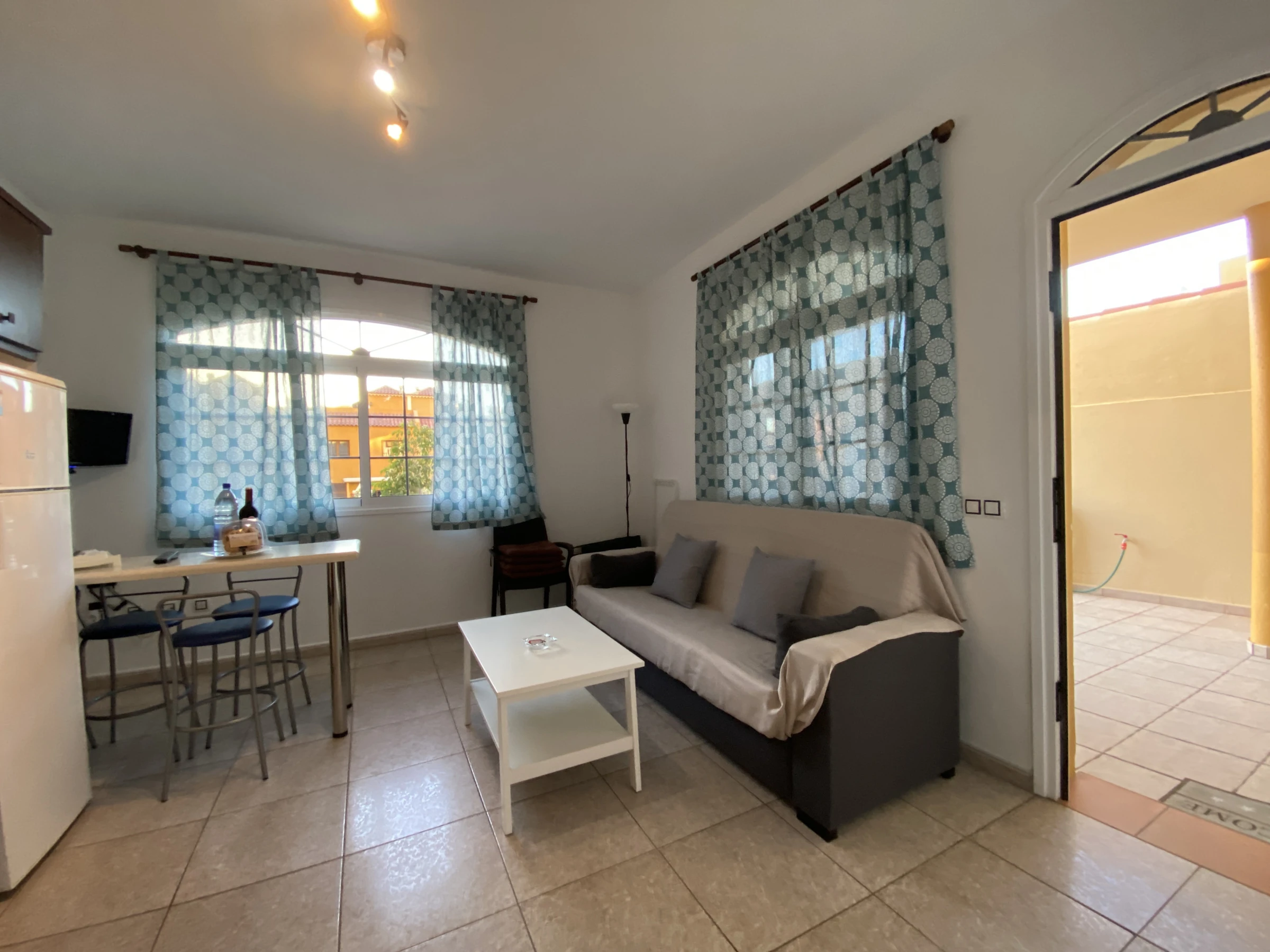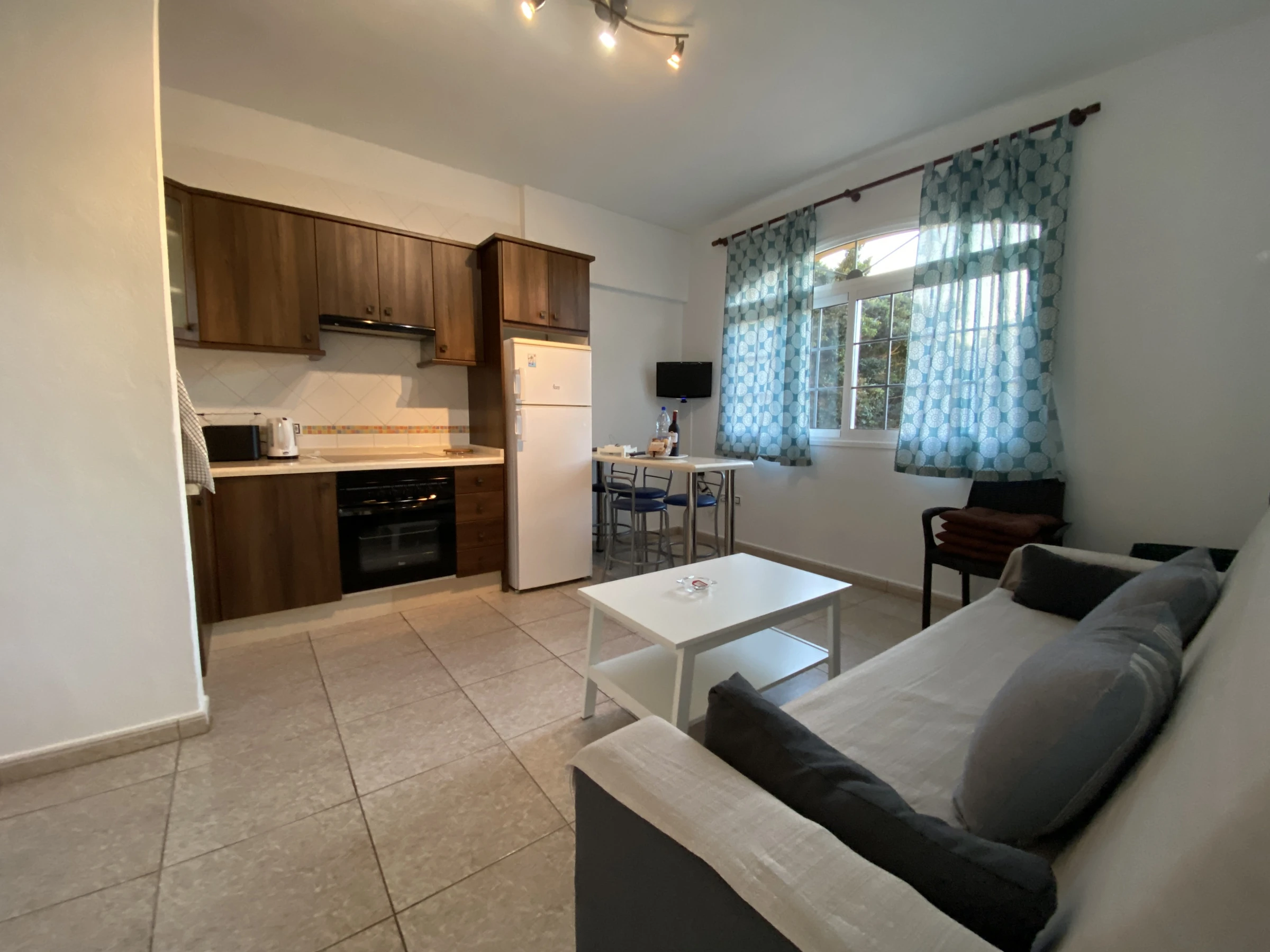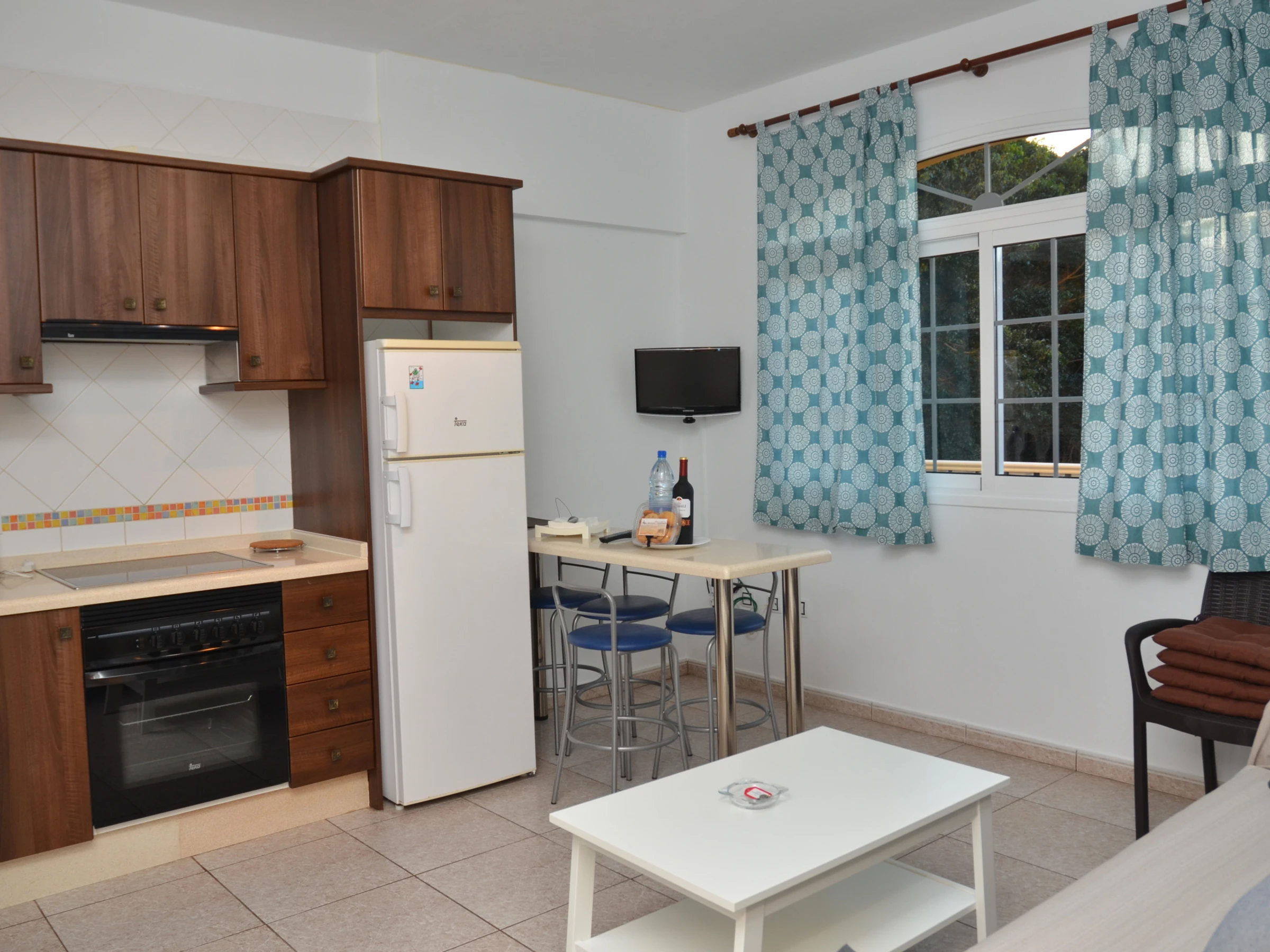 Apartamentos Passiflora son dos apartamentos en la planta baja de una casa privada, que se encuentra en una zona tranquila en el barrio de Borbalán. Desde la carretera hay que pasar por un camino de peatones de más o menos 200 m hasta la casa. Cada apartamento tiene su terraza con mesa y silla y en común hay una azotea equipada con tumbonas. Los clientes del apartamento 1B tienen que pasar al lado de la terraza del apartamento 1A para llegar a su entrada. Los apartamentos están muy bien equipados y decorados en colores alegres. Apartamento 1 A tiene un dormitorio con dos camas individuales, en la zona de la entrada un salón cocina con sofá-cama y televisión, y en la parte trasera y un baño con ducha.