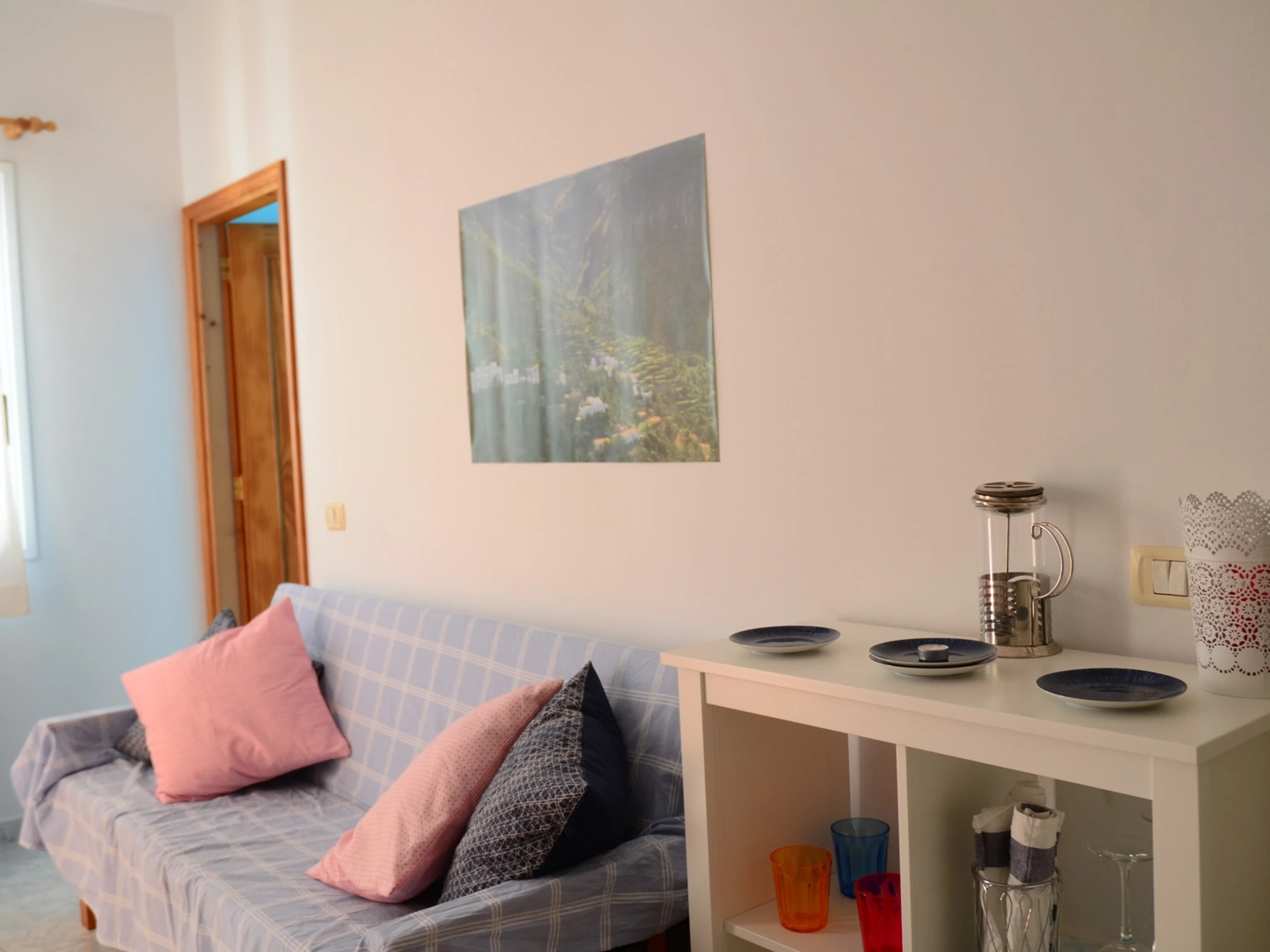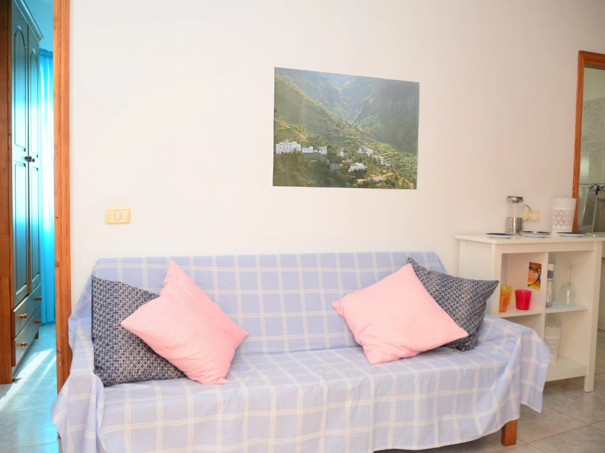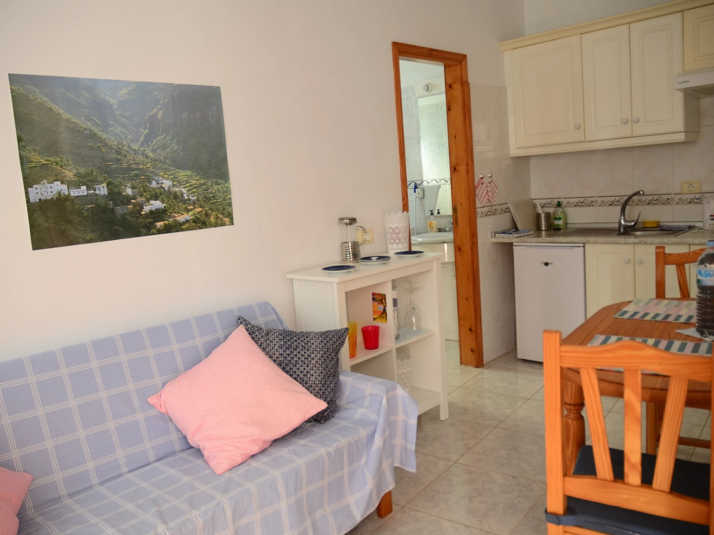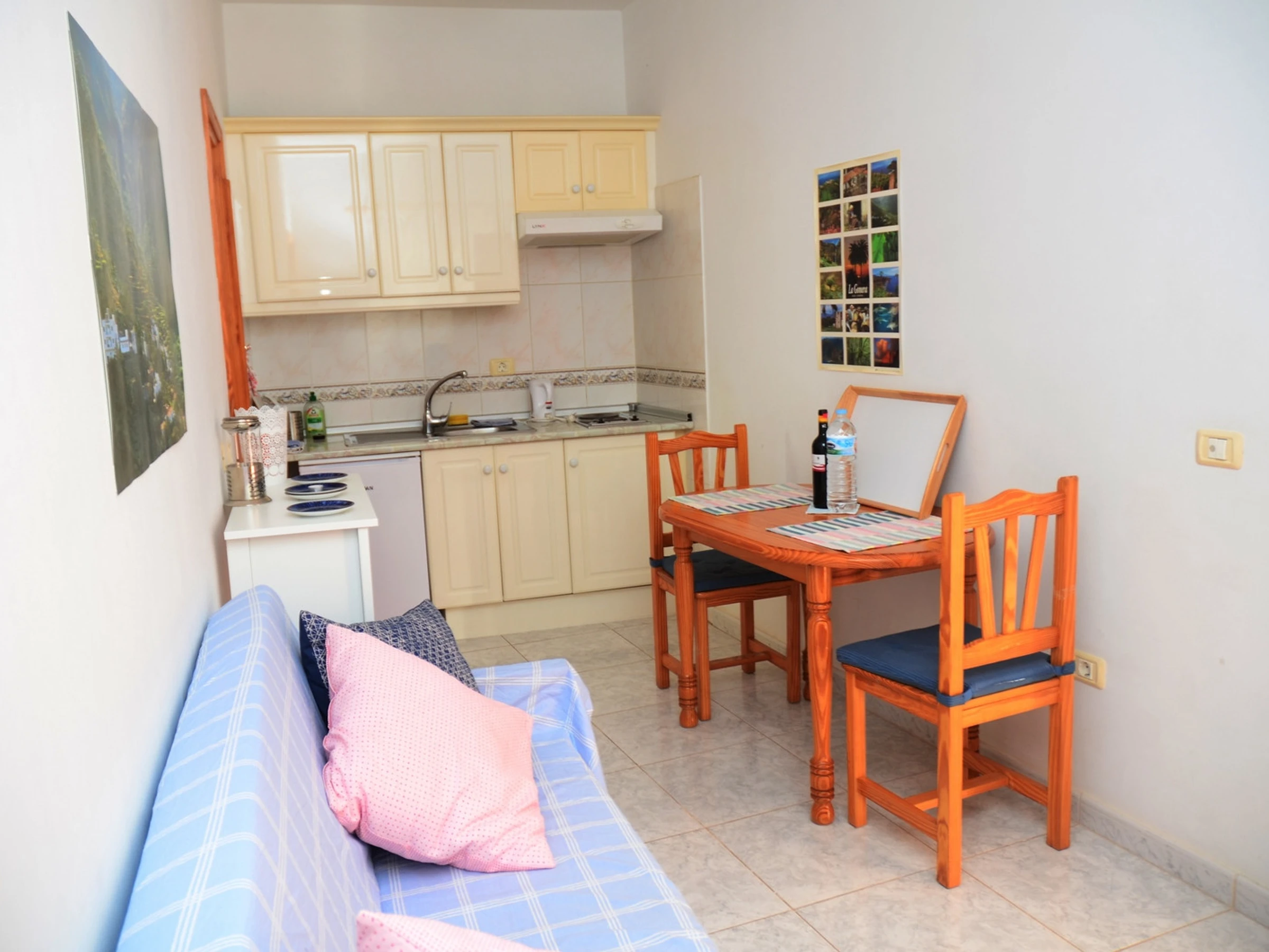 El apartamento Nº 3 es un apartamento particular y se llama Apt. Berit. Consta de una habitación, baño y salón cocina. La terraza se encuentra en la azotea y es común. Está equipada con mesa y sillas. En el apartamento hay una lavadora a su disposición.