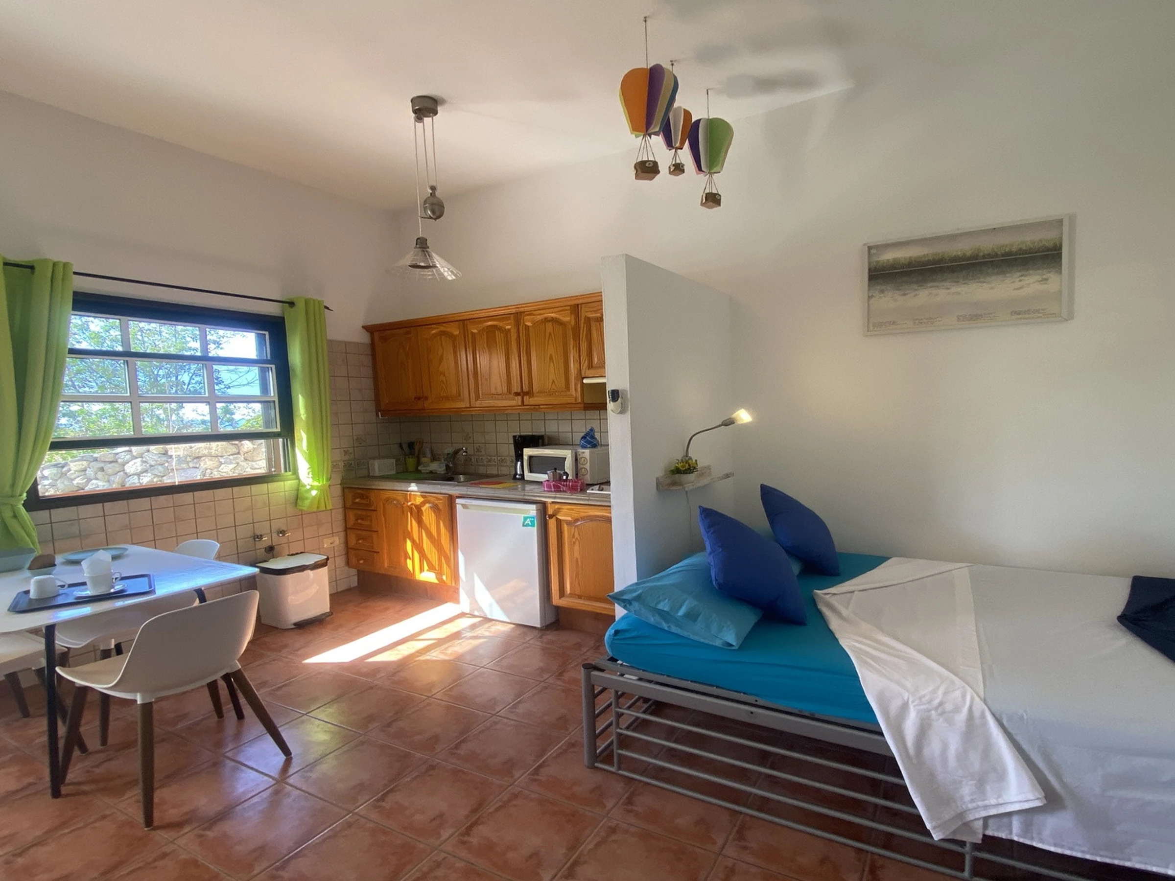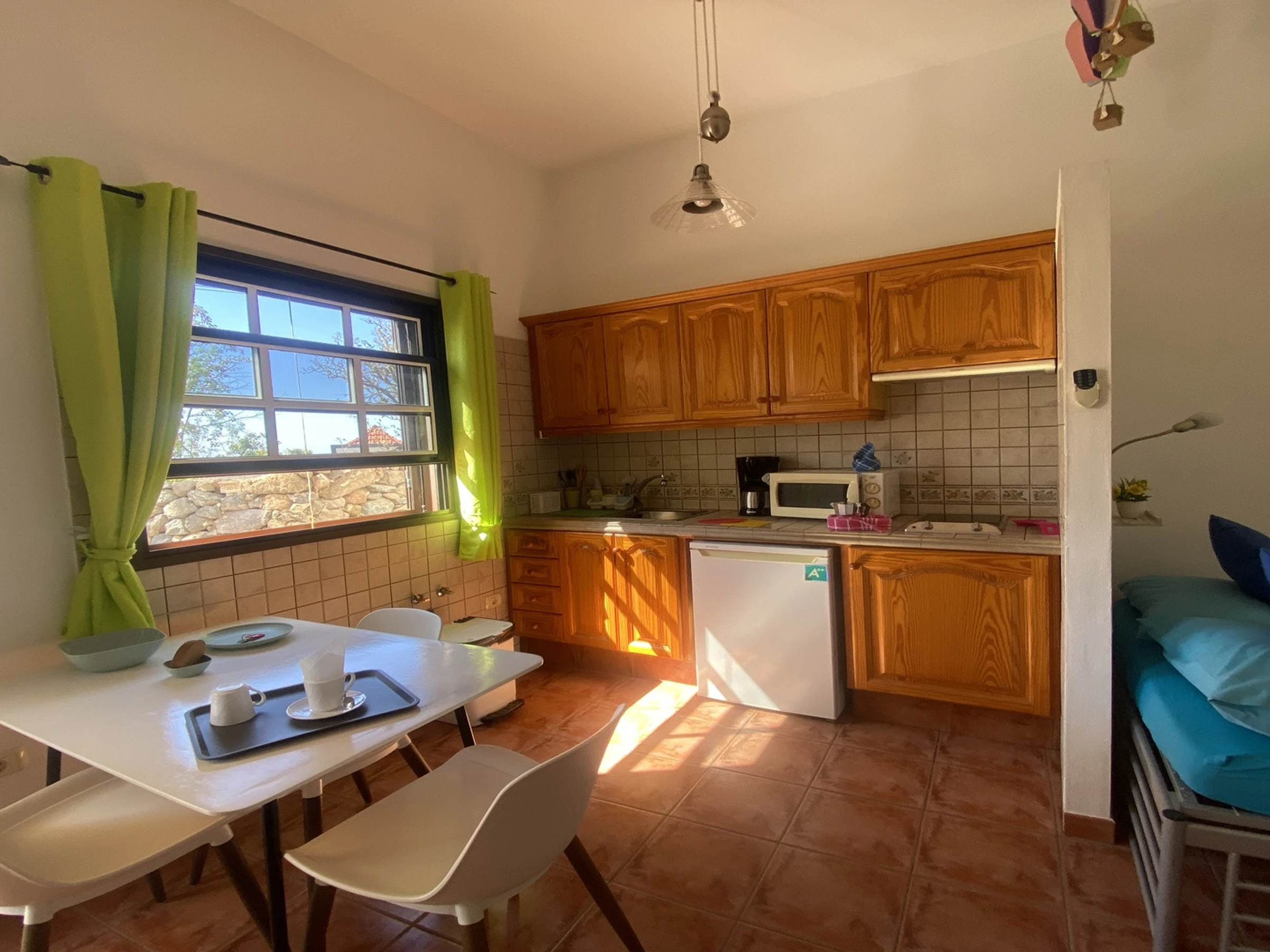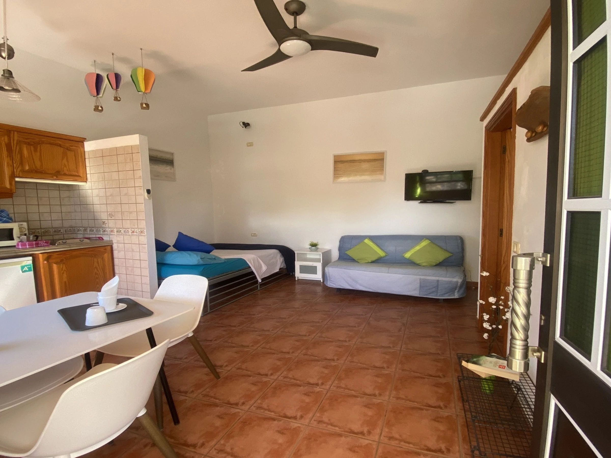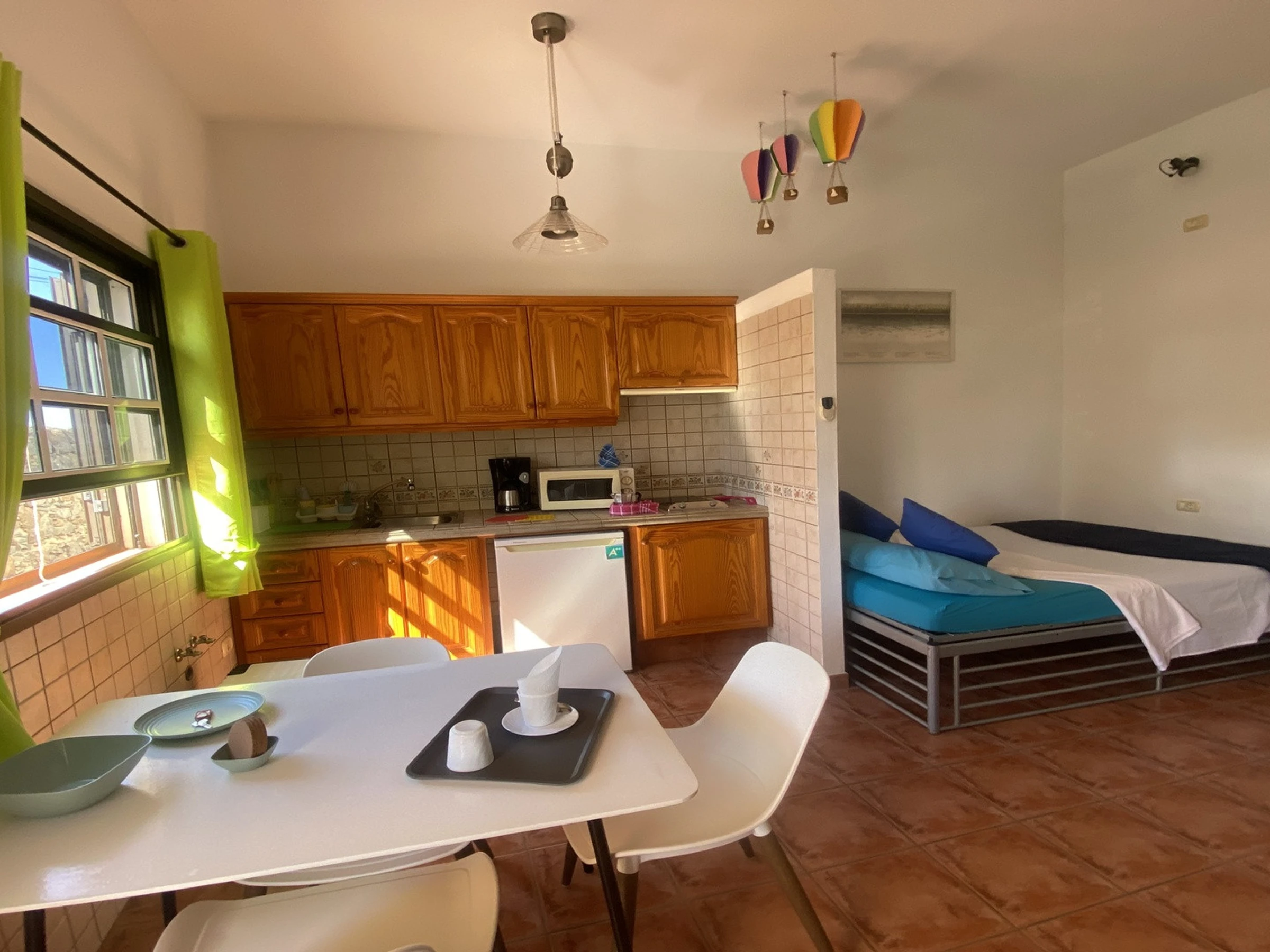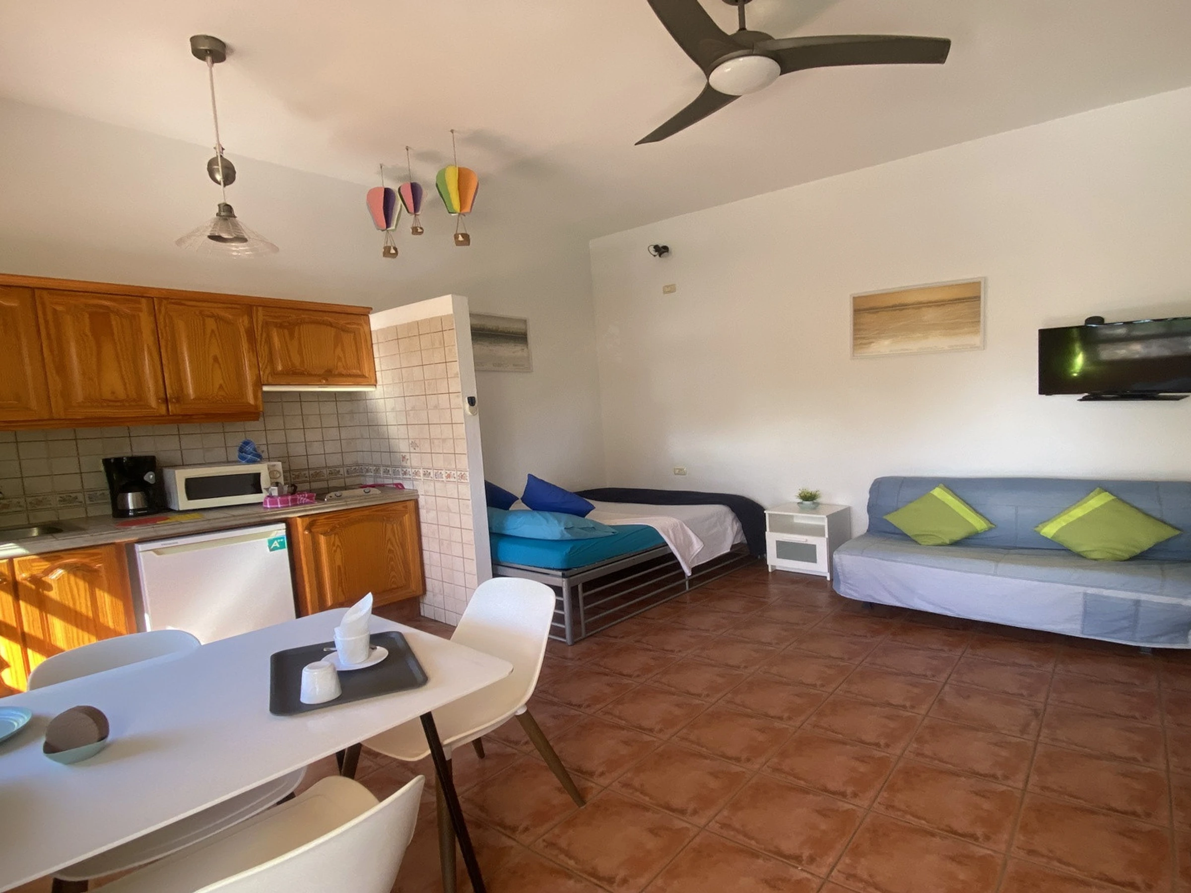 La LONJA 2 es un estudio registrado como Vivienda Vacacional de 30 m2 y consta de un salón con cocina abierta muy bien equipada equipada, mesa comedor, cama de matrimonio de 2'00 m x 1'50 m, un sillón futón 1'90 m x 1'50 m, baño con ducha y secador de pelo.