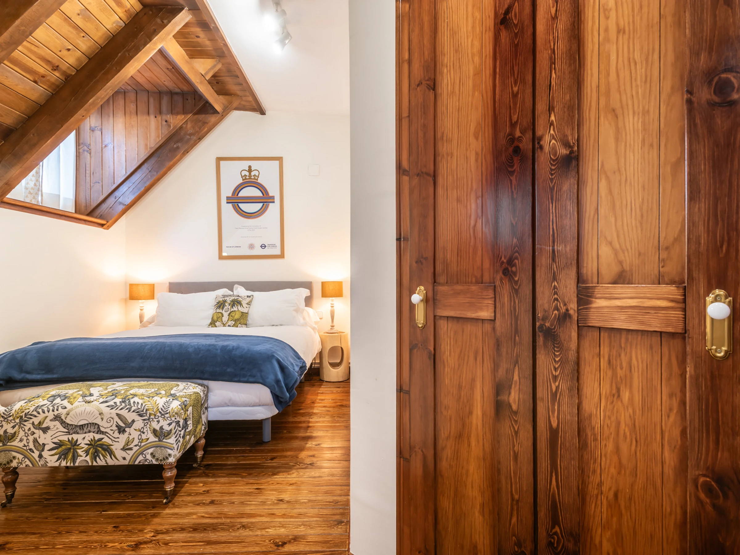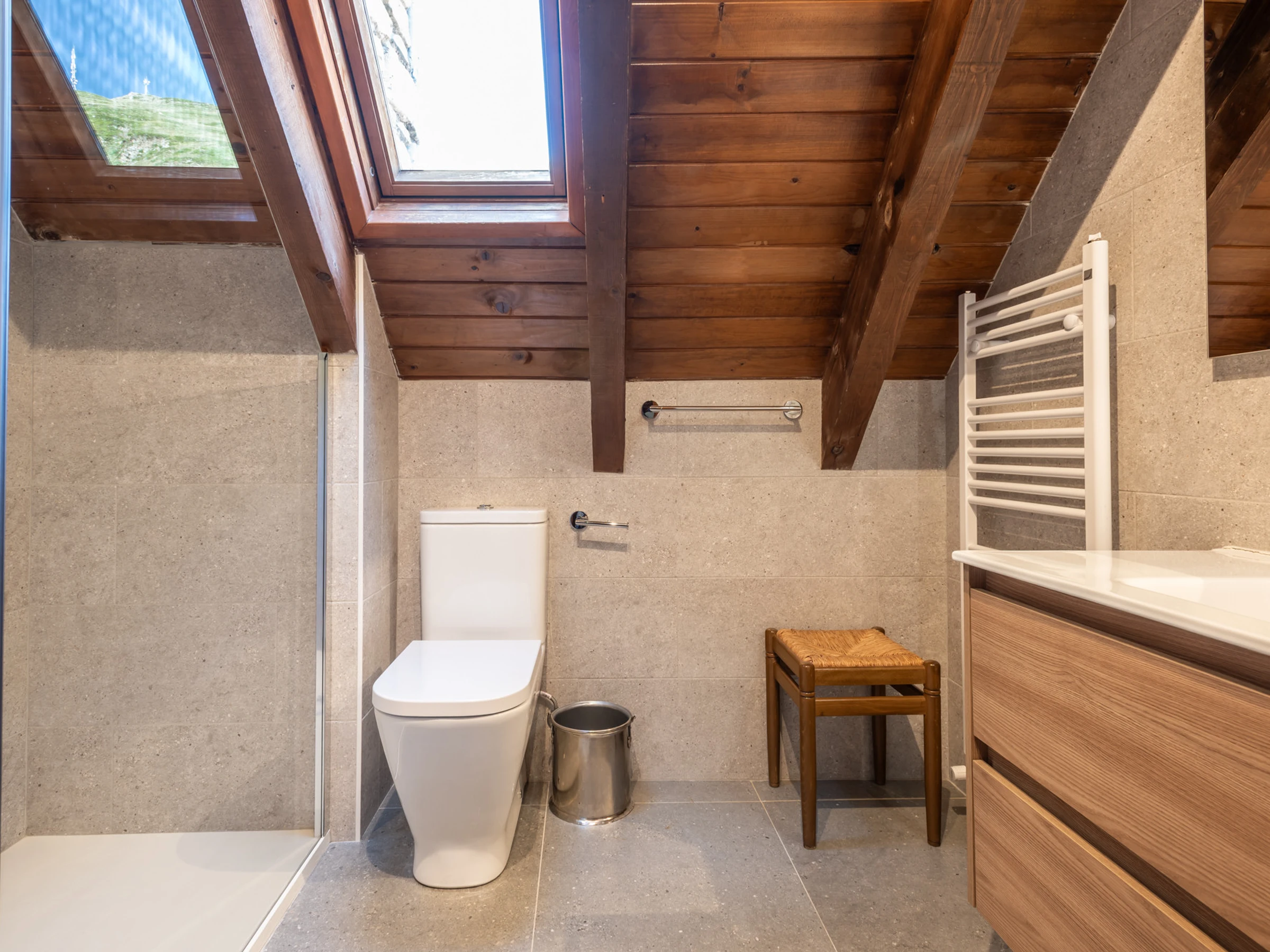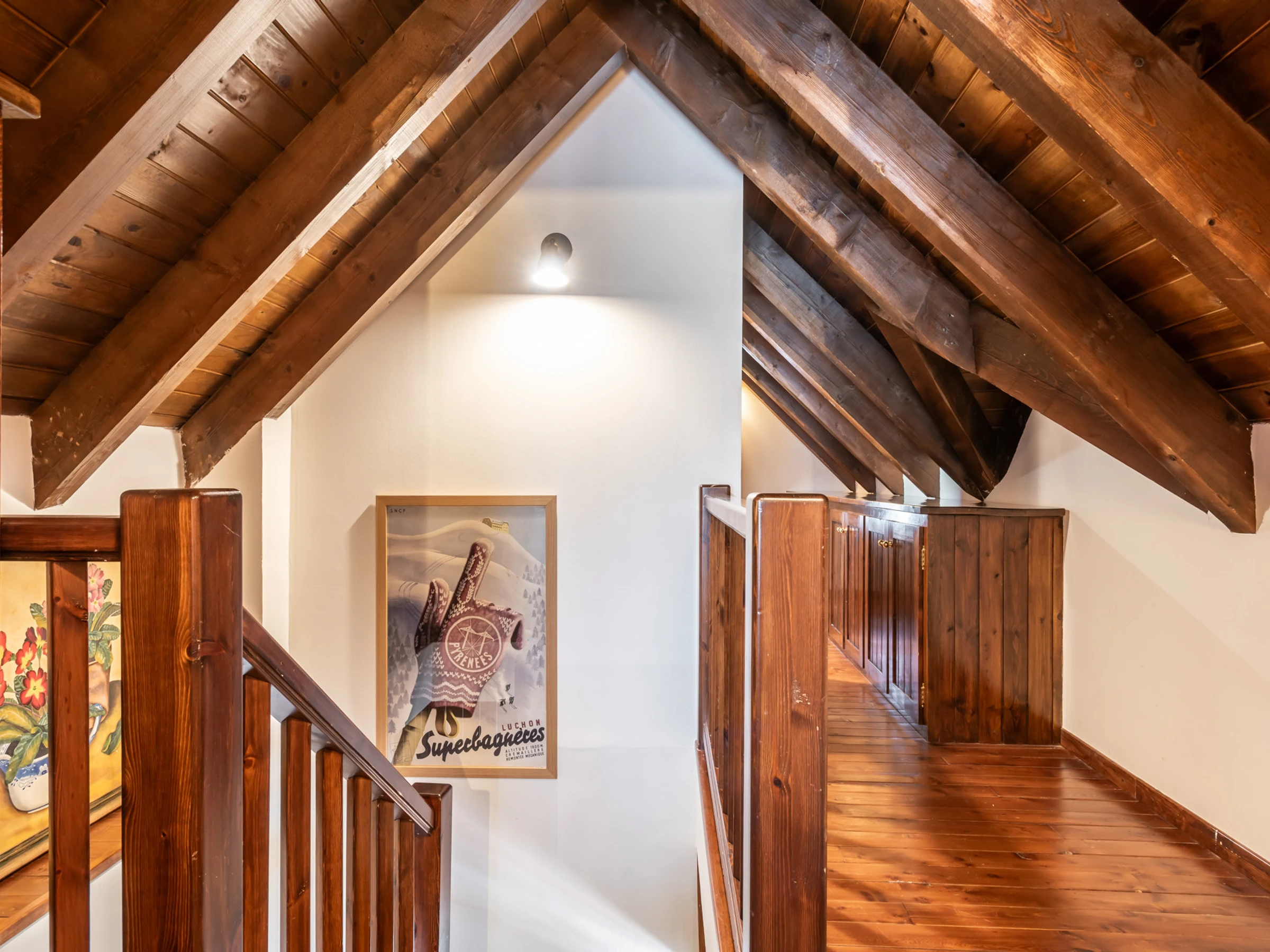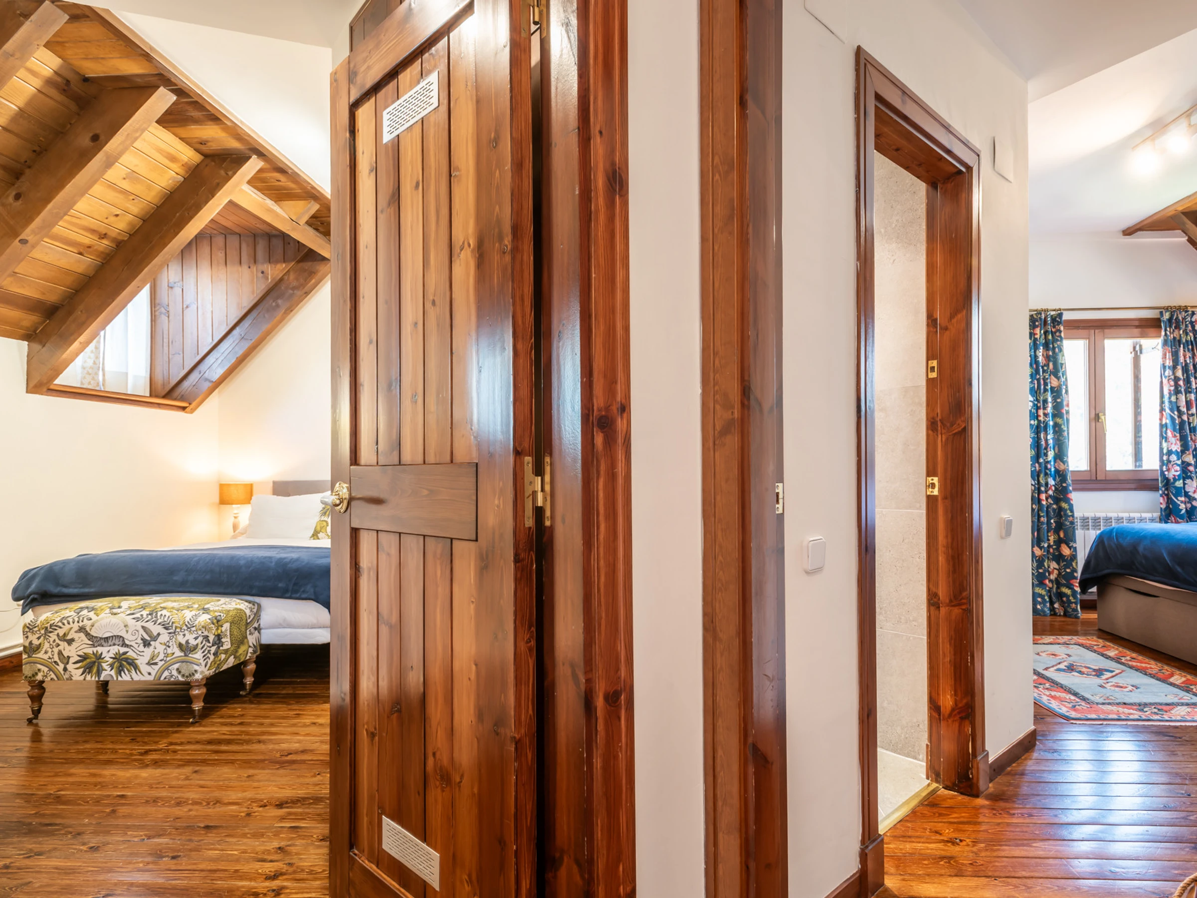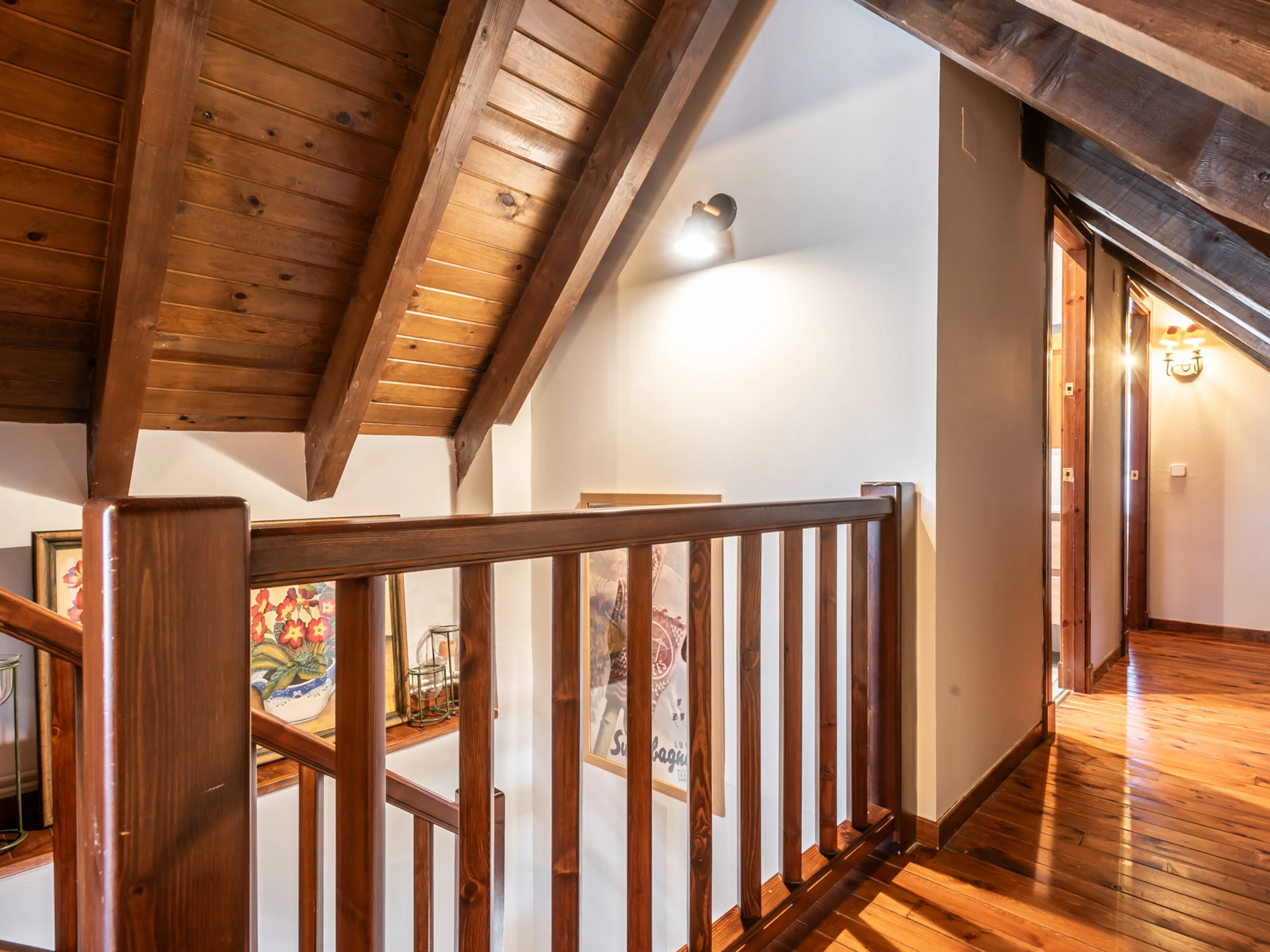 En el segundo nivel ofrece los techos de madera abuhardillados, aquí están el tercer y cuarto dormitorio cada uno ubicado al extremo de un pequeño pasillo. Ambos cuartos ofrecen ventanas y luz natural con preciosas vistas. Estas dos habitaciones tienen camas dobles. En el pasillo hay un baño completo para estas dos habitaciones. En esta planta encontrará además el armario de la lavadora.