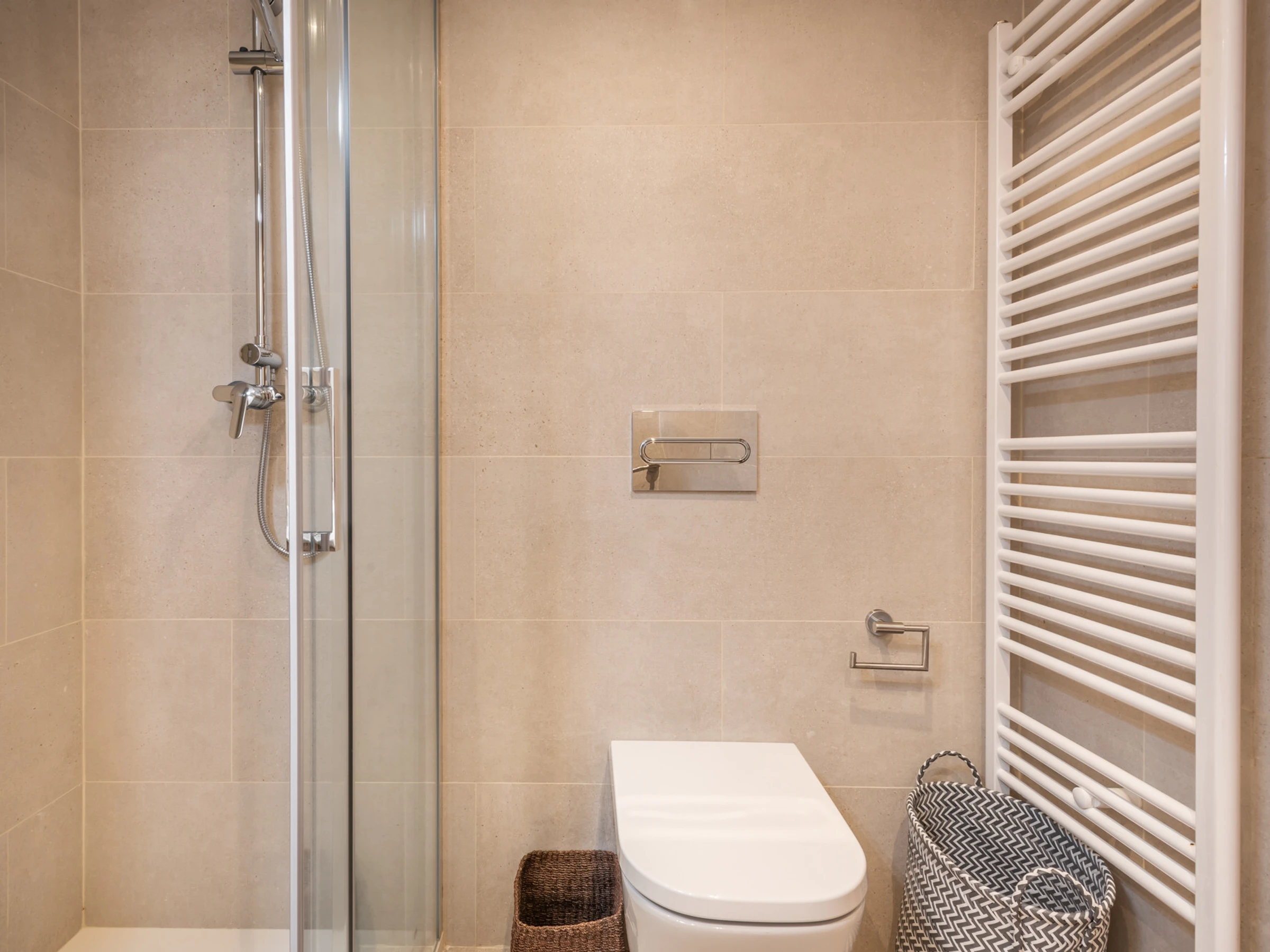 En este mismo nivel por una puerta, tienes acceso a dos dormitorios. A la izquierda verás un dormitorio con armarios empotrados a la entrada, cama doble y su baño en suite con bañera. El segundo es el dormitorio es la master suite con el baño completo de bañera, una gran cama de matrimonio, armarios empotrados y unas espectaculares vistas desde su balcón.