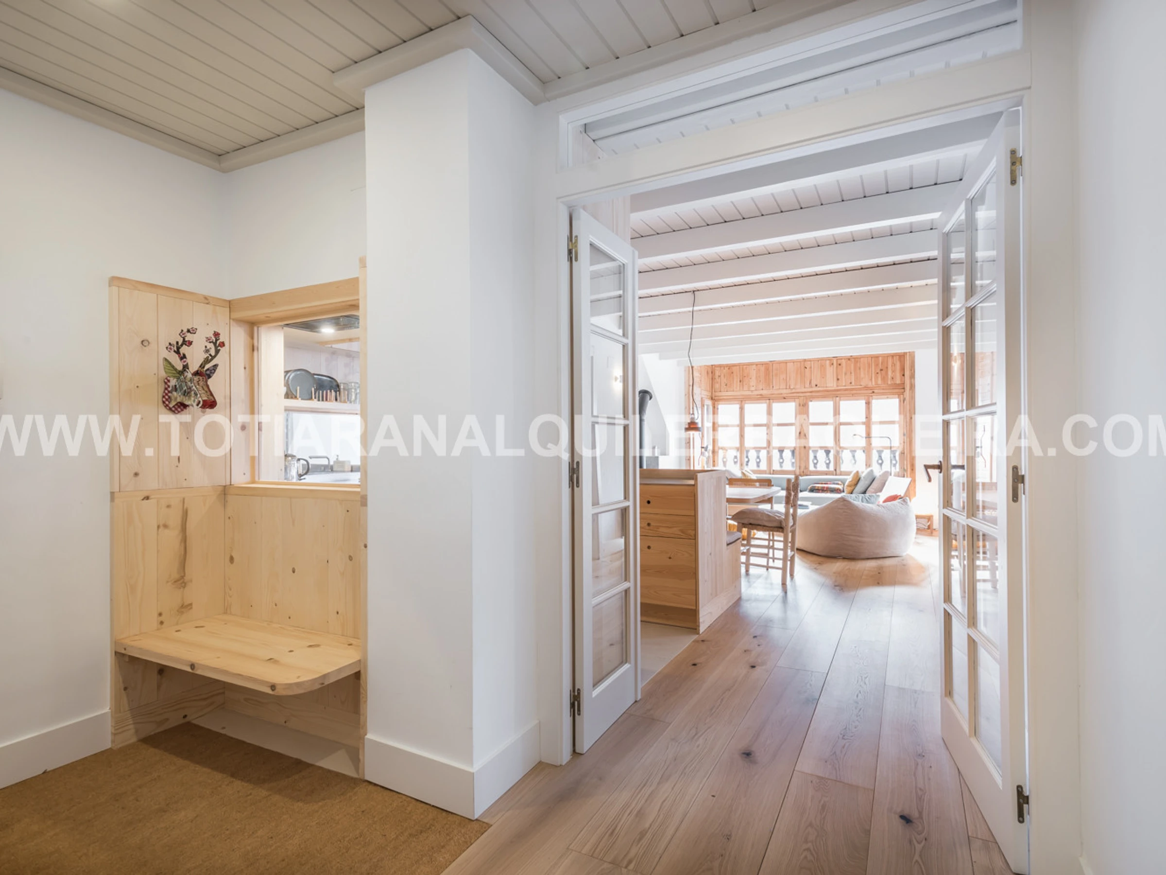 Este apartamento de alquiler vacacional en Baqueira Beret es ideal para 9 personas( 6 adultos). Está situado en una privilegiada urbanización a tan solo a 5 minutos caminando hacia el telesilla de “Esquiros” . Tiene una taquilla en las salas de guardaesquís de Tanau, que hay junto al telesilla. Una situación inmejorable para los amantes del esquí. Y para los que en verano buscan salir directamente hacia la montaña, además la casa ofrece una terraza- balcón con impresionantes vistas al valle.