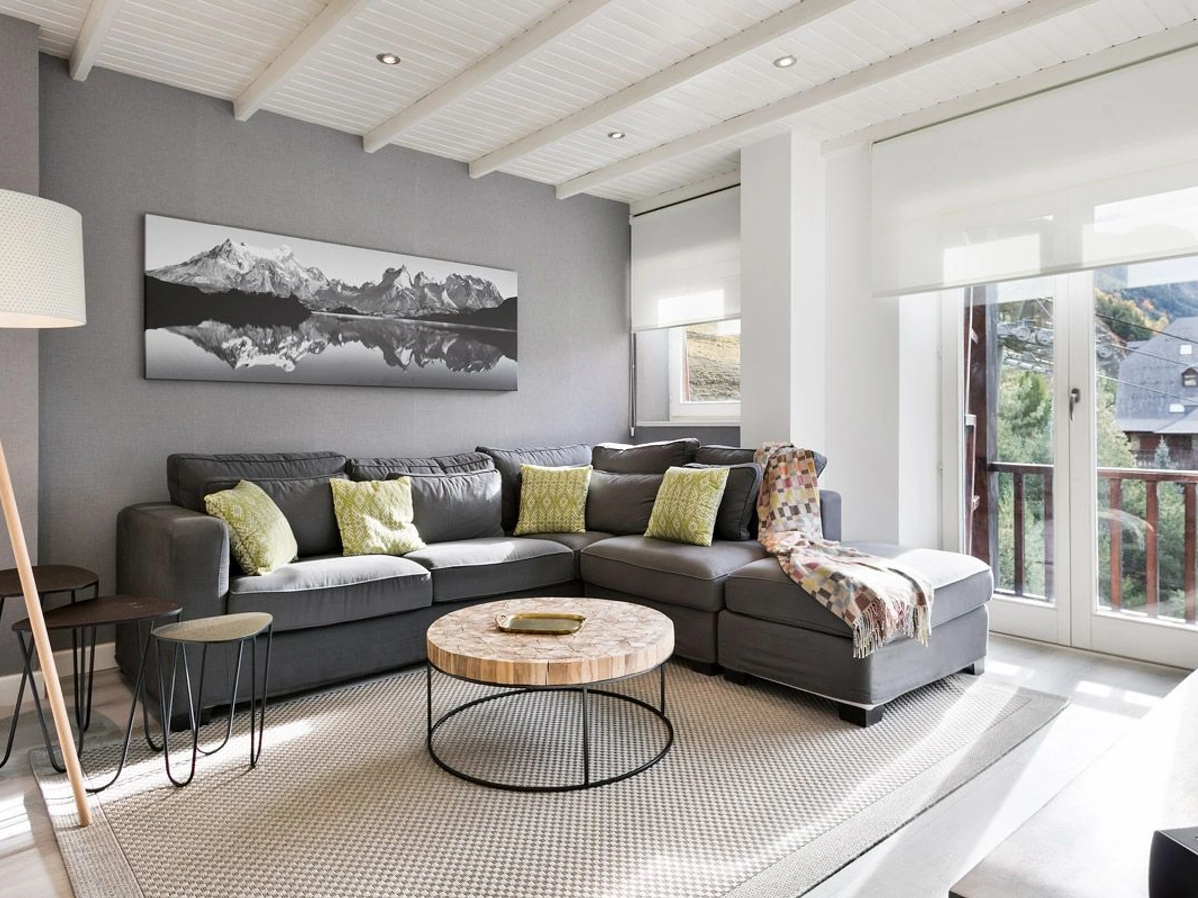 Al ingresar, se accede directamente al espacio de concepto abierto que integra el salón-comedor y la cocina totalmente equipada con todo lo necesario, todo ello enmarcado por las magníficas vistas a las montañas circundantes.