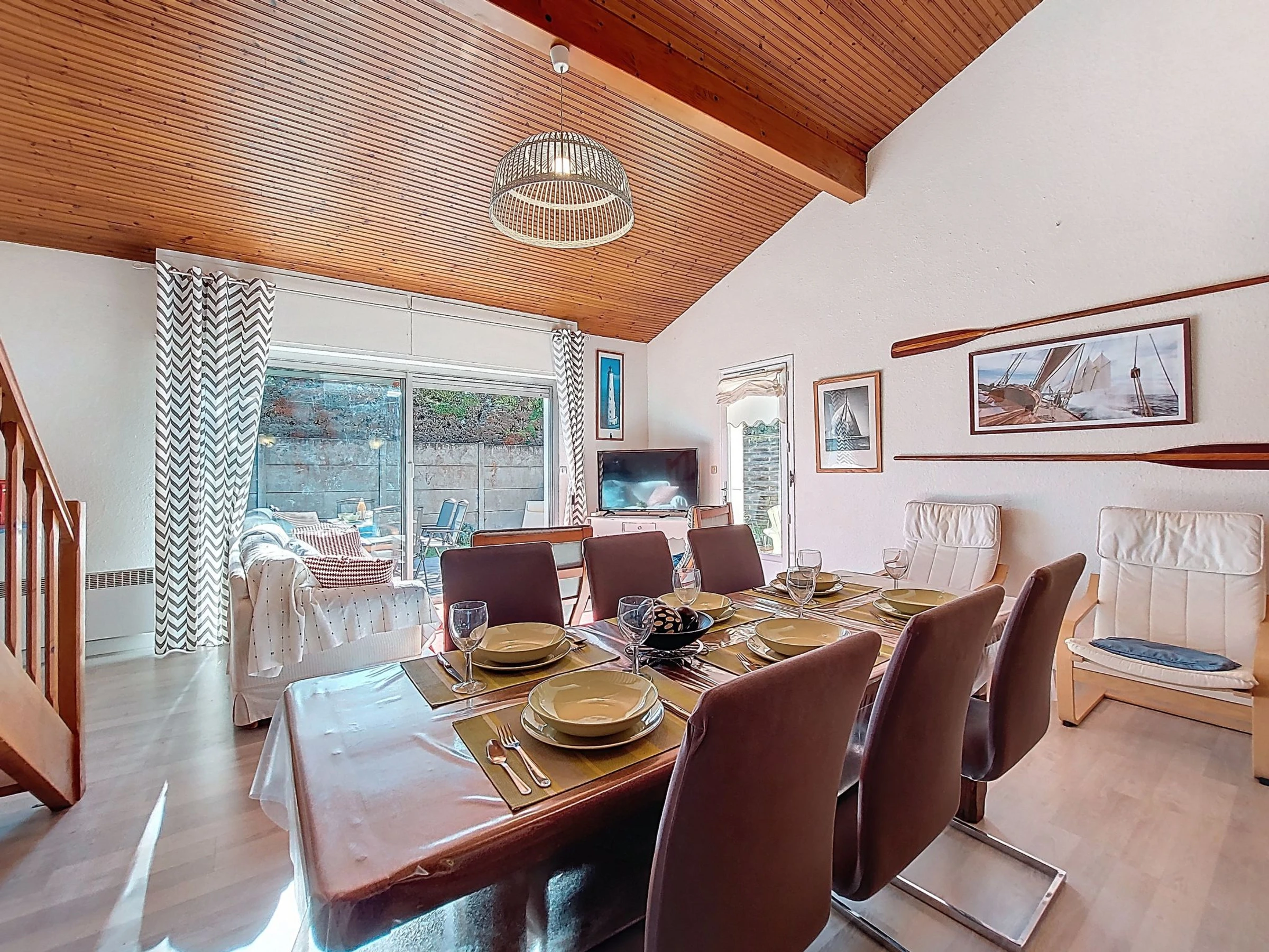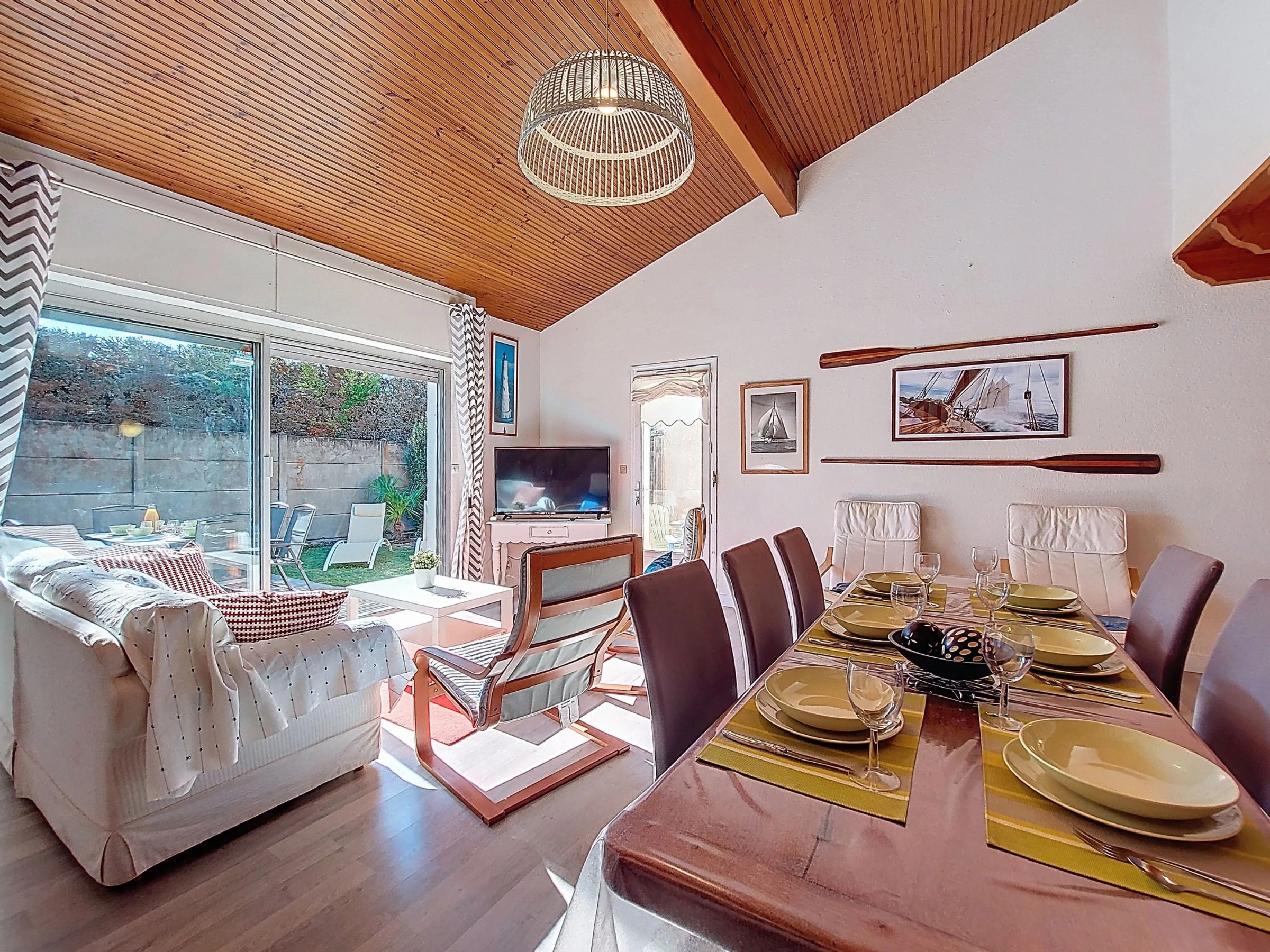 Casa 4 estancias 83 m2 en 2 plantas. Salón-comedor con TV (pantalla plana). Salida a la terraza. 1 dorm. con 1 cama de matrimonio (1 x 180 cm, 190 cm de longitud). Cocina (horno, lavavajillas, 3 Placas de inducción, microondas, congelador, cafetera eléctrica, Cápsulas de café (Magimix) extra). Ducha, WC separado. Calefacción eléctrica. Planta superior: 1 dorm. con 2 camas (80 cm, 190 cm de longitud). 1 dorm. con 1 cama doble (2 x 80 cm, 190 cm de longitud). 2 terrazas 10 m2, jardín 250 m2. Muebles de terraza, barbacoa. El alojamiento dispone de: lavadora, plancha, trona, cuna. Internet (Wifi, extra). Plaza de aparcamiento (2 Coches). A tener en cuenta: permitido máximo 1 mascota pequeña / perro. Detector de humo. Oferta de un particular según el art. 155, IV del CGI.