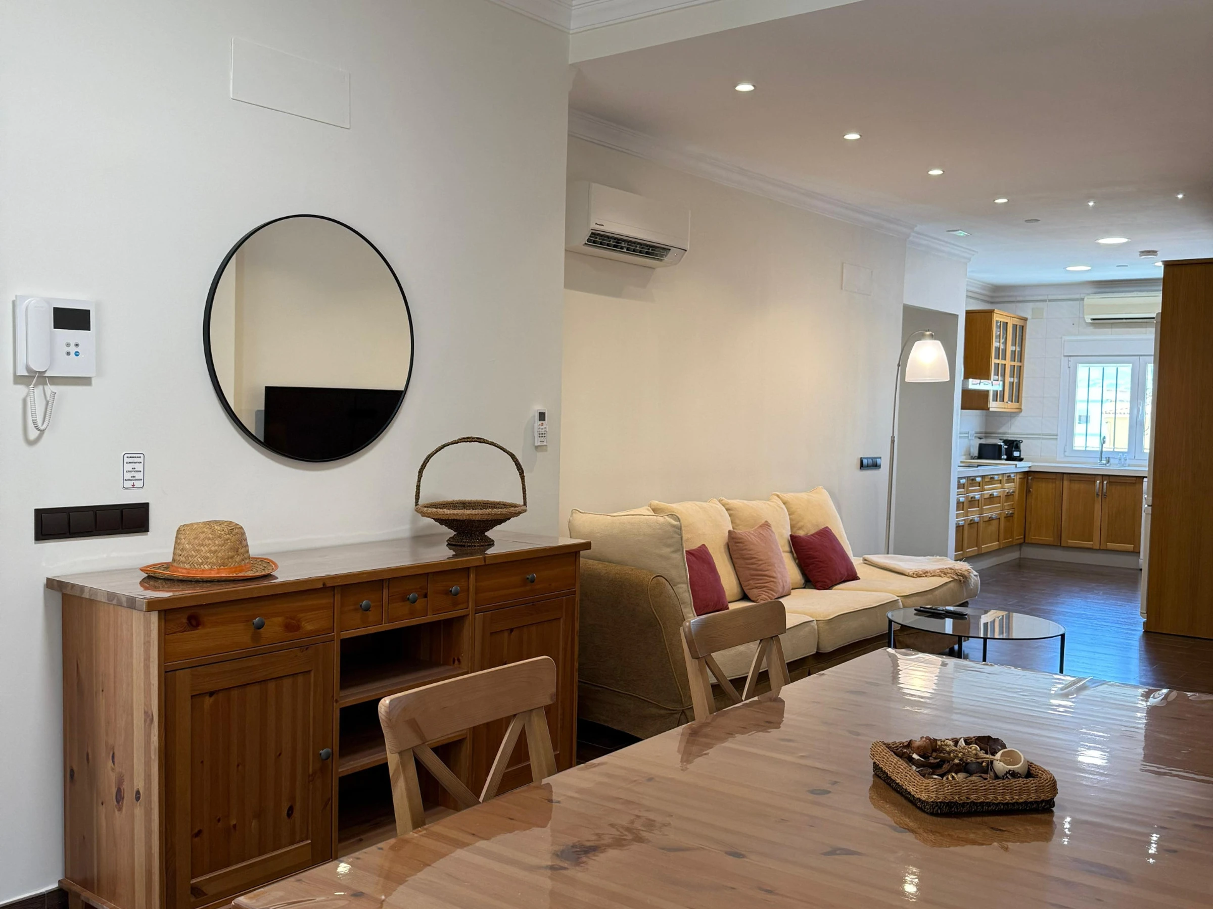 El alojamiento está distribuido en dos apartamentos dentro de una misma casa. El apartamento que se alquila se accede por la planta baja y cuenta con: