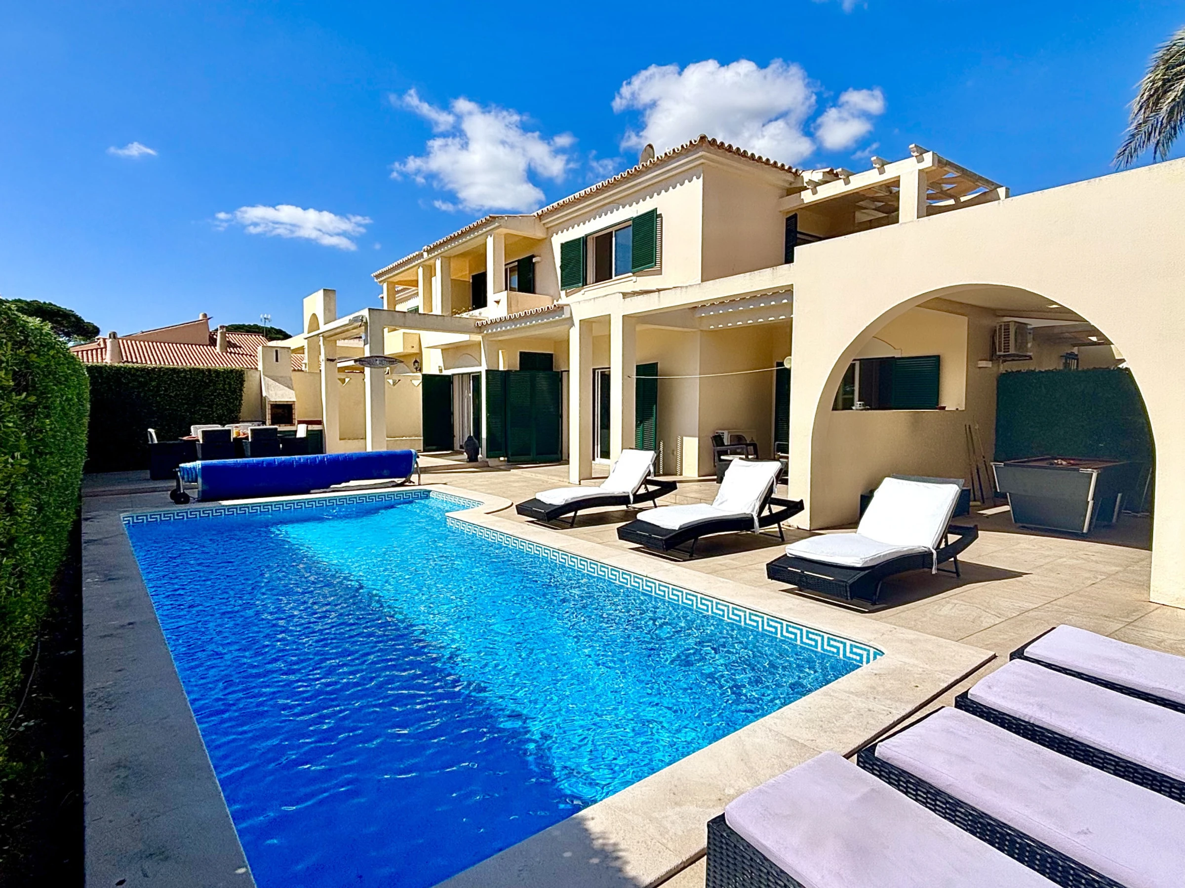 La villa cuenta con tres habitaciones confortables, una sala de estar luminosa y una cocina totalmente equipada, ideal para preparar comidas y compartir buenos momentos. En el exterior, encontrará una agradable terraza perfecta para comidas al aire libre, un jardín tranquilo y una piscina privada donde podrá relajarse y disfrutar de los días de sol.
