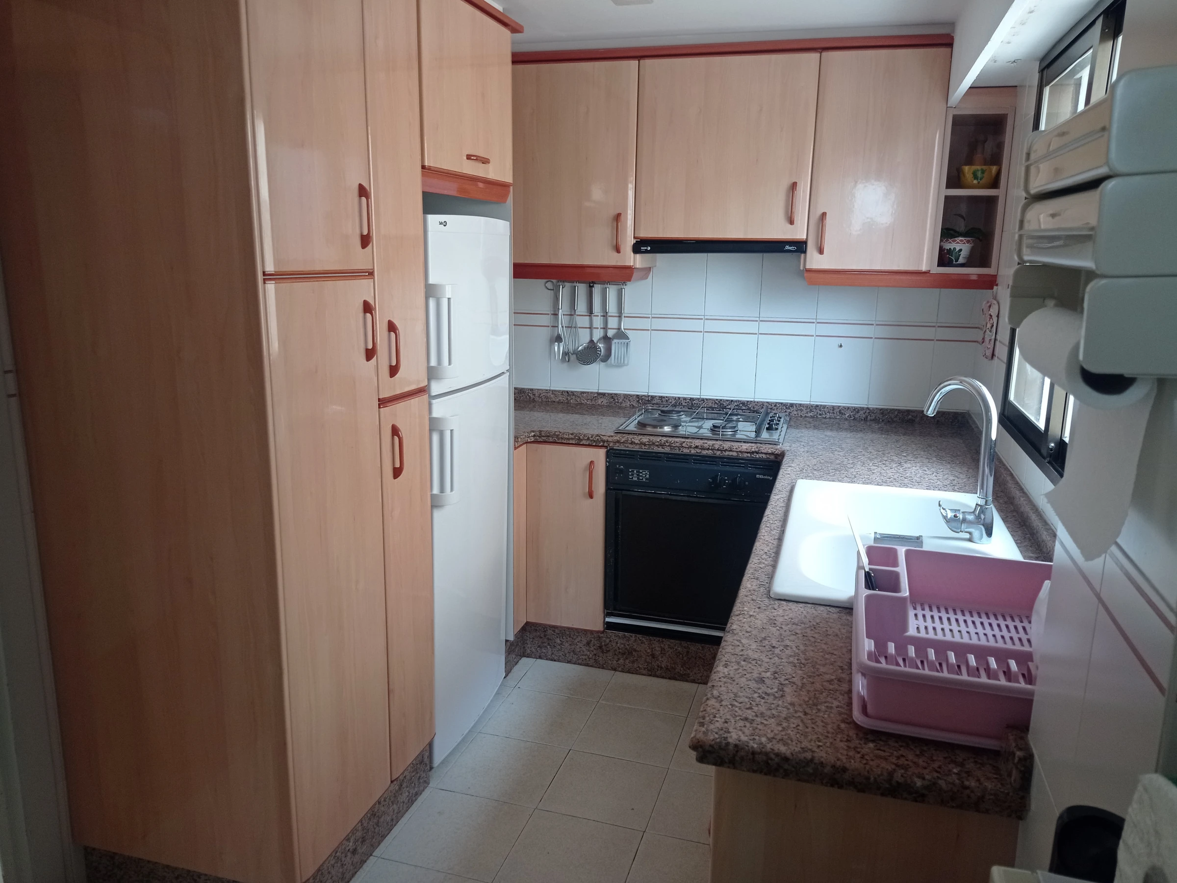 Está equipado con ropa de cama y toallas, y todo lo necesario para cocinar y poner mesa.