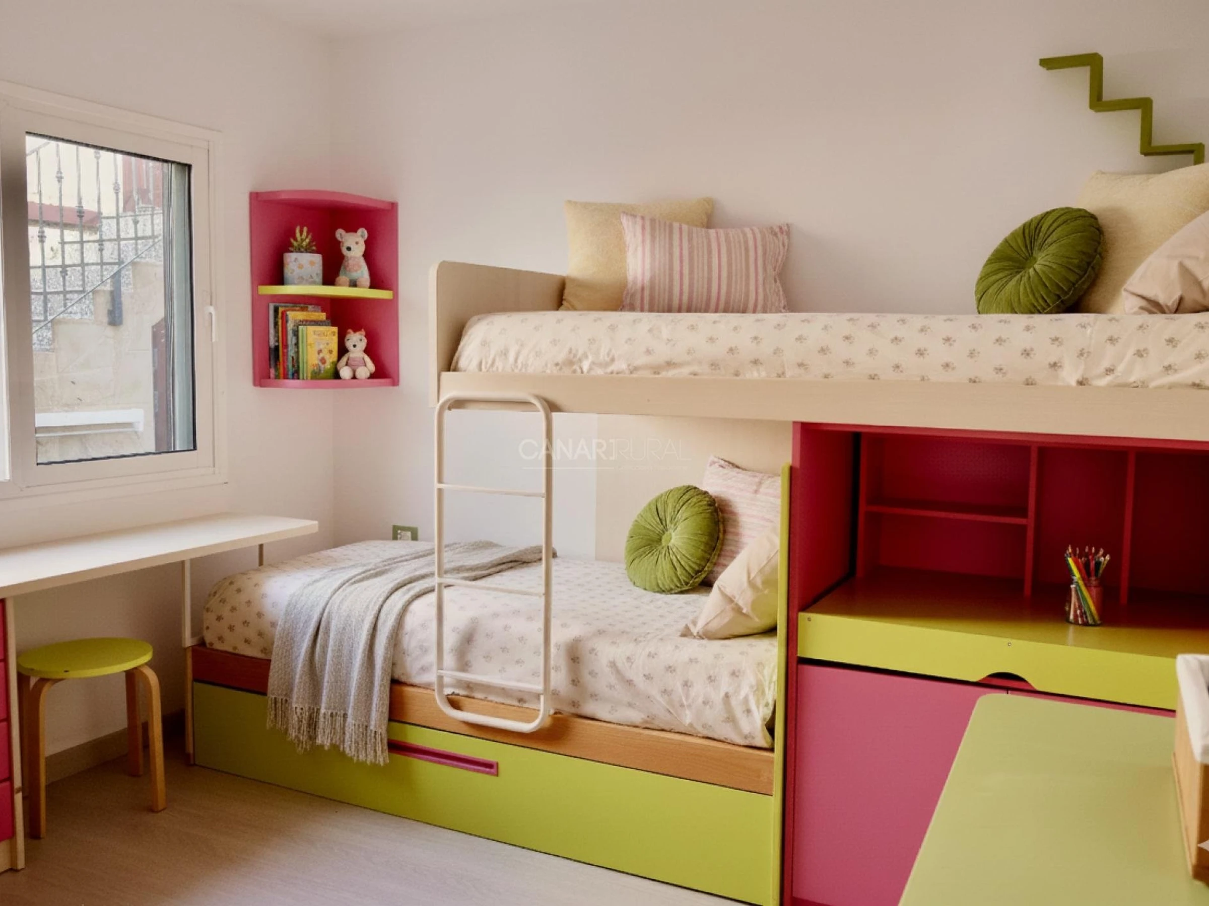- 1 chambre double avec un lit superposé de deux lits de 90 x 1,90 m