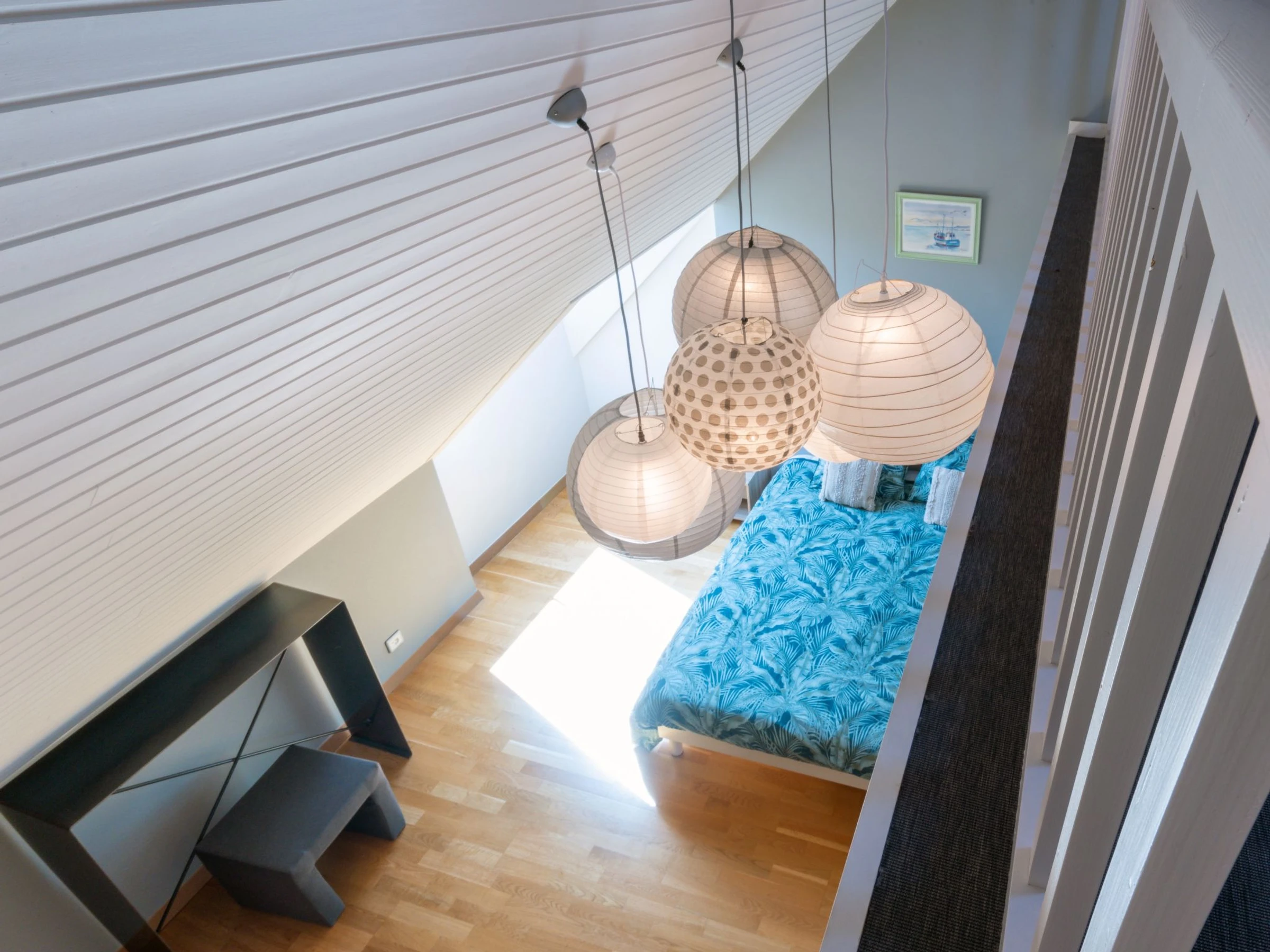 Maison 7 pièces 250 m2. Aménagement confortable et agréable: séjour/salle à manger avec baie vitrée avec TV (écran plat), chauffage électrique. Sortie sur la terrasse. 1 chambre avec 1 grand-lit (160 cm, longueur 200 cm) avec salle de bains et WC séparés. Cuisine ouverte (four, lave-vaisselle, 3 plaques à induction, grille-pain, bouilloire électrique, micro-ondes, cafetière électrique). À l'étage supérieur: 2 chambres (1 x 160 cm, longueur 200 cm). 1 chambre (90 cm, longueur 200 cm) (1 x 160 cm, longueur 200 cm). 1 chambre avec 3 lits (90 cm, longueur 200 cm). Salle de bains, WC séparé. A disposition: lave-linge, sèche-linge. Veuillez noter: maximum 1 animal/ chien autorisé. Détecteur de fumée.