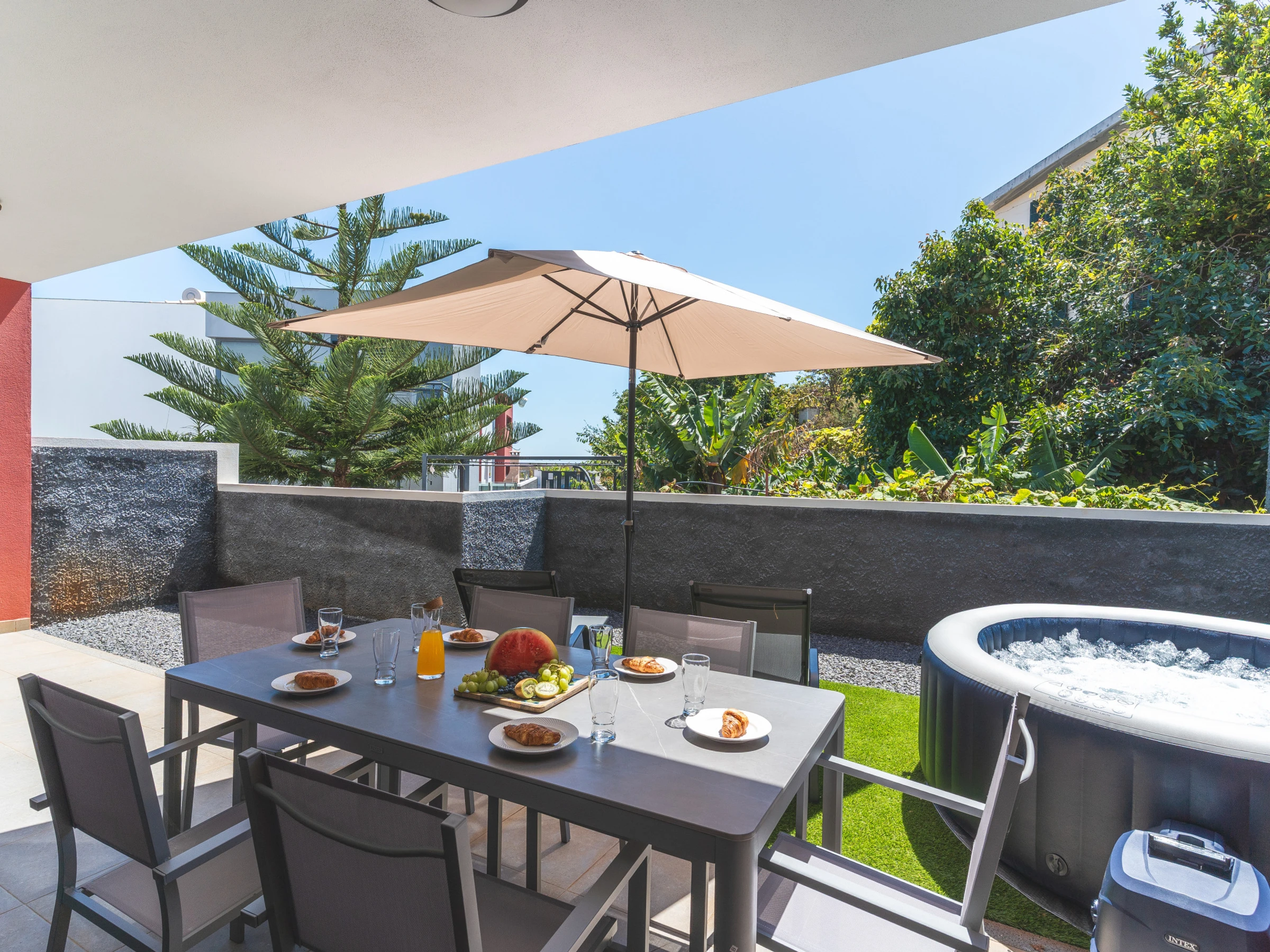 Un garage privé est disponible pour le stationnement. La propriété offre un cadre paisible tout en restant proche des attractions de Madère.