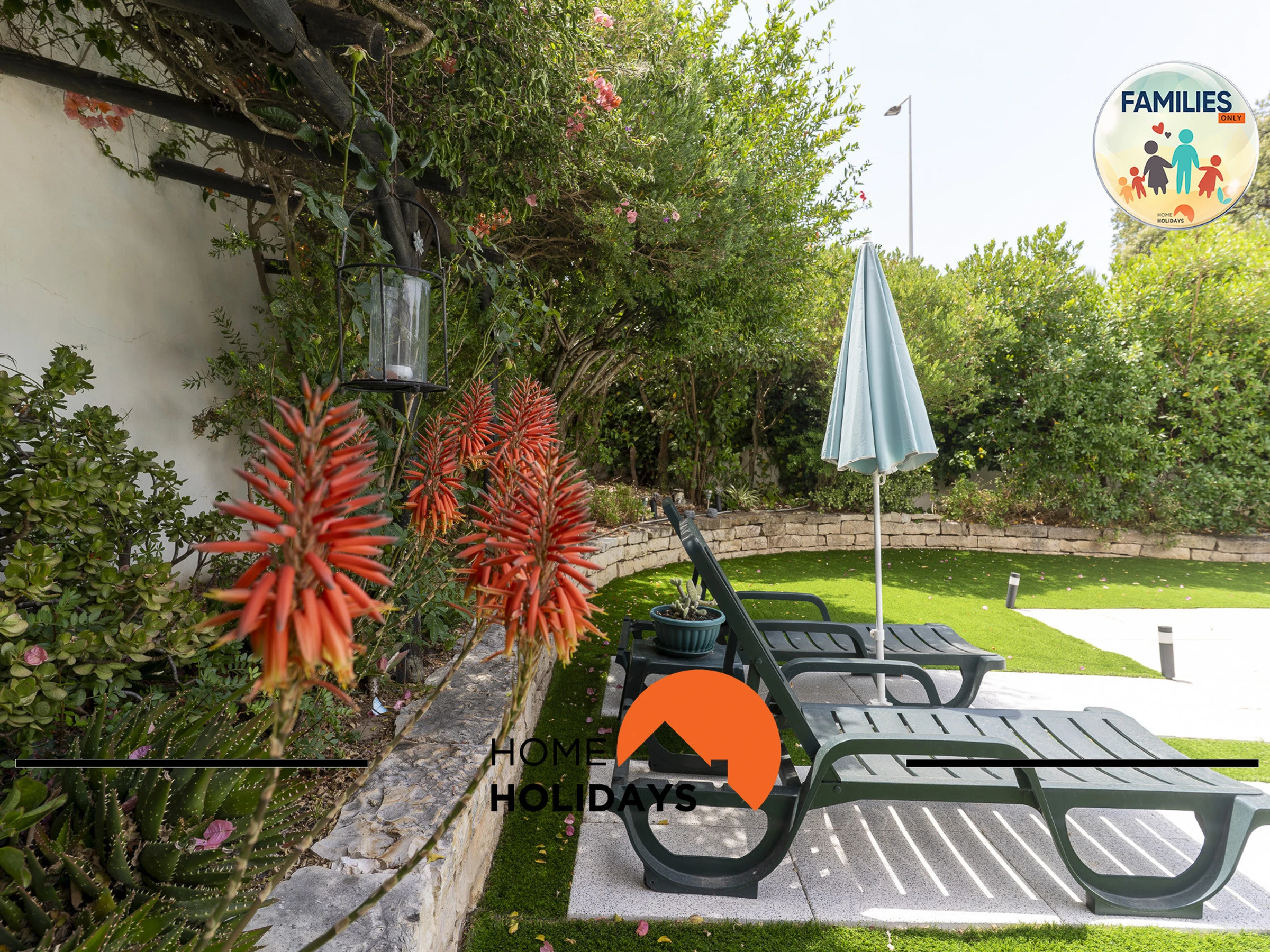 Elle dispose de jardin, mobilier de jardin, clôture, barbecue, fer à repasser, accès internet (wifi), sèche-cheveux, climatisation dans le salon, piscine privée, parking extérieur même bâtiment, 1 Télévision.