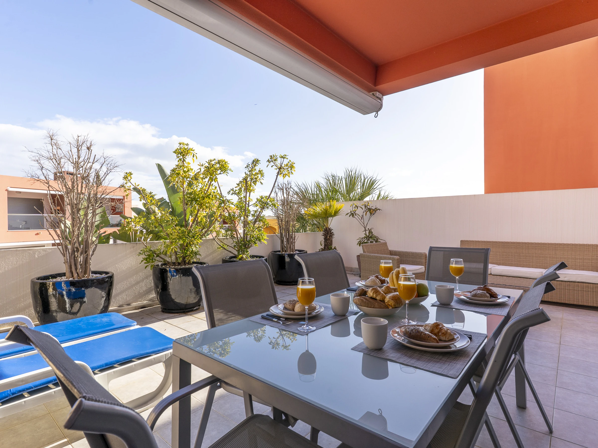 Elle dispose de terrasse, lave-linge, barbecue, fer à repasser, accès internet (wifi), sèche-cheveux, balcon, climatisation dans tout le logement, piscine collective, garage même bâtiment, 2 Télévisions.