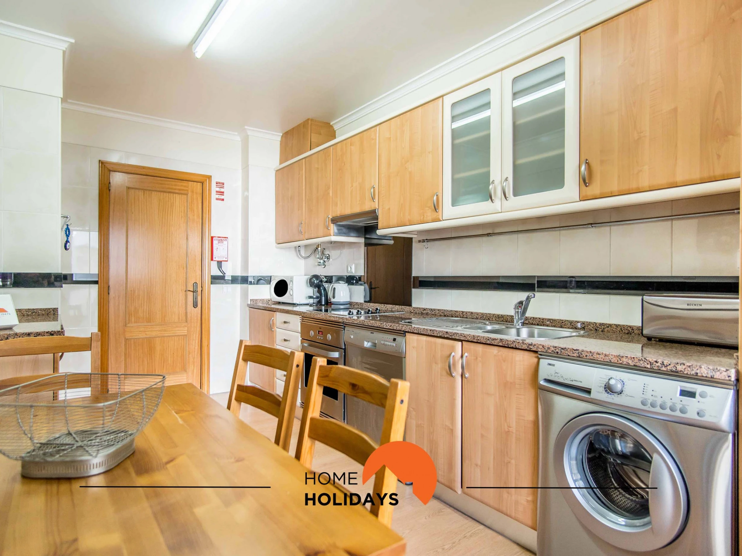 La cuisine indépendante, à mixte: gaz et électricité, est équipée avec réfrigérateur, micro-ondes, four, congélateur, lave-vaisselle, vaisselle/couverts, ustensiles/cuisine, cafetière, grille pain, bouilloire et cuisinière.