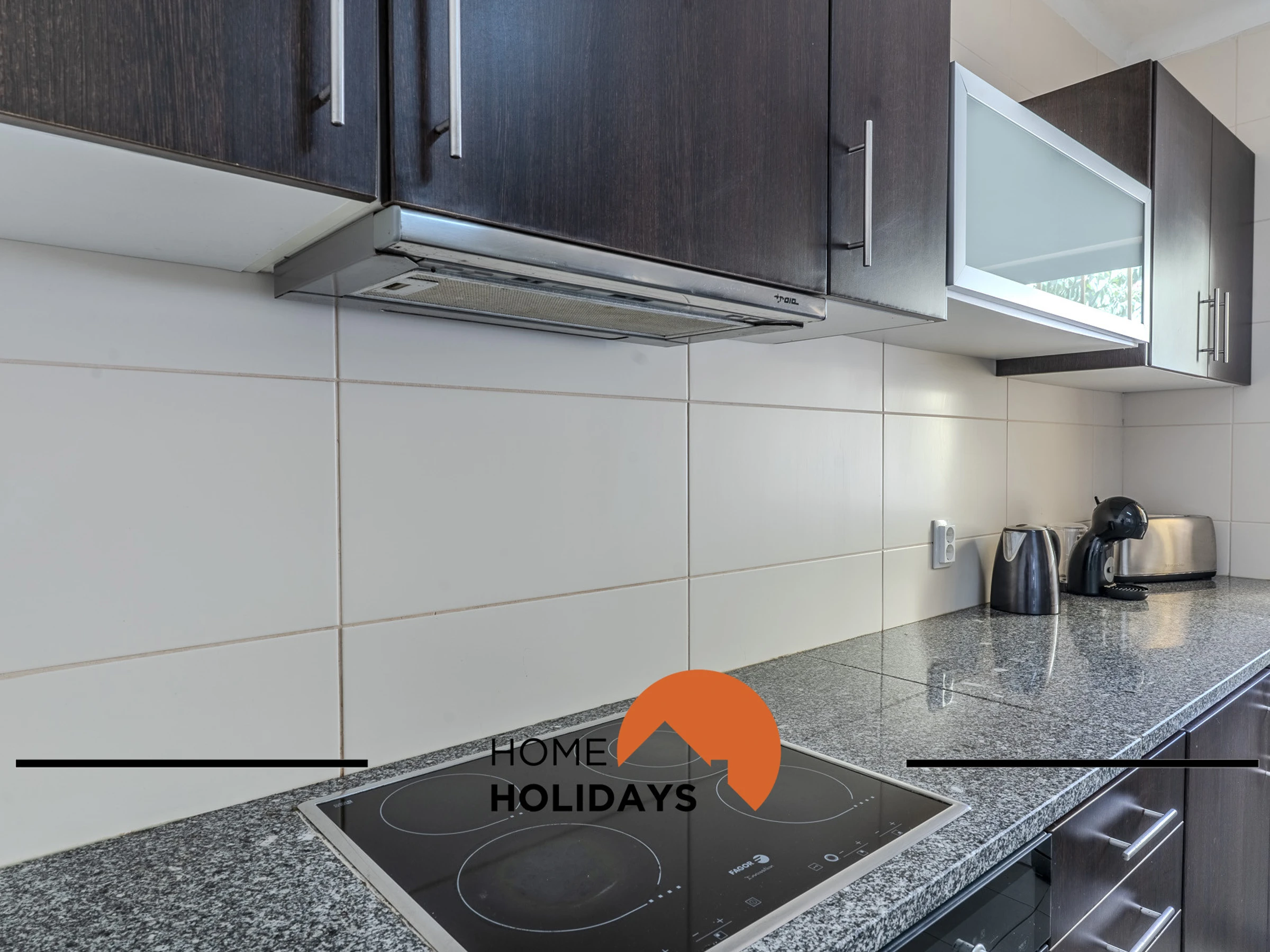 La cuisine indépendante, Électrique, est équipée avec réfrigérateur, micro-ondes, four, congélateur, lave-vaisselle, vaisselle/couverts, ustensiles/cuisine, cafetière, grille pain, bouilloire et assiettes et bols.