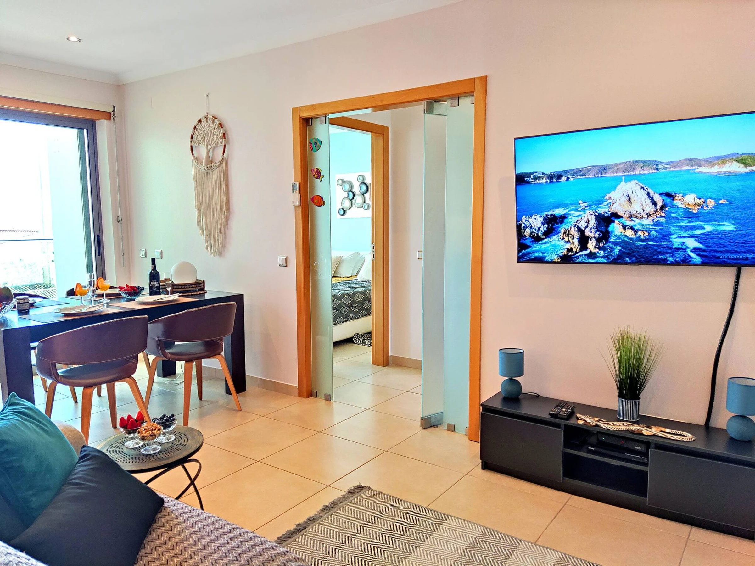 L'appartement est entièrement climatisé et exquisément équipé avec une chambre, comprenant un lit double. Le salon est spacieux et dispose d'installations de repas, ainsi qu'un canapé confortable pour se détendre et/ou utiliser comme un lit supplémentaire extensible. Il dispose d'un internet à fibre optique à haute vitesse, afin que vous puissiez diffuser votre film Netflix préféré sur un excellent smart TV de 50 pouces.