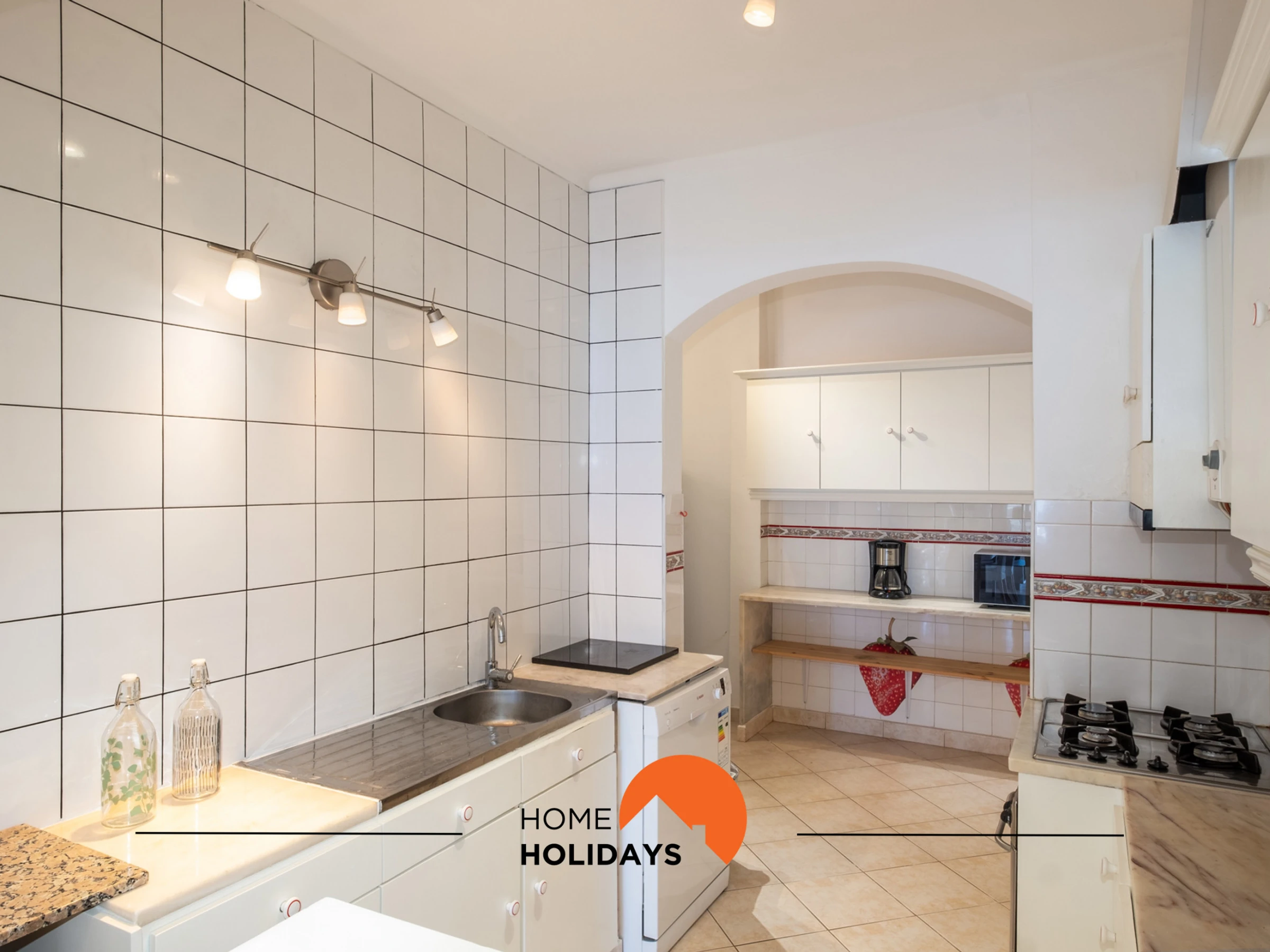 La cuisine américaine, à mixte: gaz et électricité, est équipée avec réfrigérateur, micro-ondes, four, congélateur, lave-vaisselle, cafetière, grille pain, bouilloire, presse-agrumes et cuisinière.