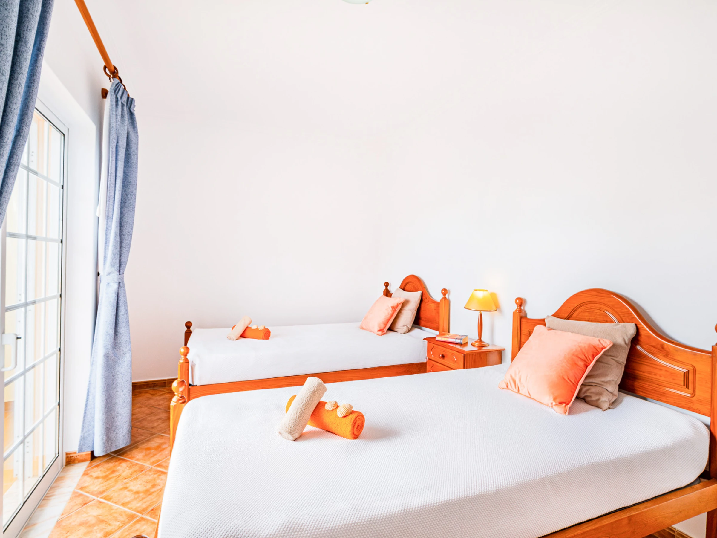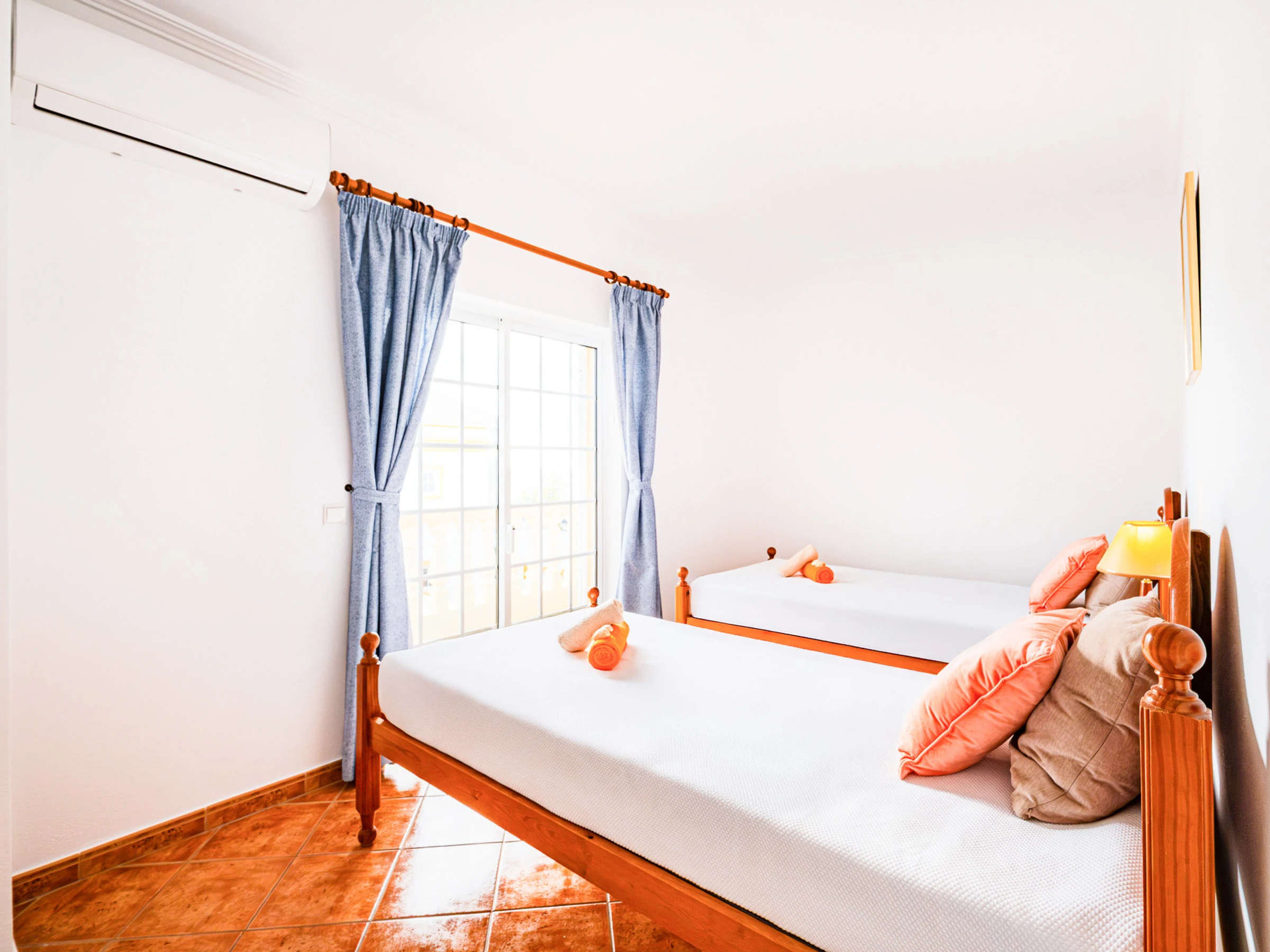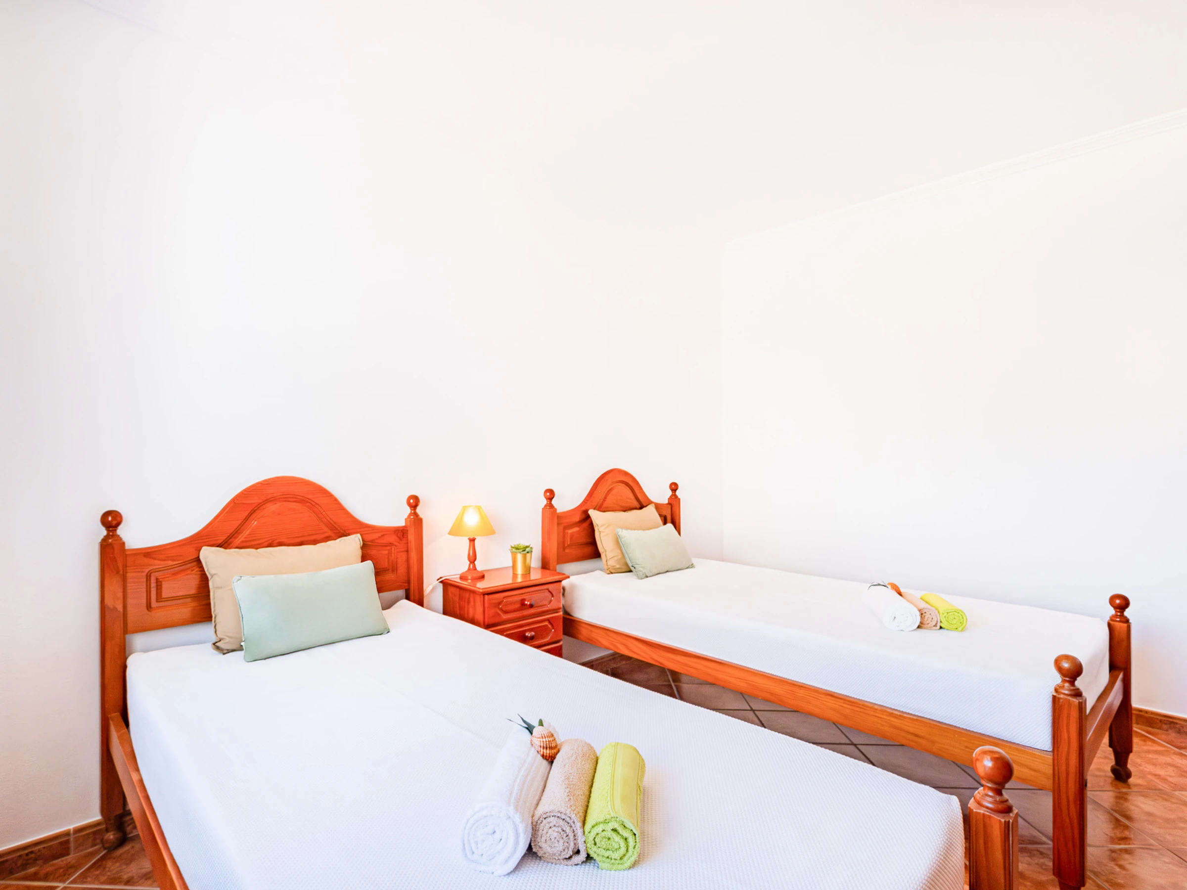 Au rez-de-chaussée se trouve une chambre avec deux lits individuels, idéale pour plus de commodité, accompagnée d'une salle de bain pratique et fonctionnelle.