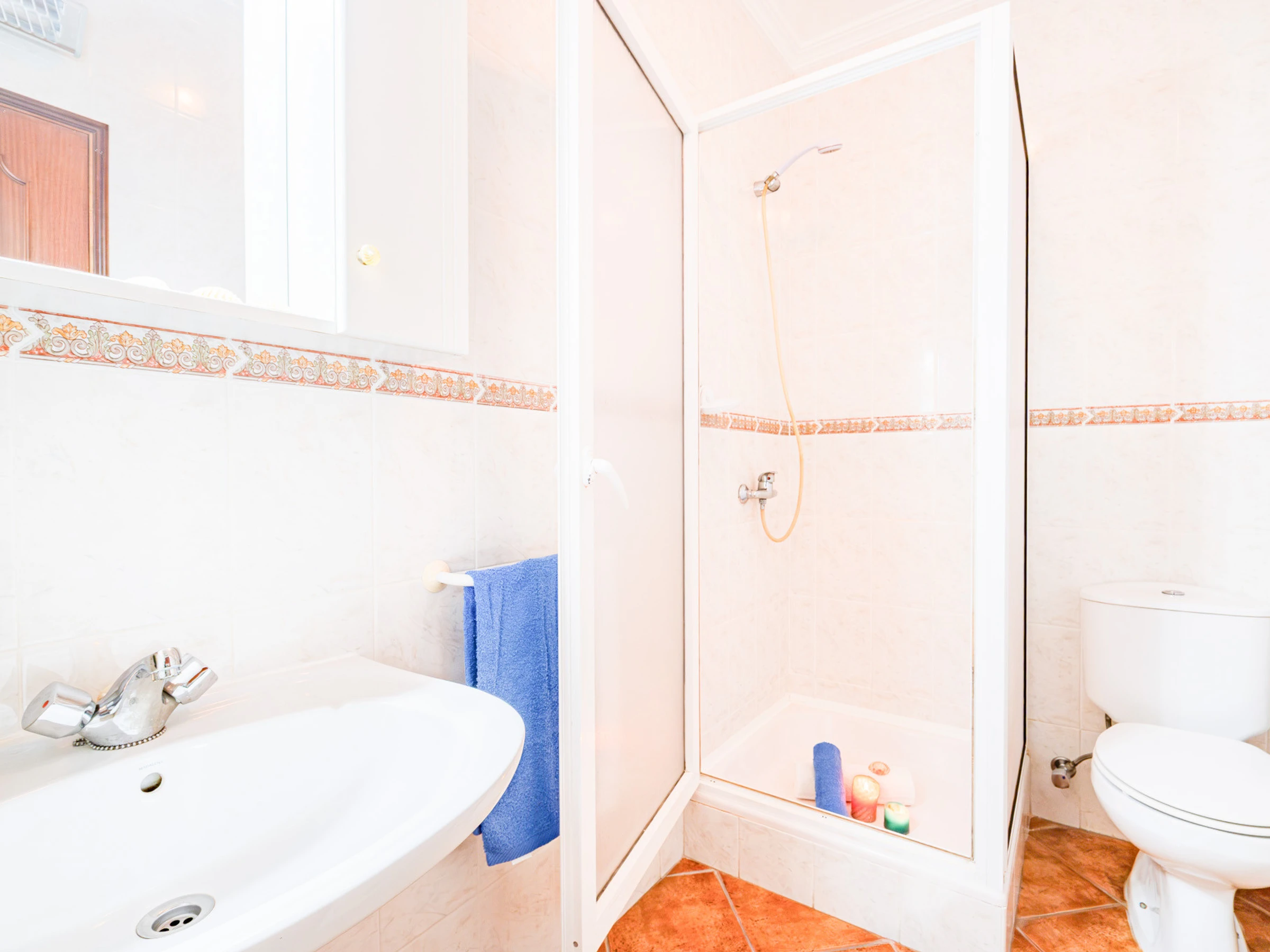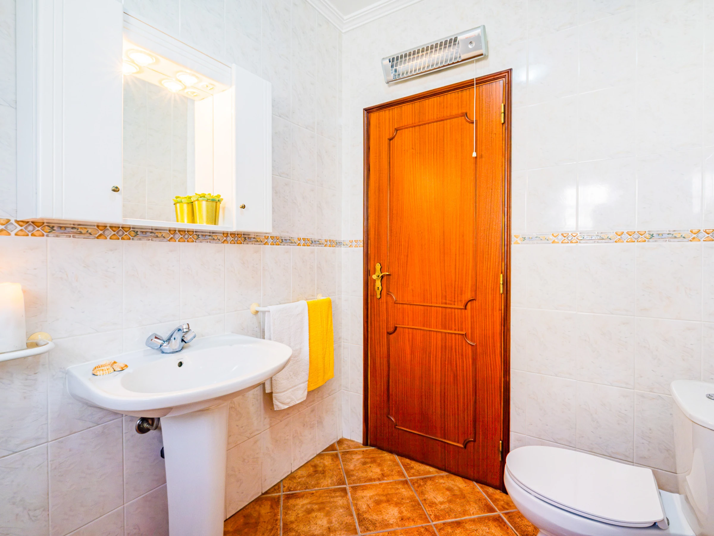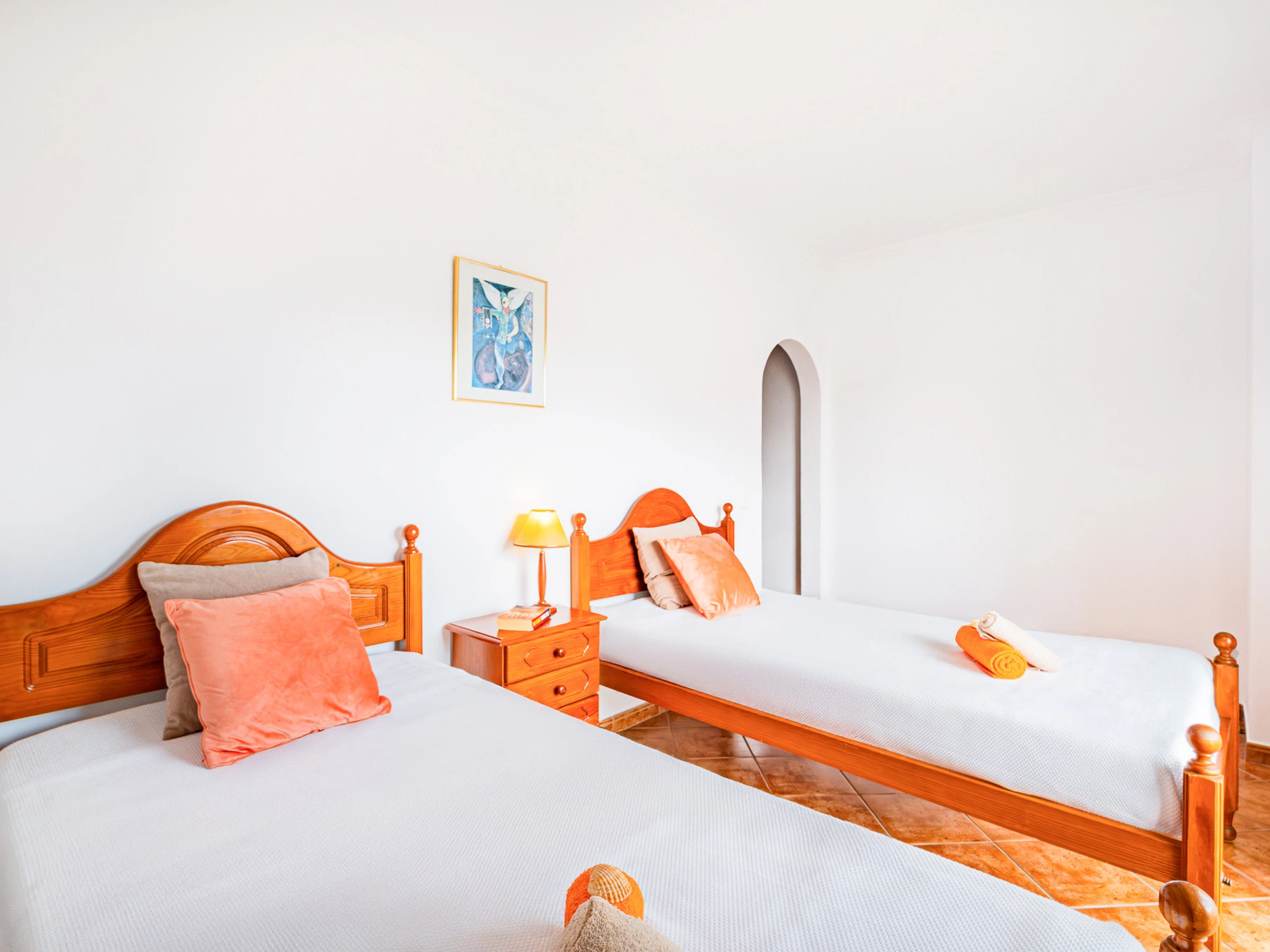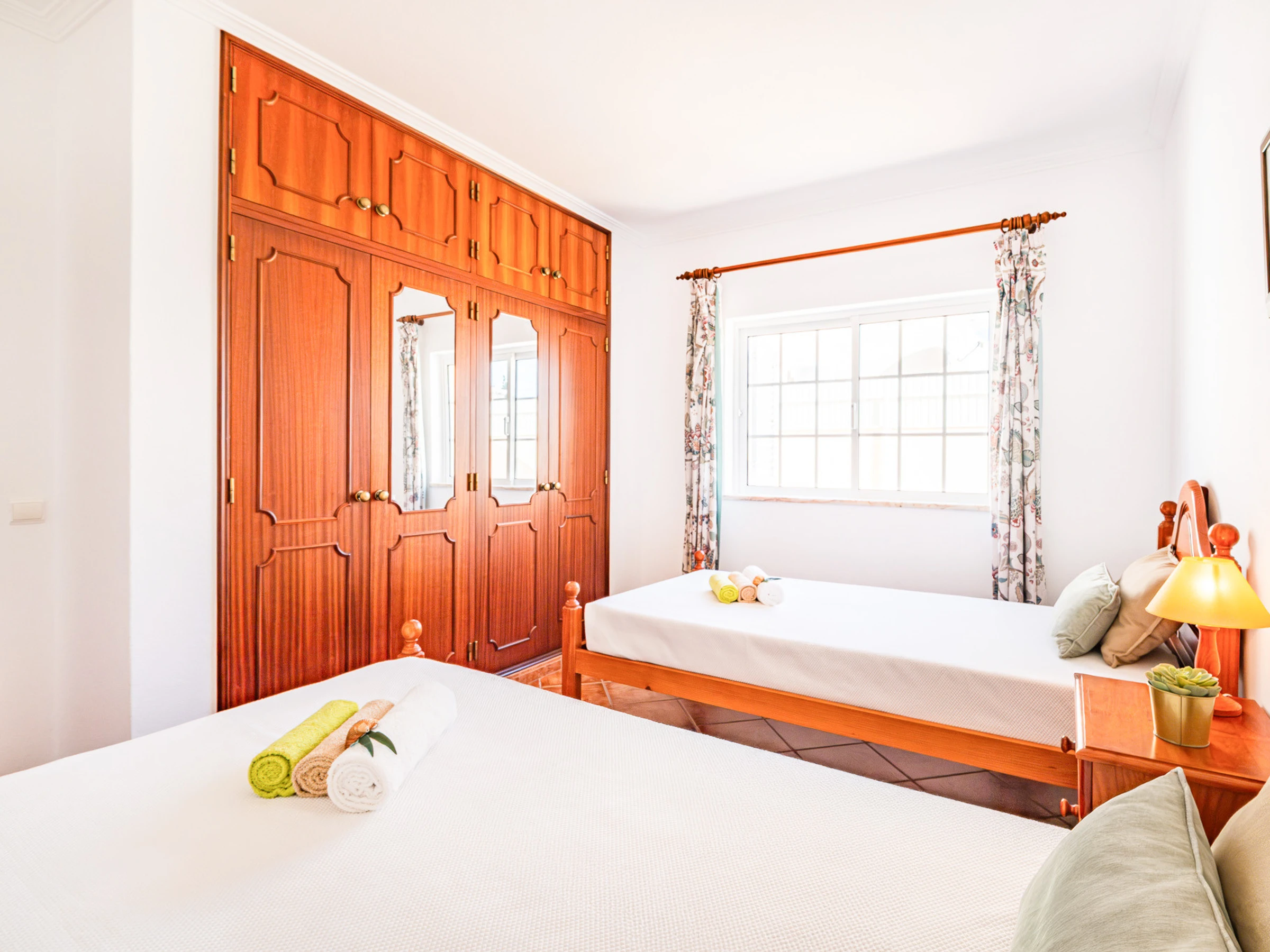 Au rez-de-chaussée se trouve une chambre avec deux lits individuels, idéale pour plus de commodité, accompagnée d'une salle de bain pratique et fonctionnelle.