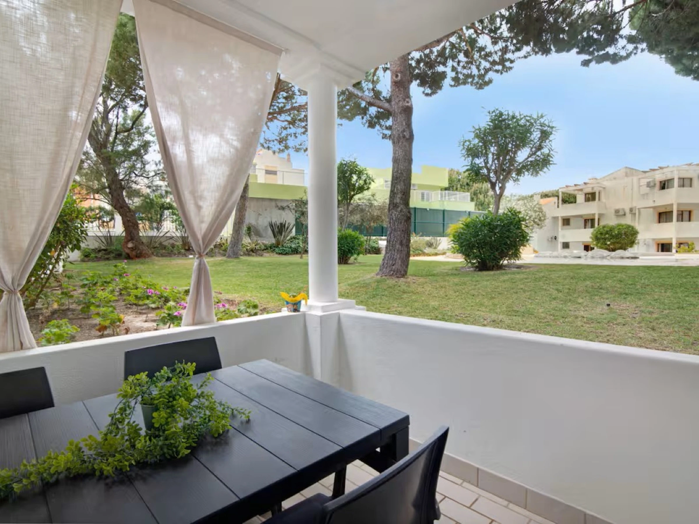 Après une journée à la plage, vous pourrez vous détendre au bord de la piscine commune, laisser les enfants s’amuser dans la piscine qui leur est dédiée, profiter du jardin, ou encore vous installer sur la terrasse couverte privée et le balcon, parfaits pour savourer le soleil de l’Algarve.