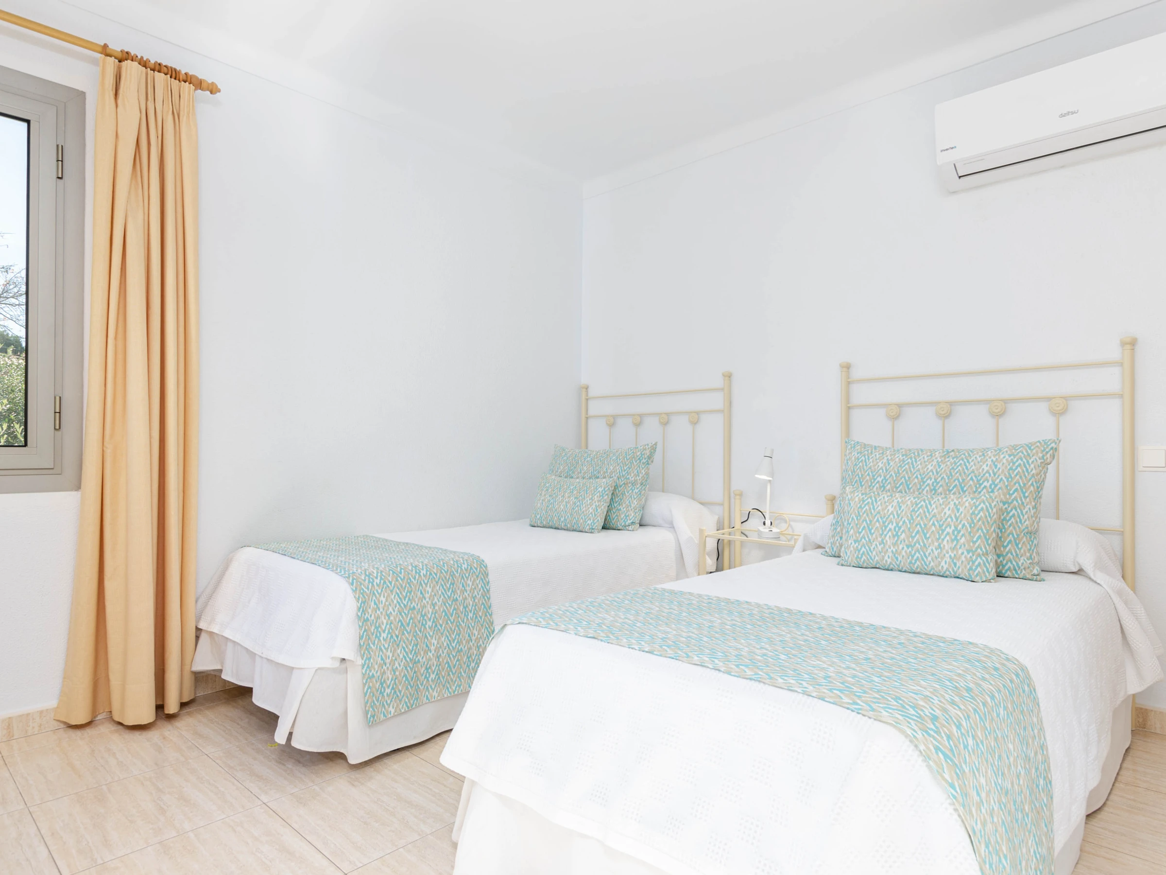 El apartamento cuenta con un gran balcón donde tomar el desayuno al despertar, con amplios ventanales que permite la entrada de luz natural, y que le dan un toque de calidez a cada uno de sus rincones. El salón-comedor cuenta con un cómodo sofá, televisión satelital y comedor donde los clientes pueden pasar una relajante velada, disfrutando de un rico plato mediterráneo preparado en la cocina equipada con vitrocerámica, horno, microondas y menaje básico para que los huéspedes se sientan como en su propia casa. Cuenta con dos habitaciones, ambas con dos camas individuales cada una. Desde unas de las habitaciones se accede directamente al balcón. Nuestros huéspedes disfrutarán de Wifi gratis, aire acondicionado en el salón y en los dormitorios Un baño con bañera y secador de pelo completan el equipamiento. Lavadora y una cuna/trona bajo petición. El edificio dispone de una terraza con vistas panorámicas, sin muebles y el acceso es compartido con la comunidad de vecinos.
