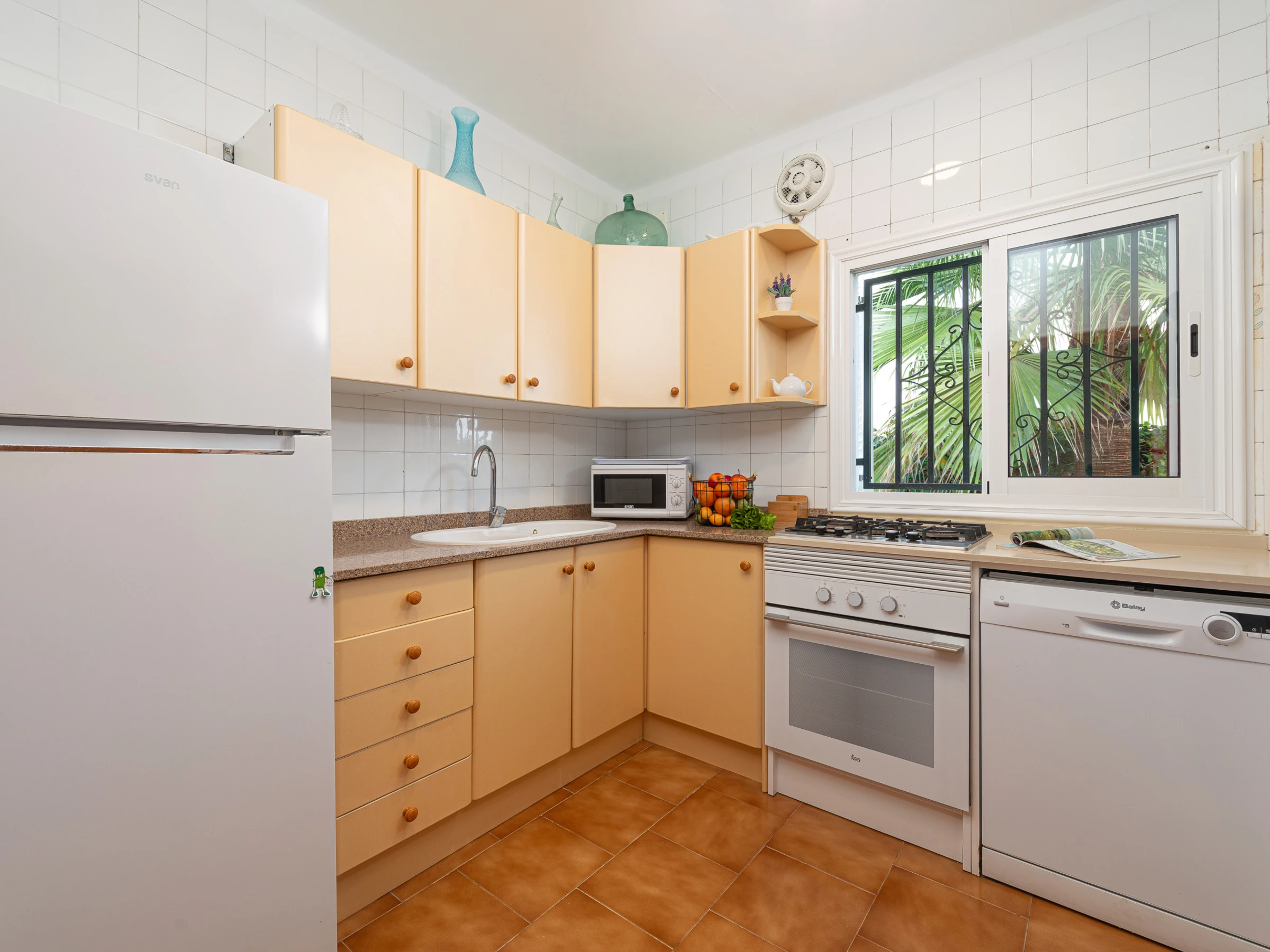 L'intérieur combine simplicité et praticité : une cuisine entièrement équipée, un salon lumineux avec télévision et connexion WiFi gratuite, ainsi que des ventilateurs répartis dans la maison pour assurer un environnement agréable les jours les plus chauds.