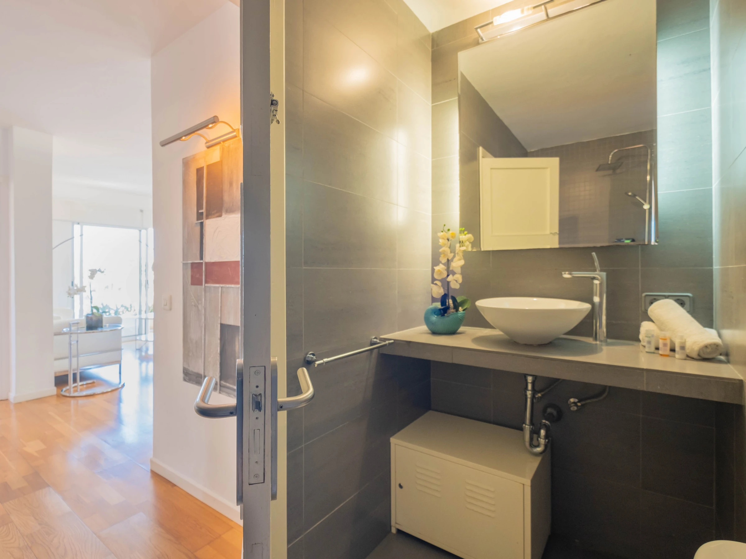 Elle dispose de lave-linge, fer à repasser, coffre-fort, accès internet (wifi), sèche-cheveux, balcon, alarme, chauffage pompe à chaleur, climatisation, 1 Télévision.
