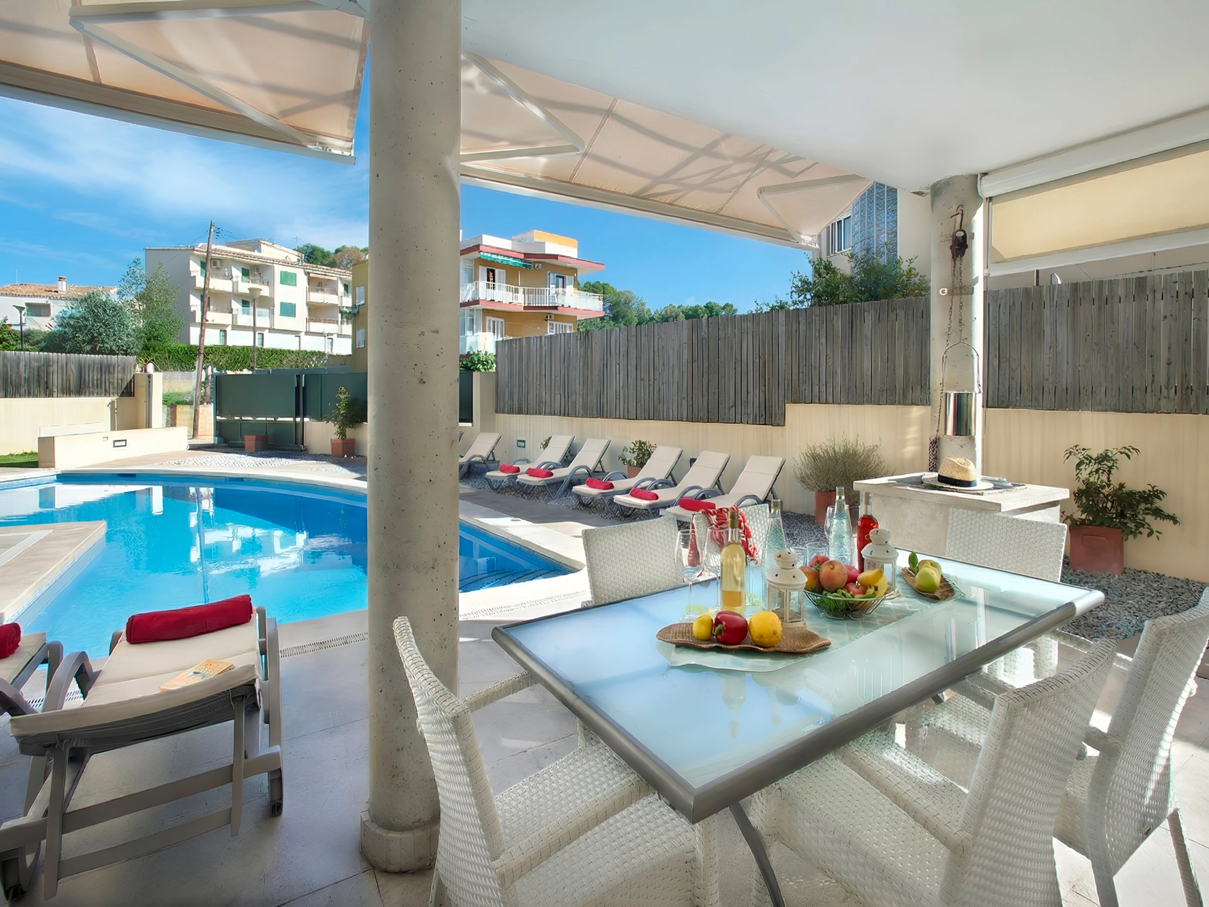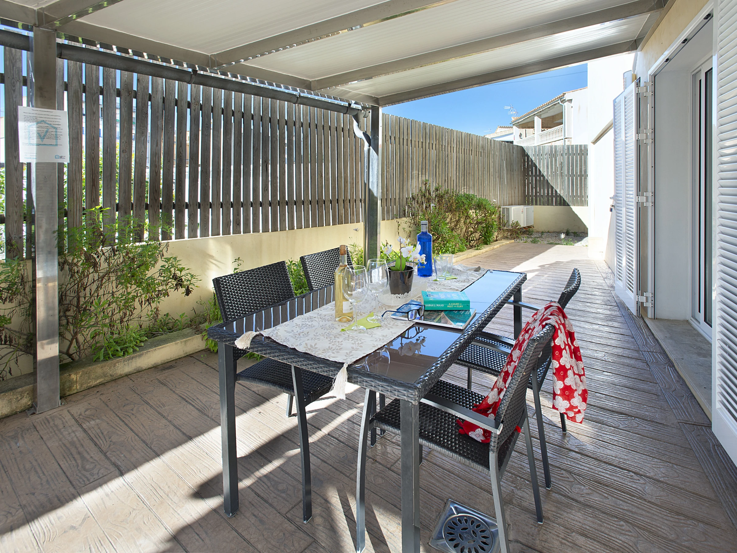 À l’extérieur, la Villa Can Gaya propose deux espaces avec tables et chaises : l’un près de la piscine, idéal pour les petits-déjeuners au soleil, et l’autre à l’arrière, accessible depuis le salon et la cuisine, parfait pour les dîners en plein air. Il est possible de se garer devant la maison, bien que le garage soit utilisé comme salle de jeux et buanderie. La propriété ne dispose pas de barbecue.