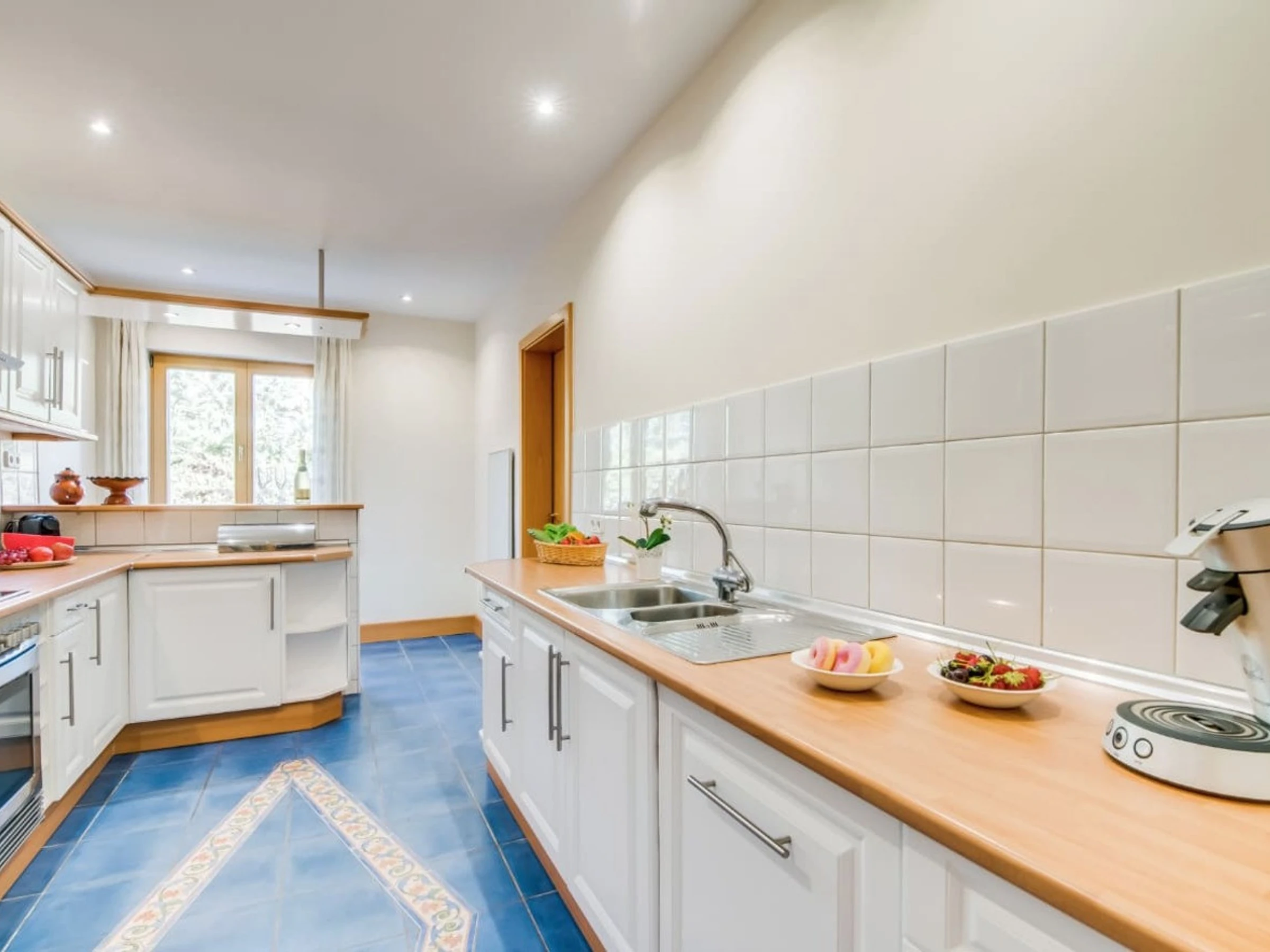 La cuisine indépendante, à vitrocéramique, est équipée avec réfrigérateur, micro-ondes, four, congélateur, lave-vaisselle, vaisselle/couverts, ustensiles/cuisine, cafetière, grille pain, bouilloire et presse-agrumes.