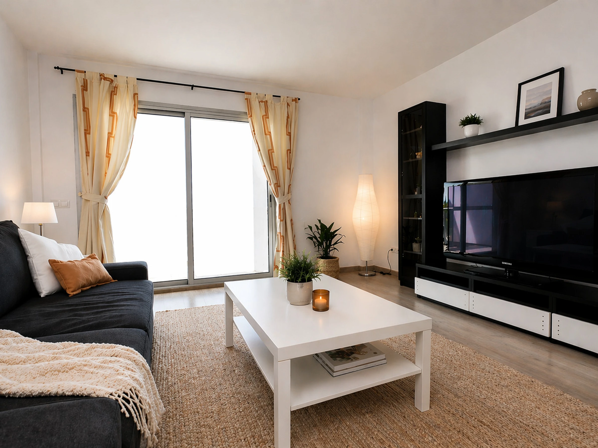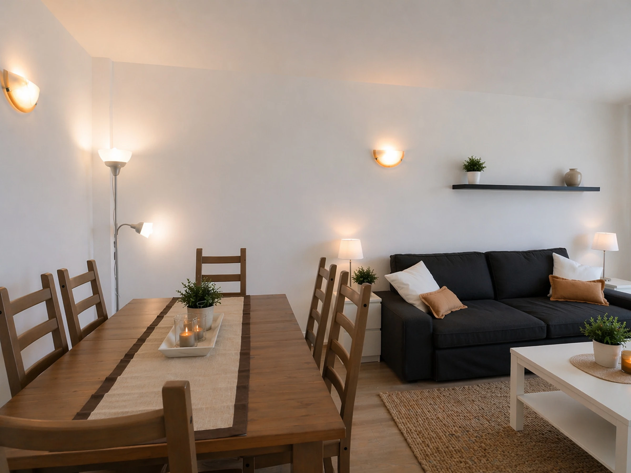 L'appartement est idéal pour les familles avec enfants ou les groupes d'amis, il dispose de trois chambres (une avec un lit double, une autre avec deux lits individuels et la dernière avec un lit individuel), un salon-salle à manger entièrement équipé, deux salles de bains avec douche, une cuisine entièrement meublée et équipée et un balcon où l'on peut profiter des petits-déjeuners ou des dîners en plein air.