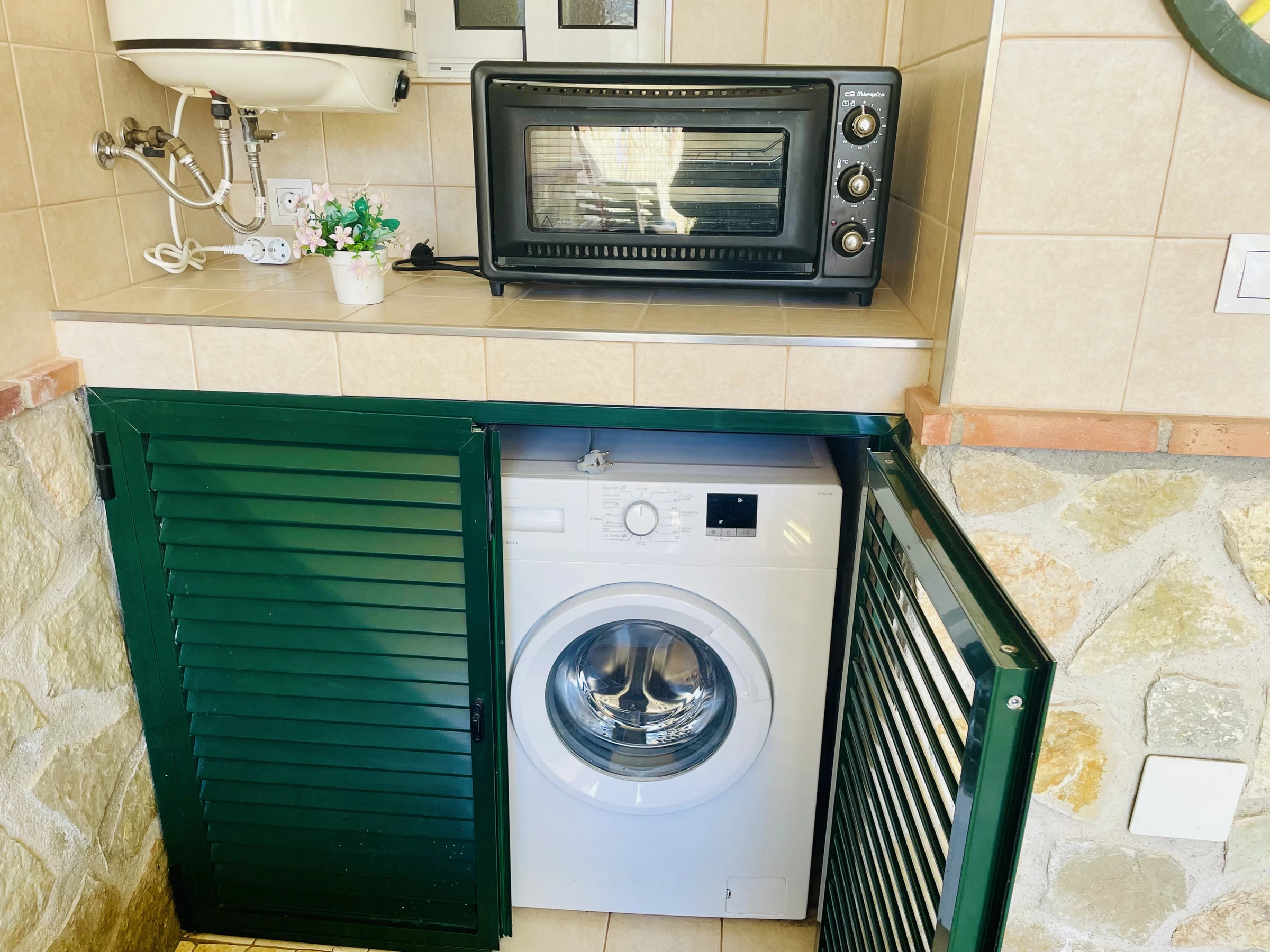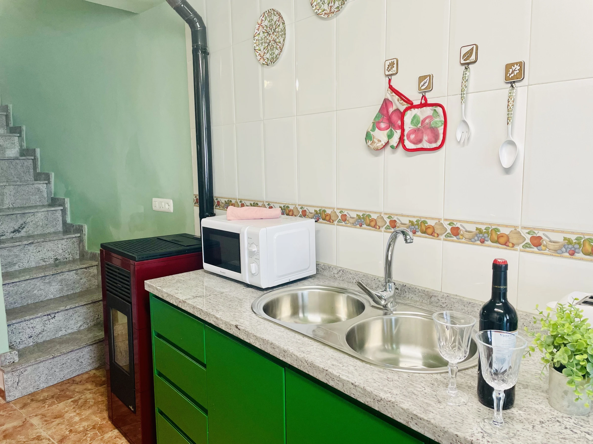 La maison dispose de 3 chambres : deux à l’étage et une au rez-de-chaussée, offrant une distribution confortable pour les familles ou les groupes. Elle comprend une cuisine américaine entièrement équipée avec tout le nécessaire pour votre séjour, y compris une machine à laver.