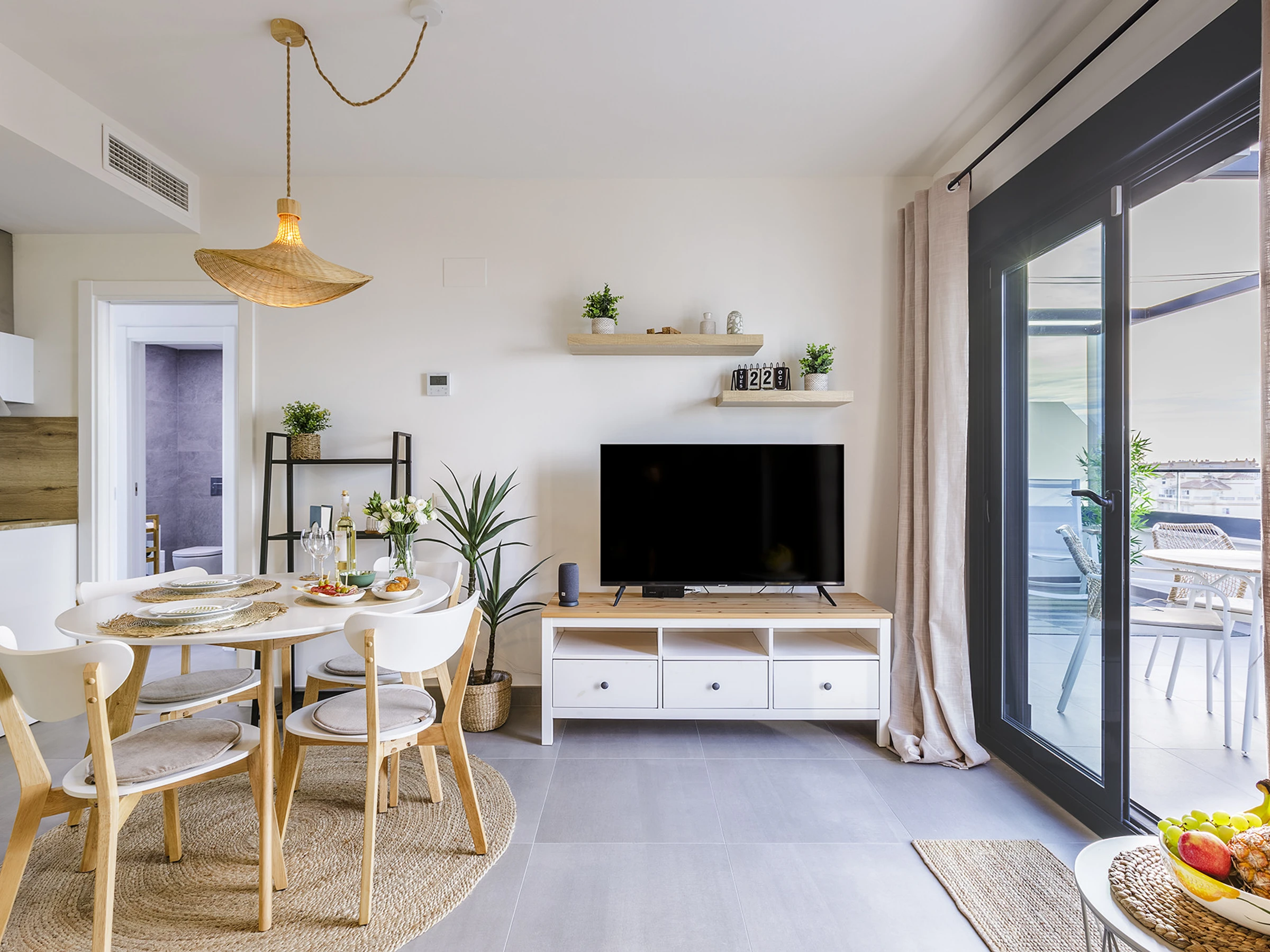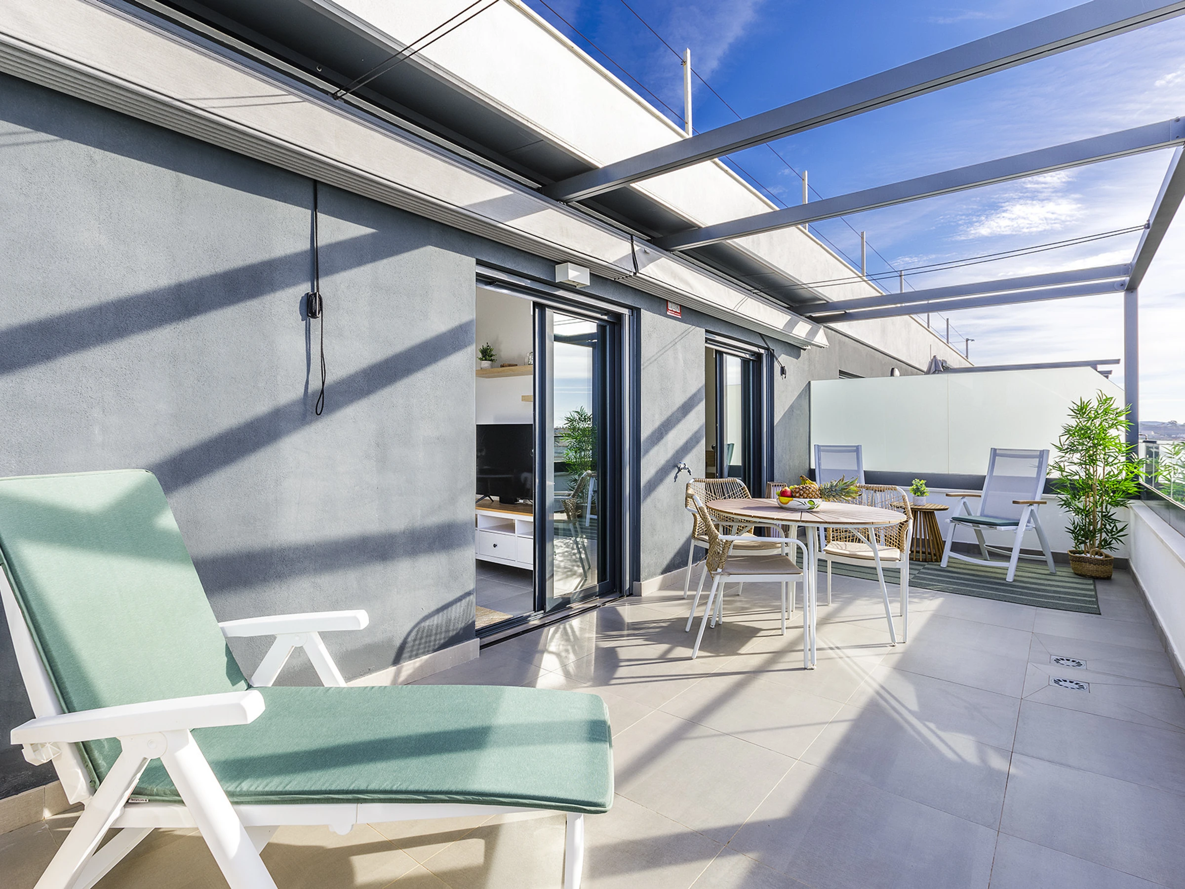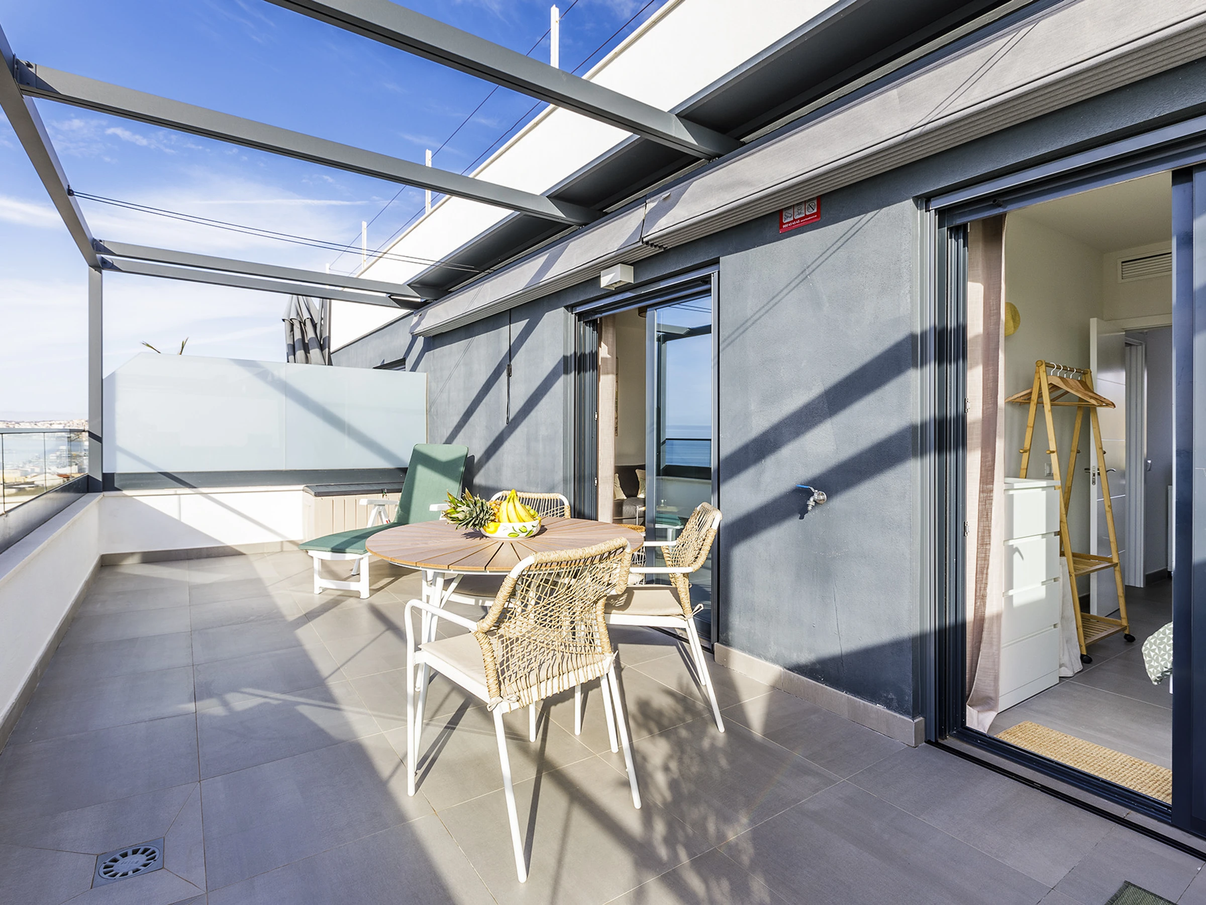 Elle dispose de ascenseur, mobilier de jardin, 28 m² de terrasse, lave-linge, accès internet (wifi), sèche-cheveux, balcon, alarme, chauffage pompe à chaleur, climatisation, piscine collective, TV.