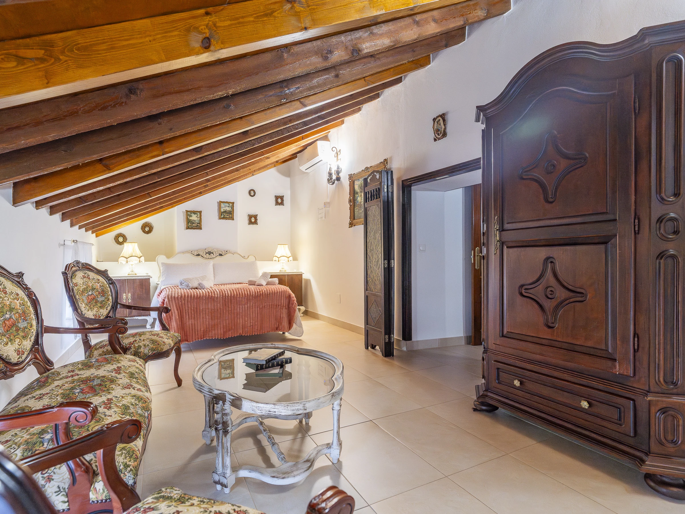* Le logement dispose de cinq chambres : trois avec un lit de couple et deux avec deux lits individuels, ainsi que deux salles de bains complètes avec douche et un toilette. La propriété dispose de deux cuisines et de plusieurs salons avec télévision, répartis dans la maison principale et la maison annexe.
