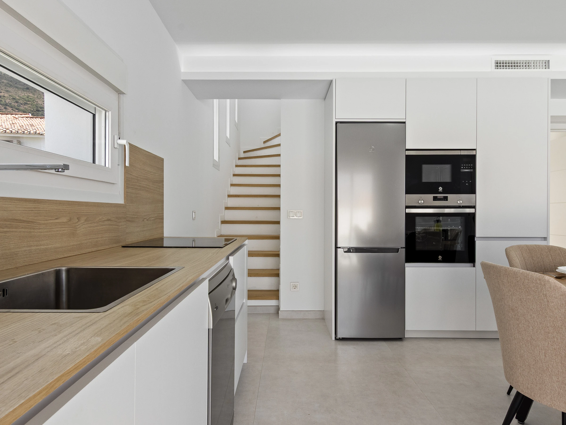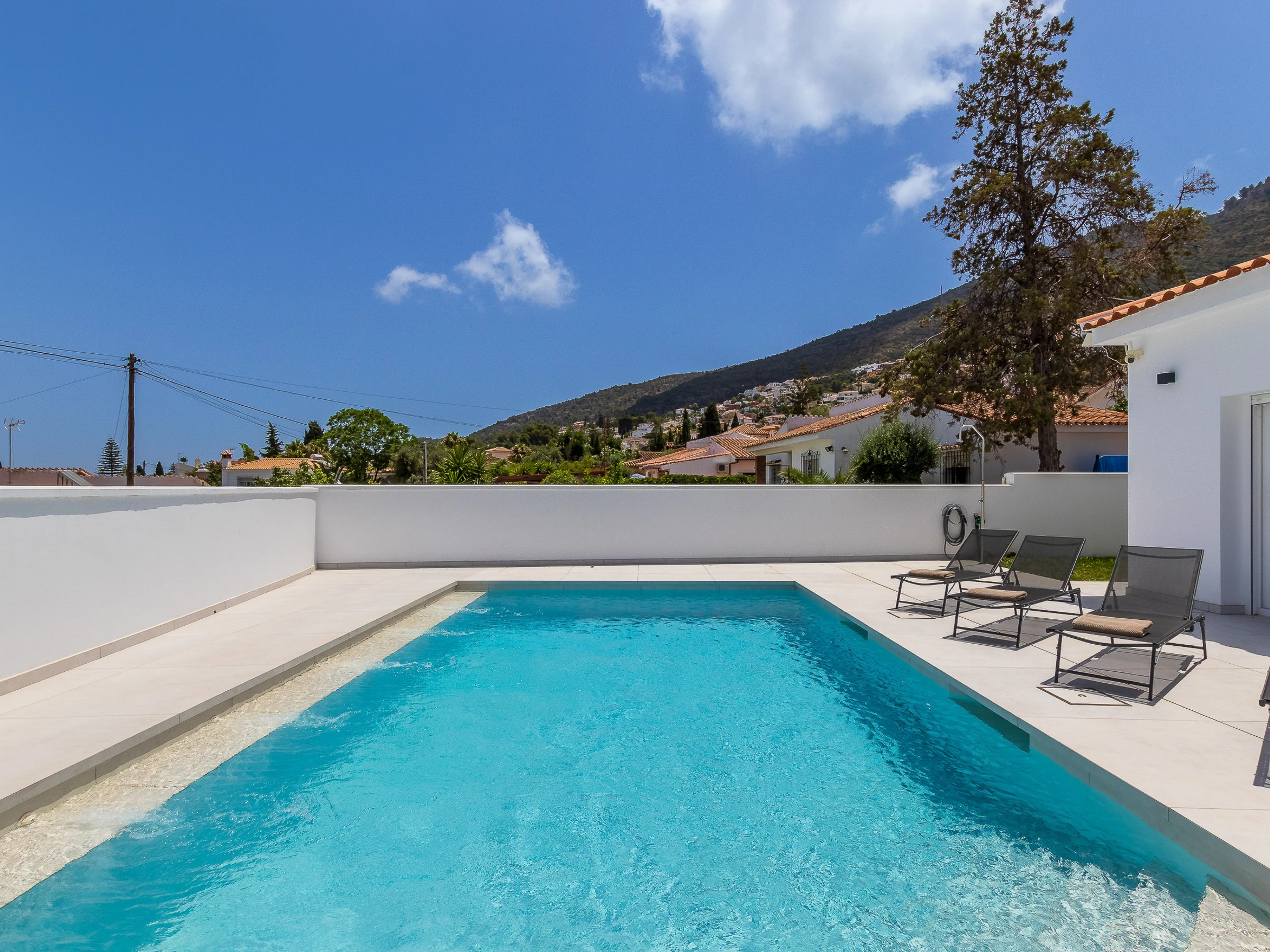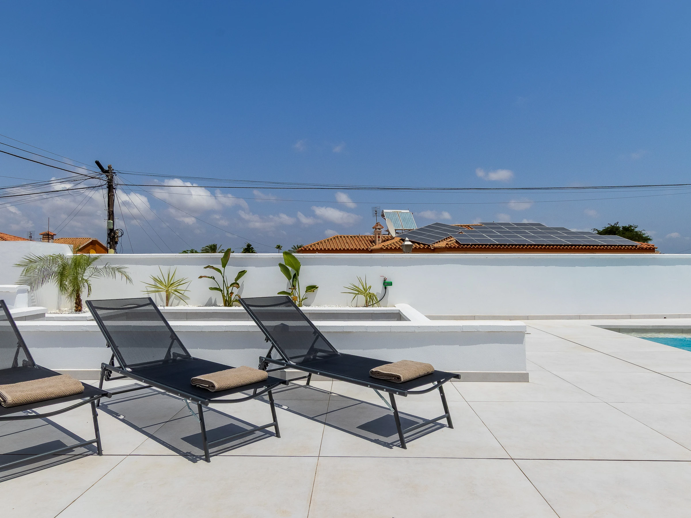 À l'extérieur, bien qu'ils n'apparaissent pas encore sur les photos, la villa dispose d'un ensemble de meubles de jardin pour quatre personnes, avec table incluse, idéal pour profiter des repas en plein air. Un barbecue Weber est également inclus, entièrement équipé avec des ustensiles, parfait pour profiter du climat méditerranéen.