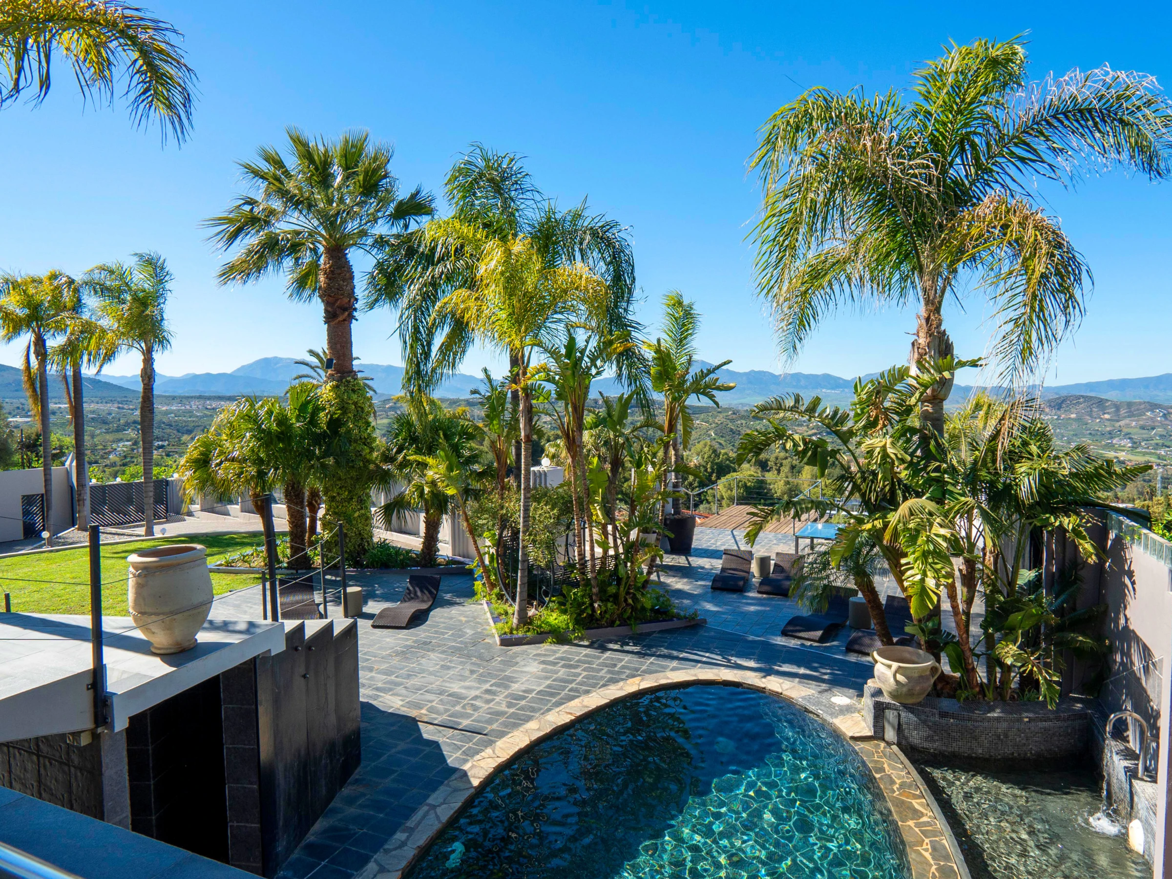Villa de luxe avec piscine privée, hammam, chauffage au sol, chauffage central, piscine intérieure climatisée, gymnase privé, vue panoramique et haute technologie à Alhaurín el Grande jusqu'à 12 personnes