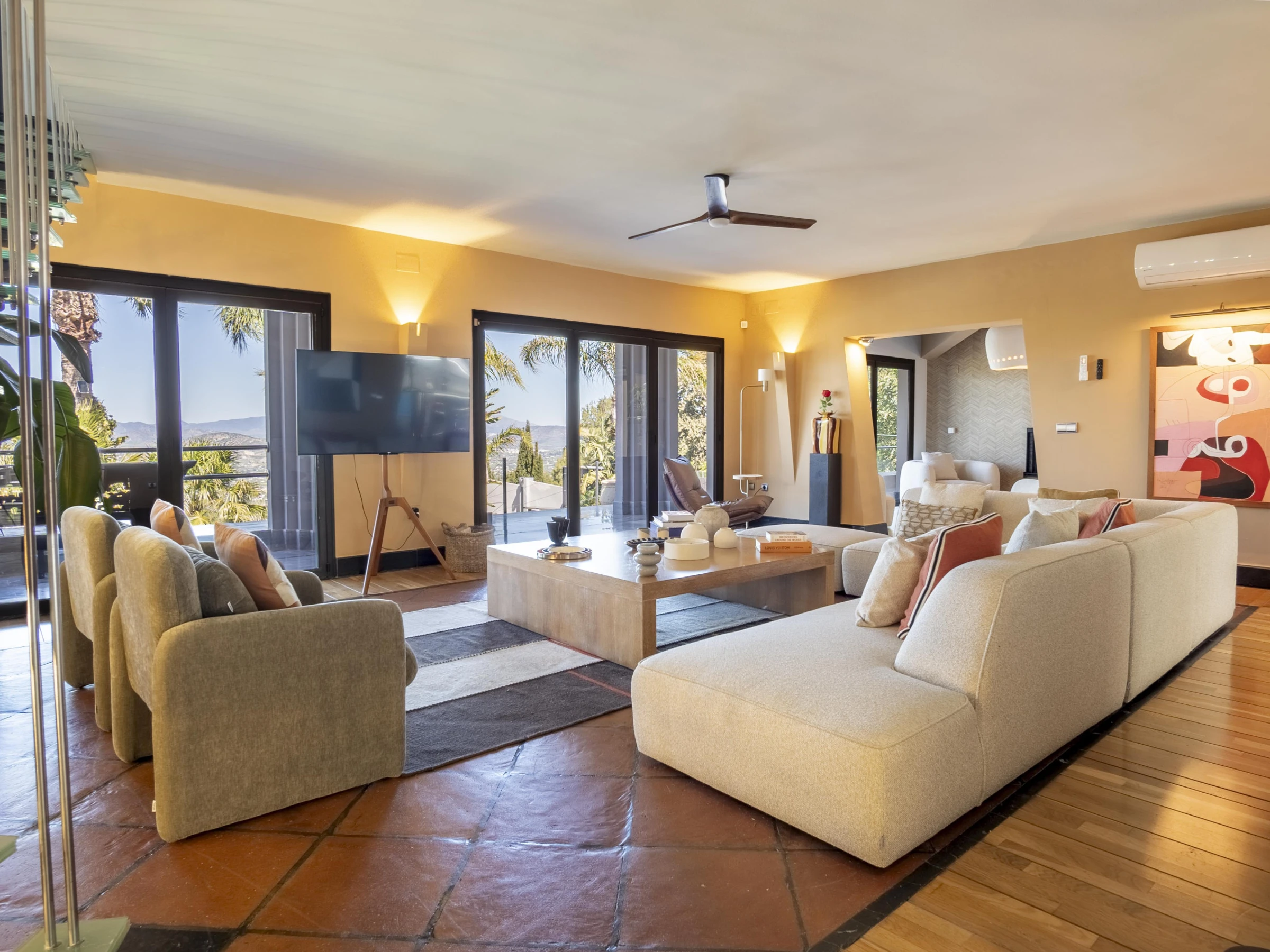- Salon principal avec TV Smart grand format et plus de 2 000 chaînes internationales, éclairage d'ambiance et fibre optique