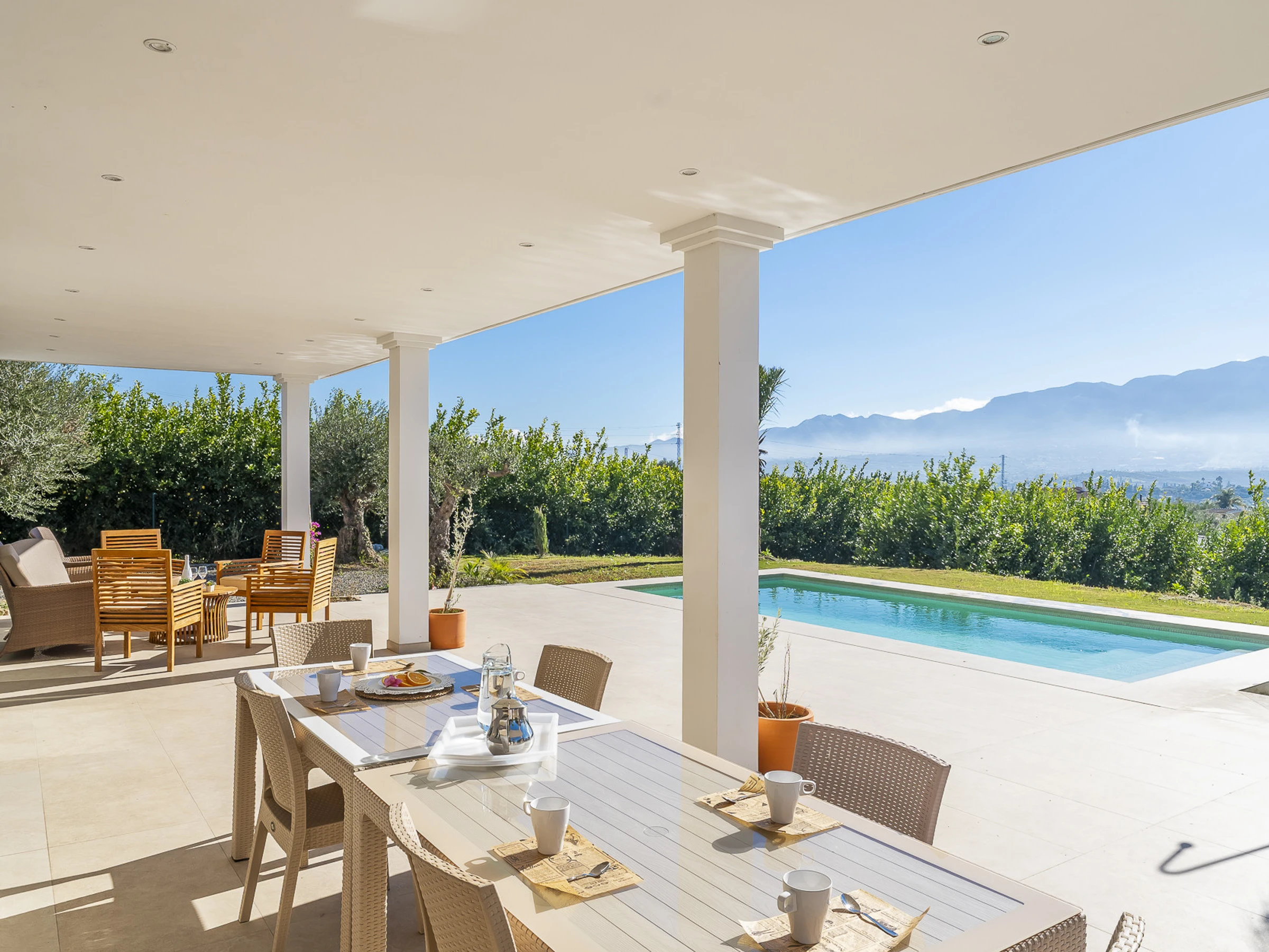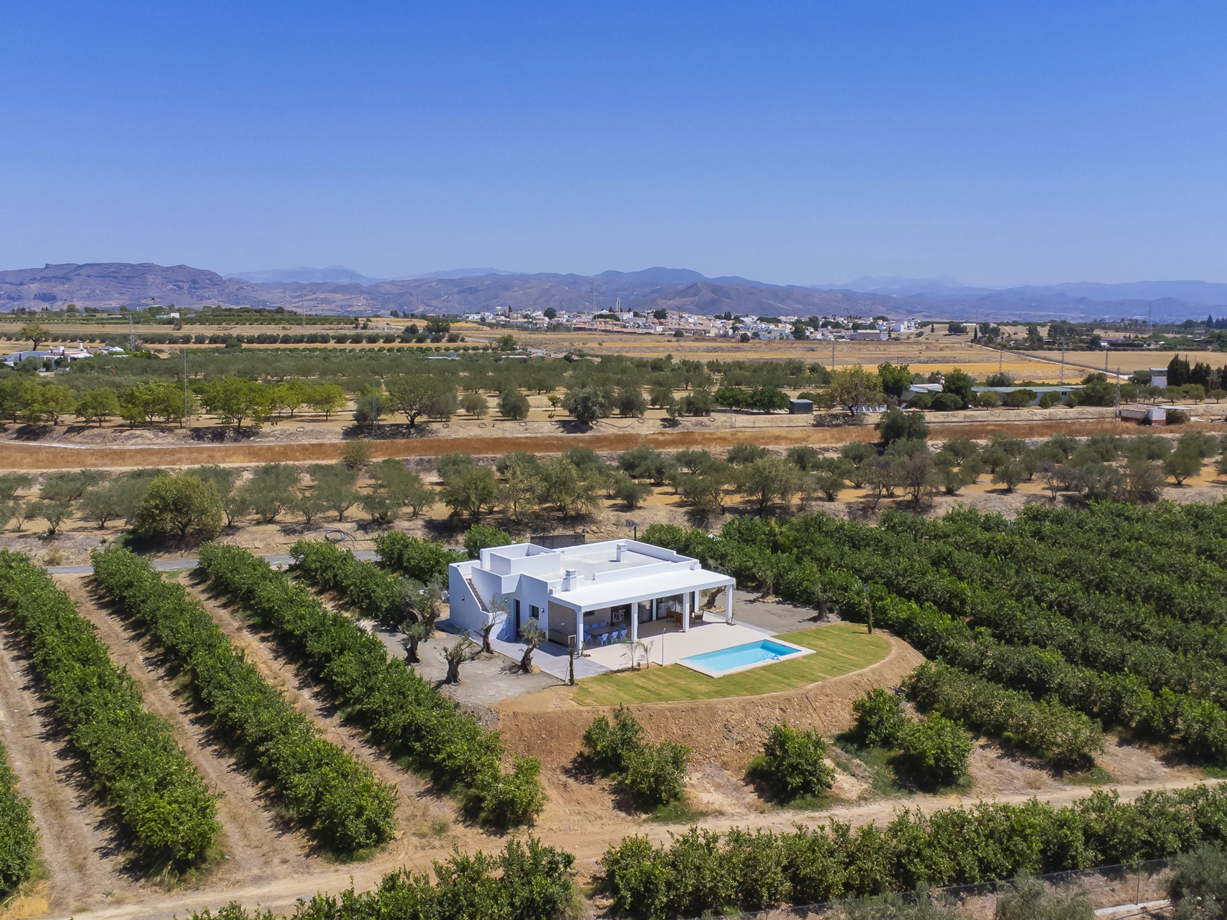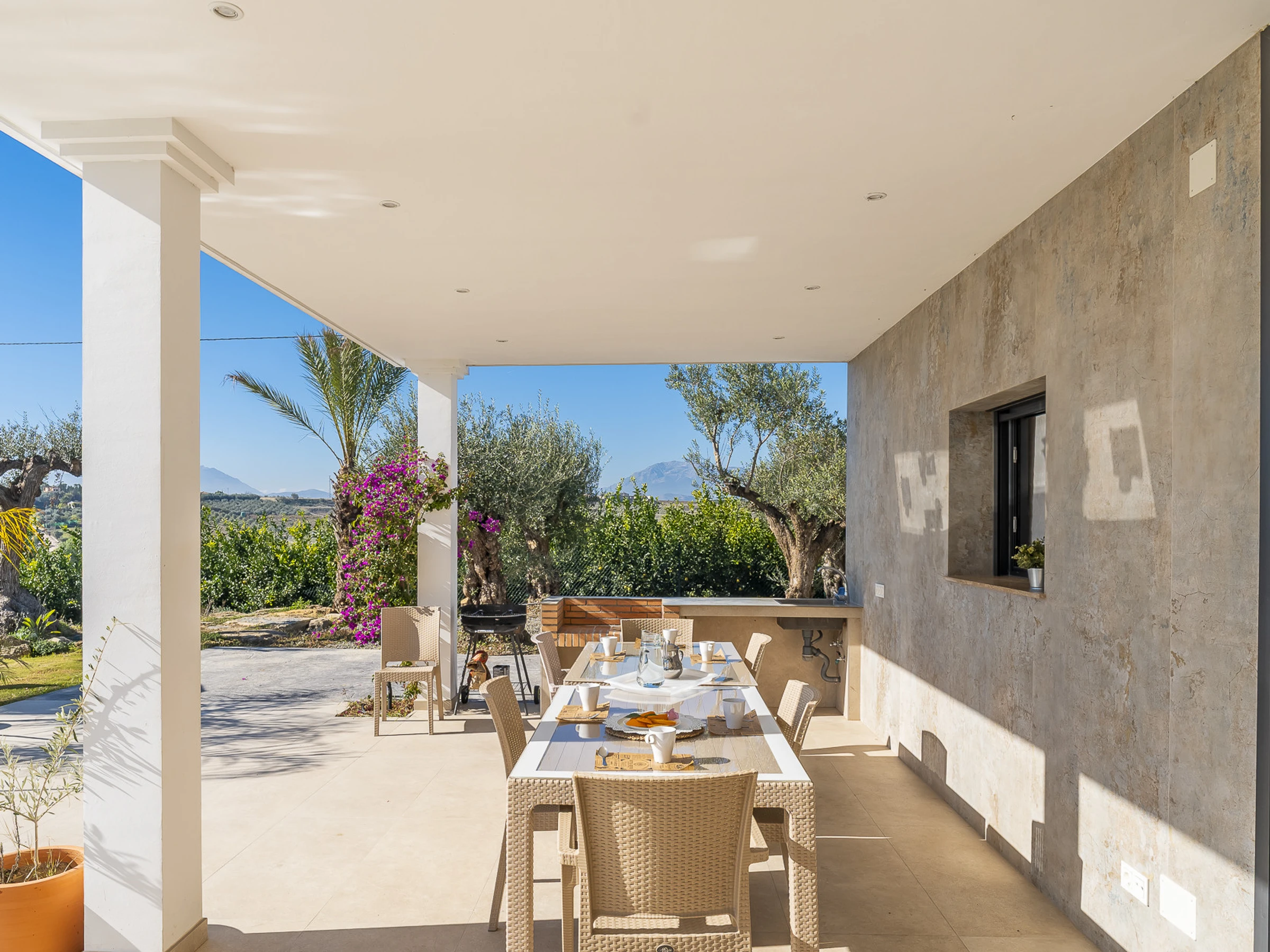 Profitez d'un séjour inoubliable dans cette charmante maison rurale située à Alhaurín el Grande, pouvant accueillir 8 personnes. Cette maison moderne et accueillante de plain-pied, entourée d'orangers biologiques et d'un paysage naturel, offre une combinaison idéale entre la paix de la campagne et la proximité des zones urbaines et des plages. Son accès se fait par un chemin privé de 500 mètres, ce qui garantit la confidentialité et la tranquillité tout au long de votre séjour.