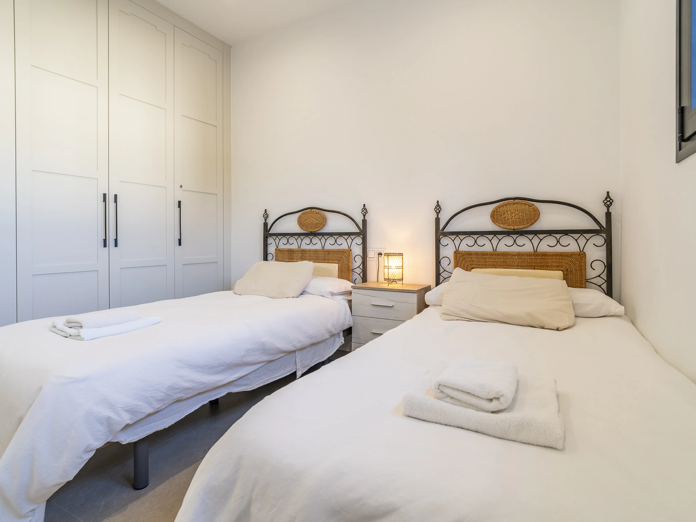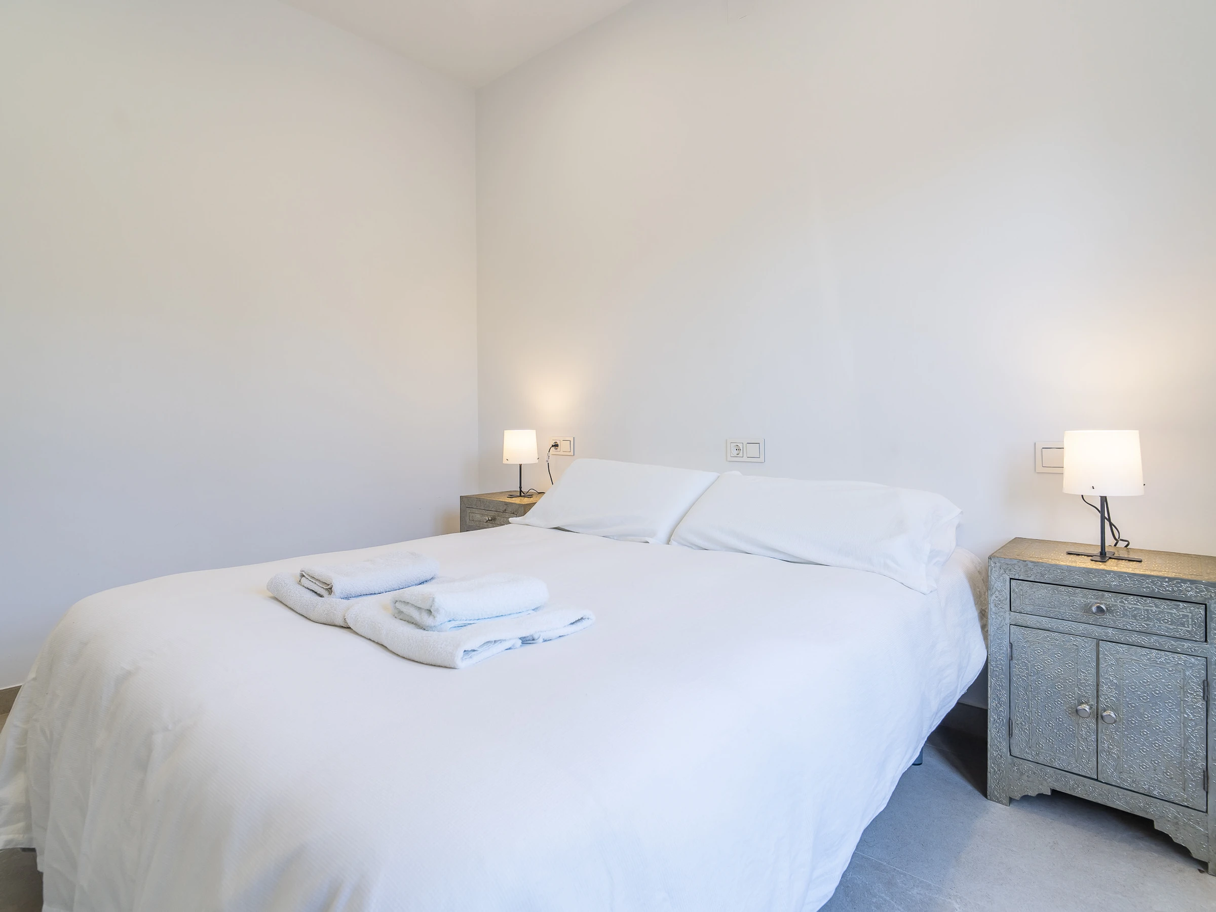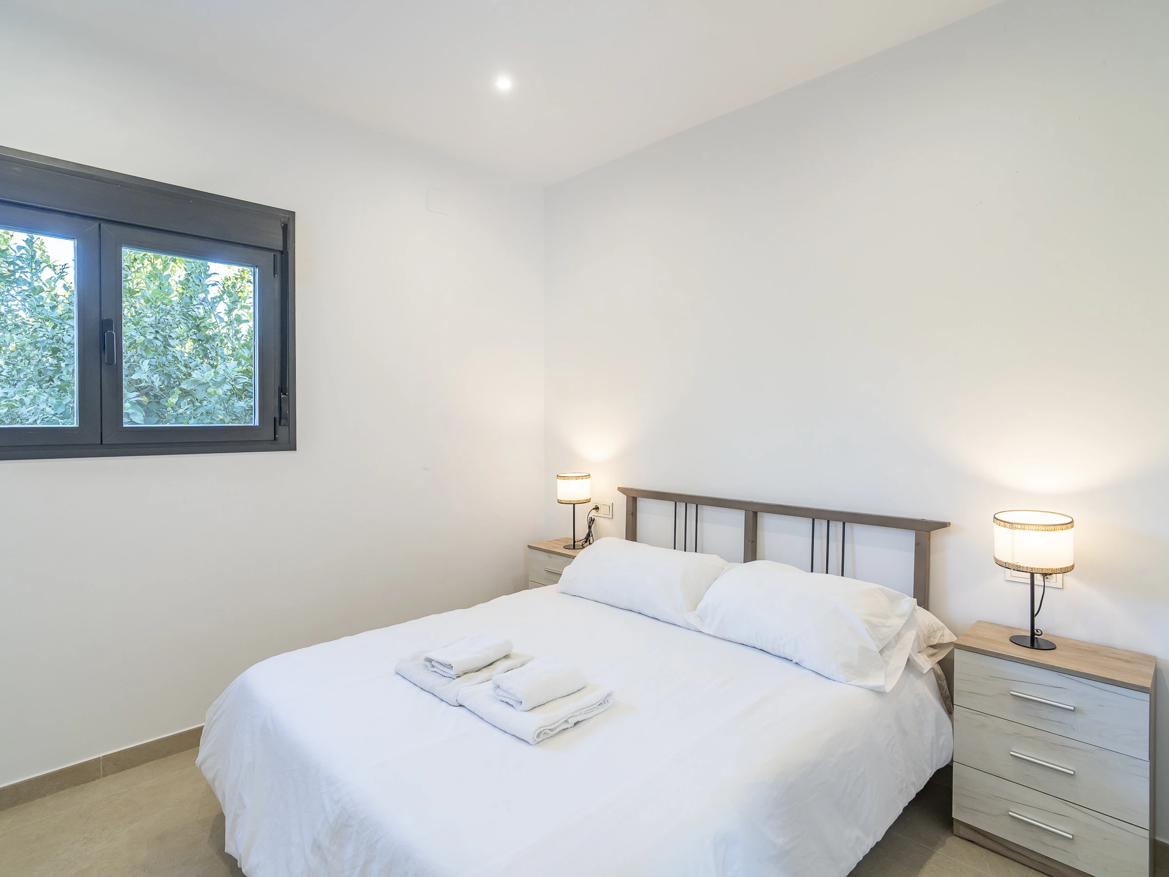 Les chambres sont réparties de la manière suivante : la chambre principale avec salle de bain attenante et lit de couple, une deuxième chambre avec lit de couple, et une troisième avec deux lits individuels. De plus, le canapé-lit double dans le salon permet d'héberger jusqu'à 8 personnes confortablement.