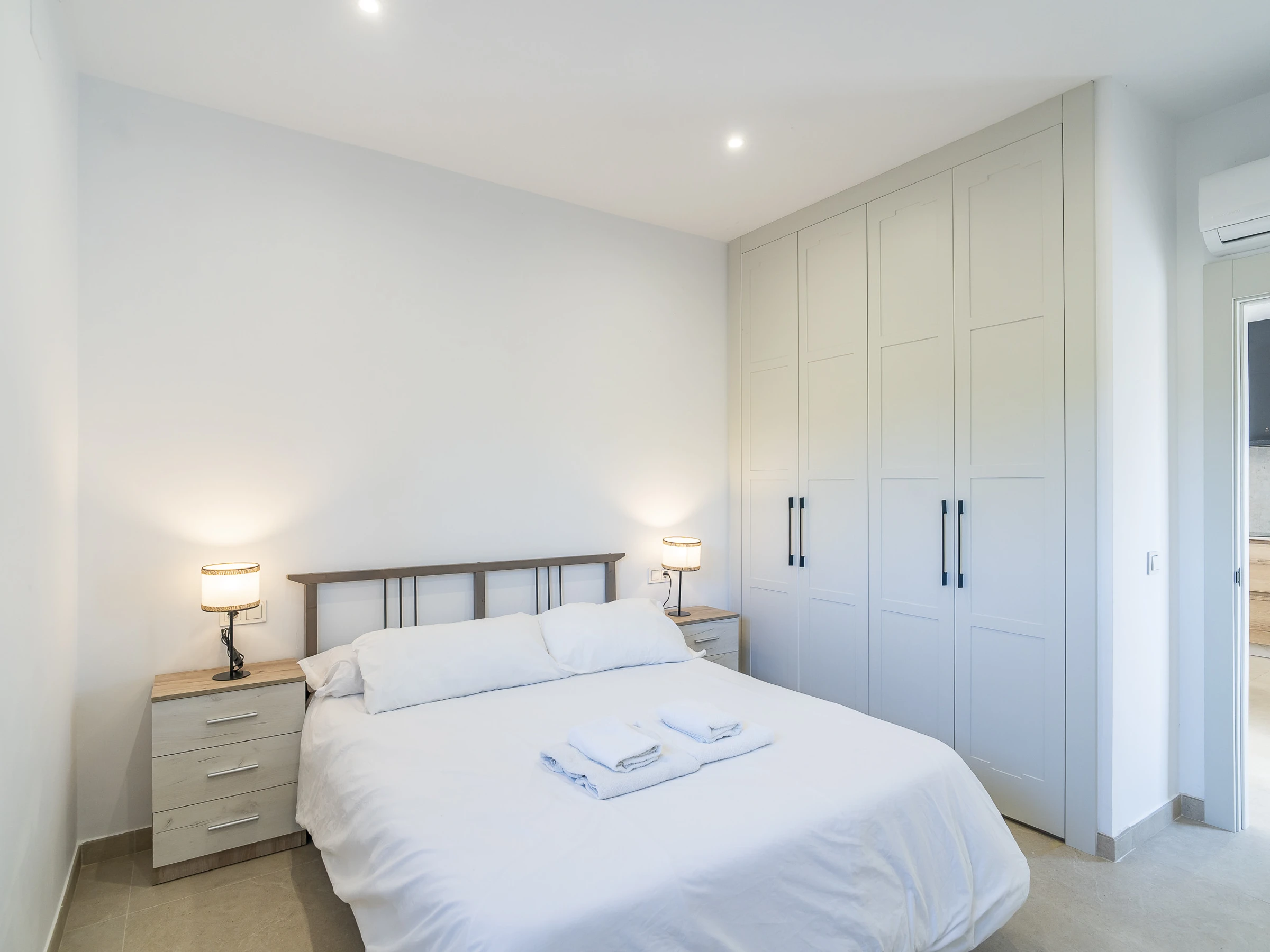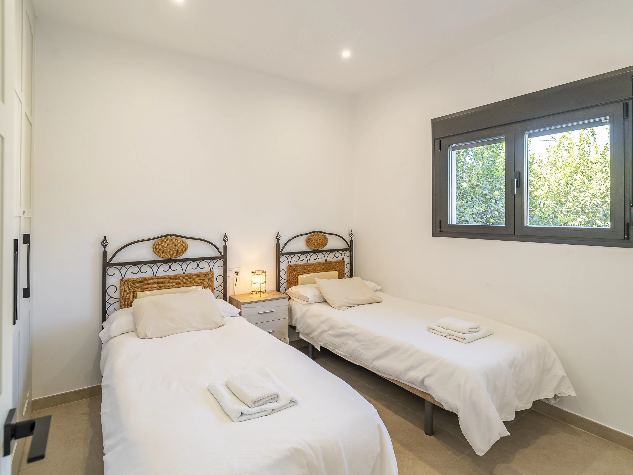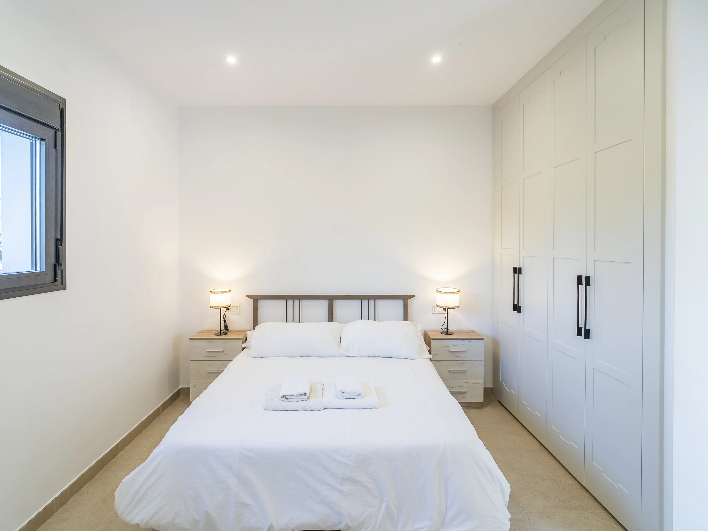 Les chambres sont réparties de la manière suivante : la chambre principale avec salle de bain attenante et lit de couple, une deuxième chambre avec lit de couple, et une troisième avec deux lits individuels. De plus, le canapé-lit double dans le salon permet d'héberger jusqu'à 8 personnes confortablement.