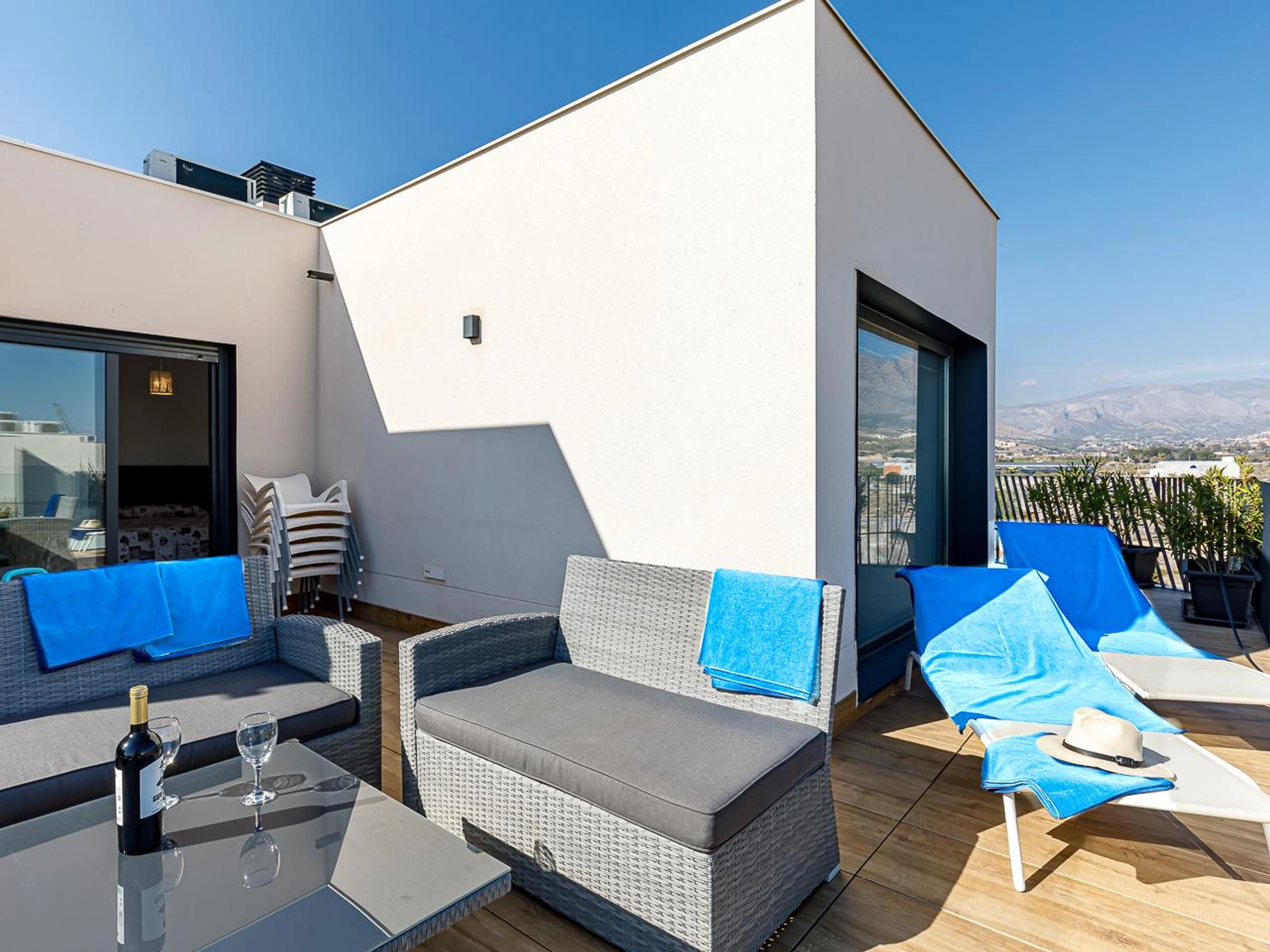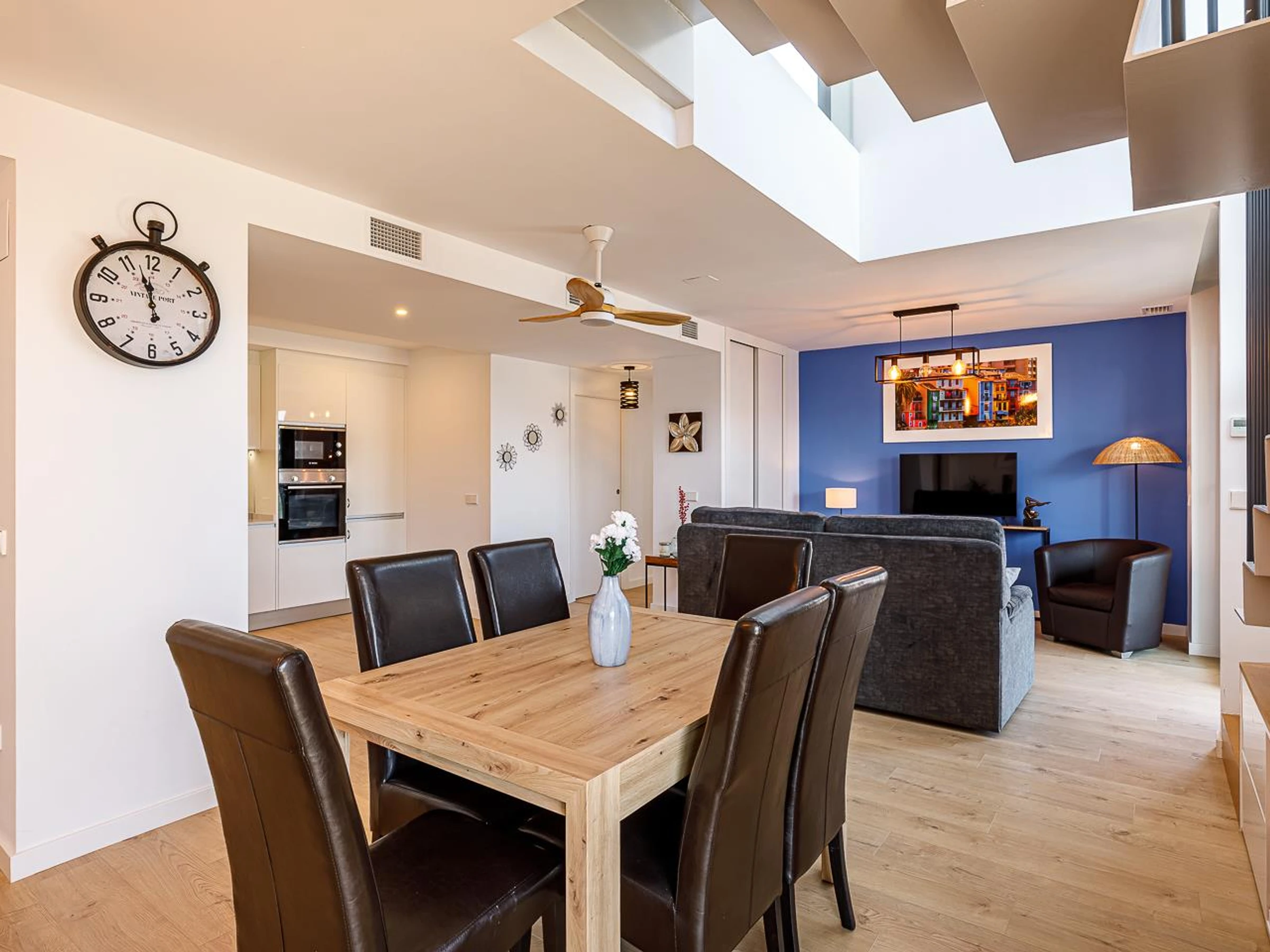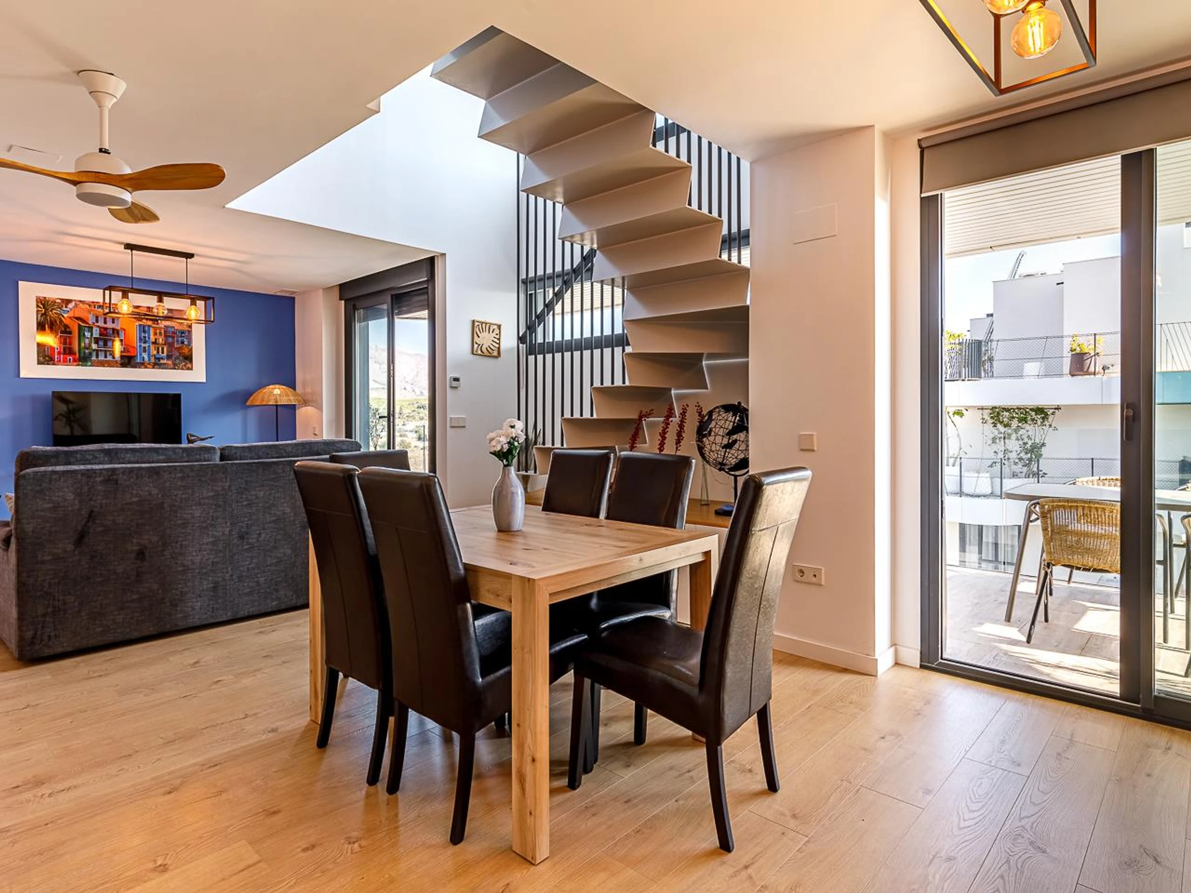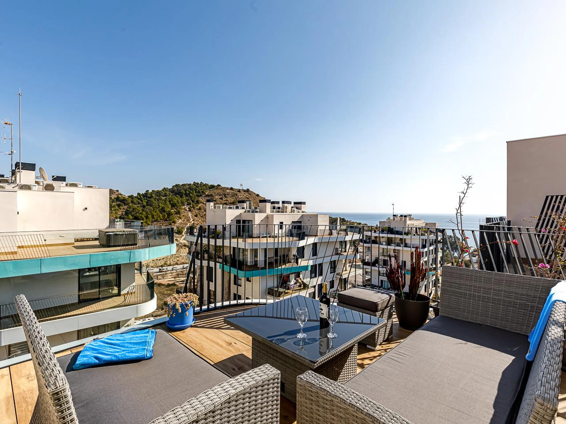 Appartement-terrasse moderne et confortable avec piscine communale à Villajoyosa, Costa Blanca, Espagne pour 6 personnes. L'appartement est située dans une région balnéaire et résidentielle et à 100 m de la plage. L'appartement a 2 chambres à coucher et 2 salles de bain, réparties sur 2 étages.
