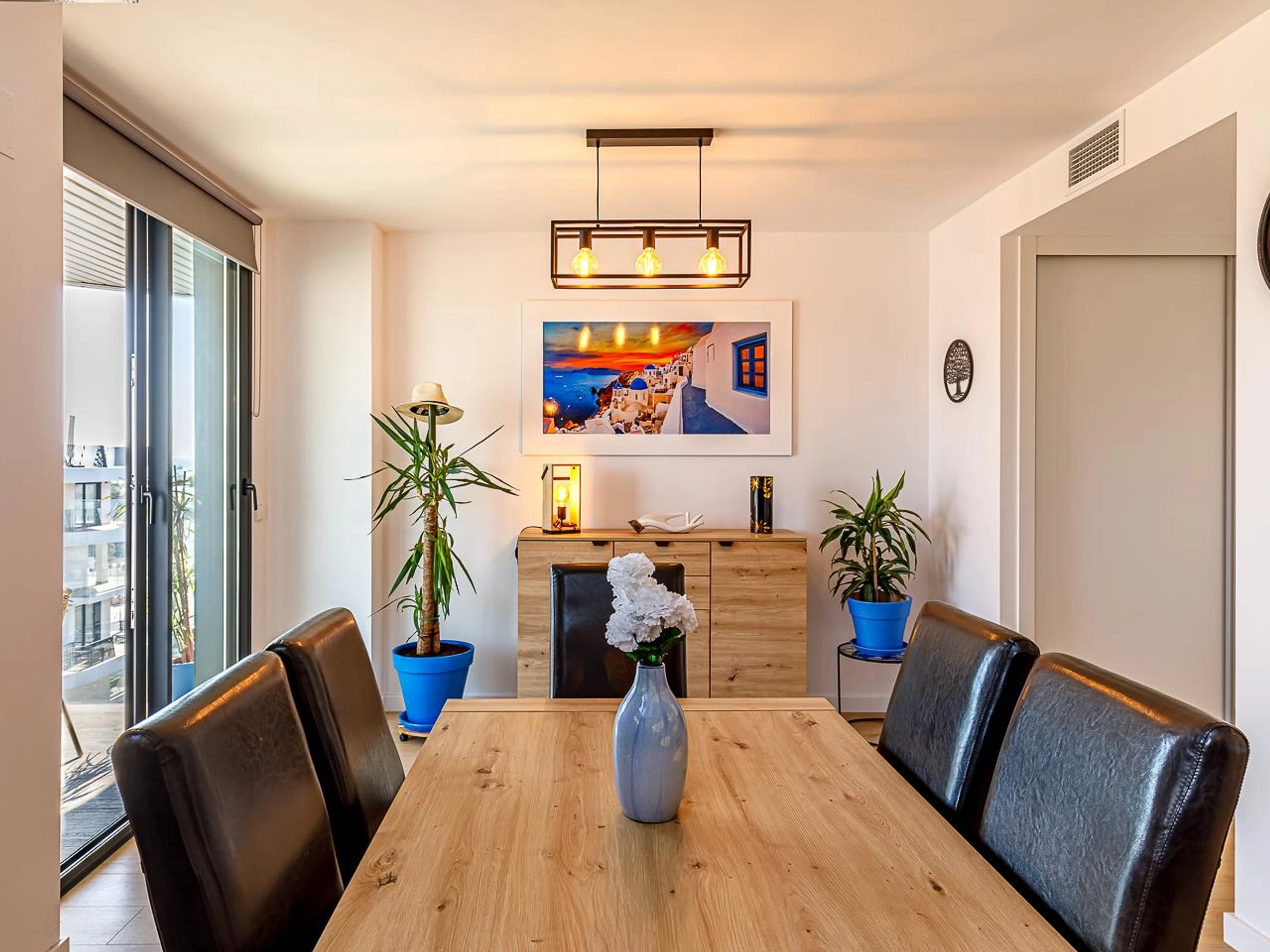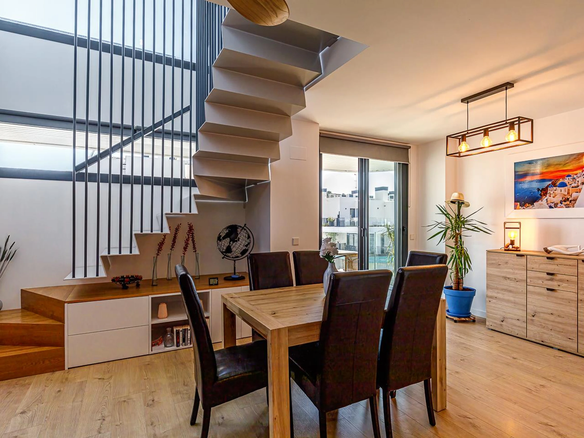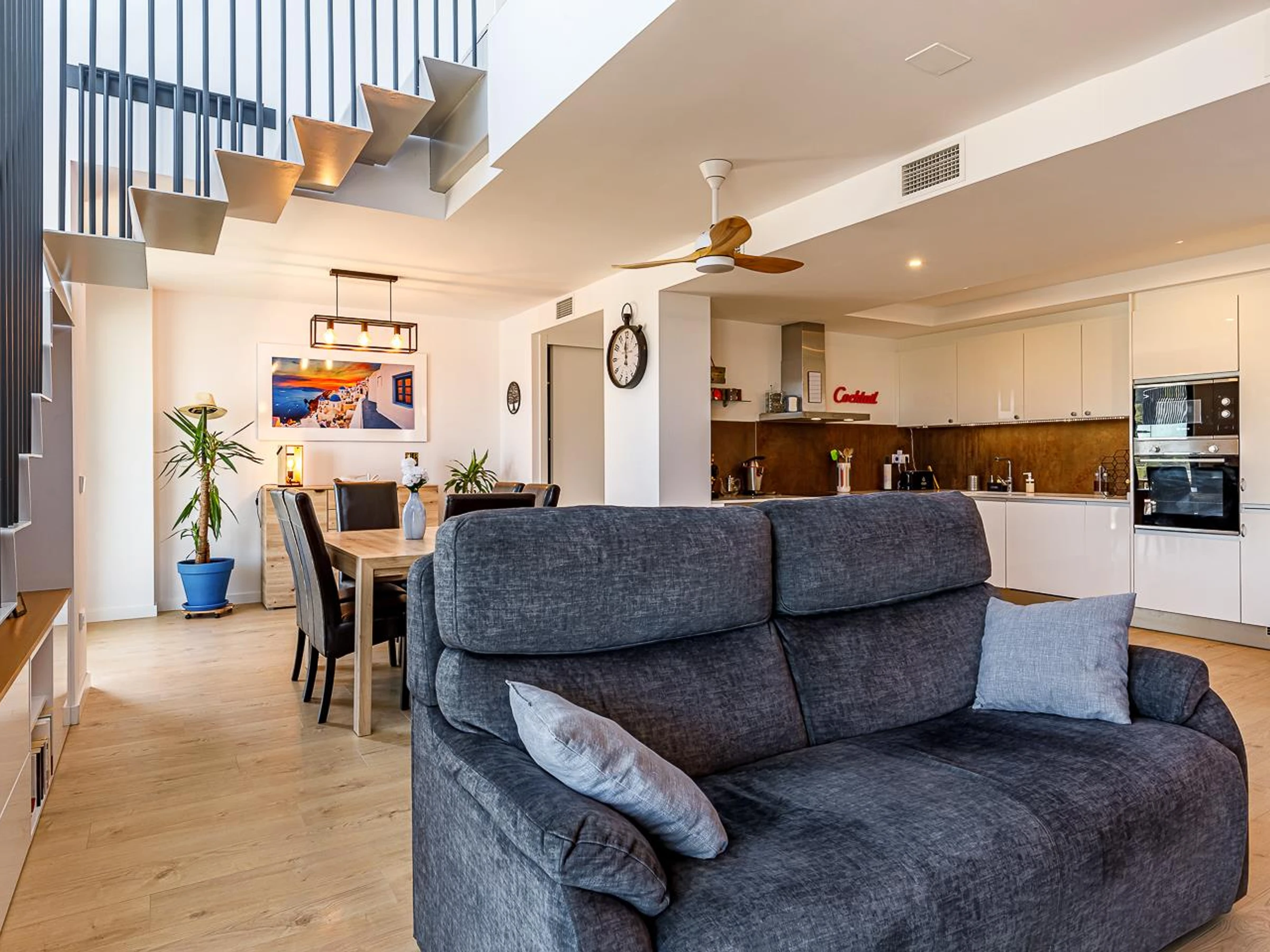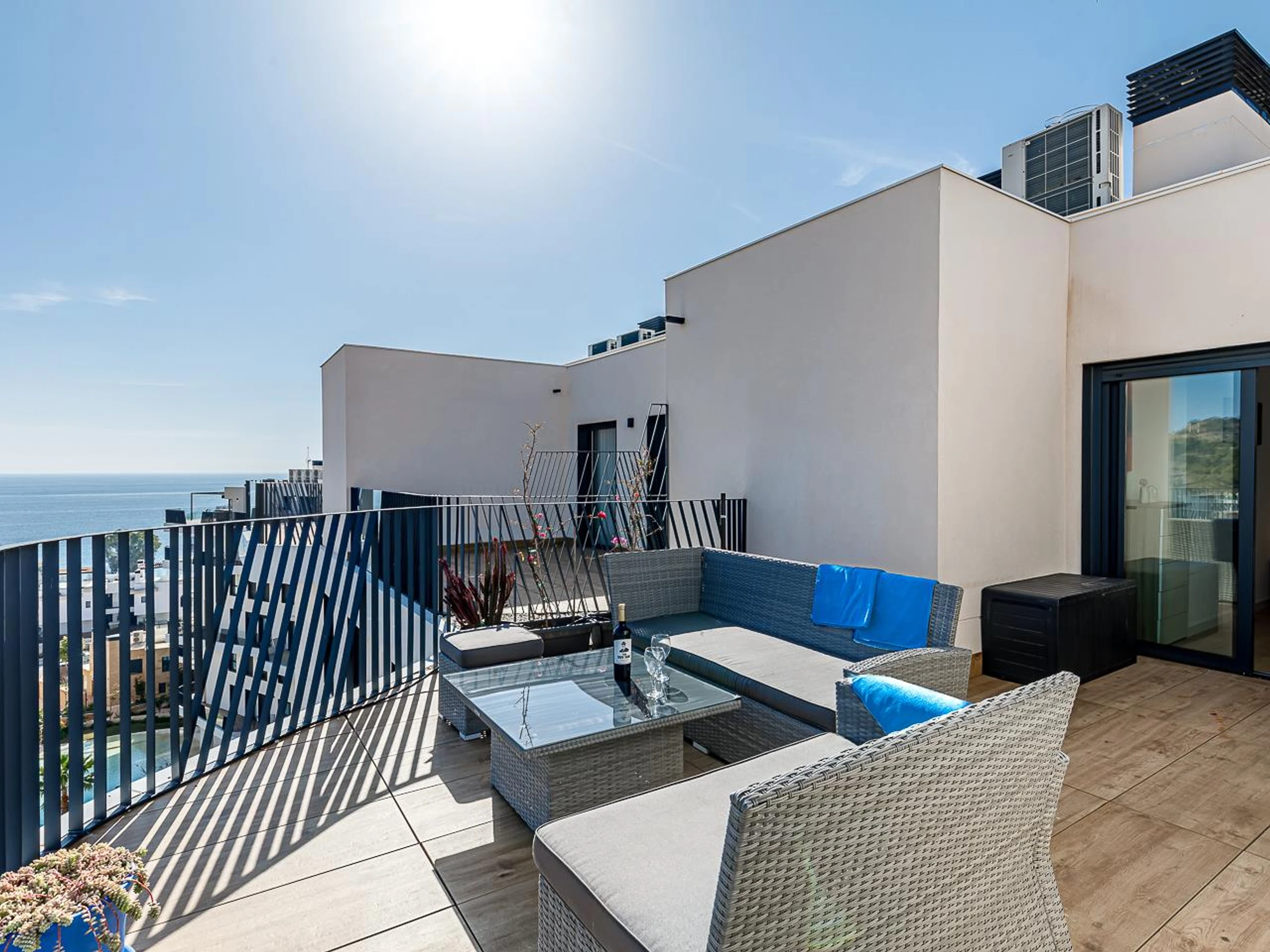 Appartement-terrasse moderne et confortable avec piscine communale à Villajoyosa, Costa Blanca, Espagne pour 6 personnes. L'appartement est située dans une région balnéaire et résidentielle et à 100 m de la plage. L'appartement a 2 chambres à coucher et 2 salles de bain, réparties sur 2 étages.