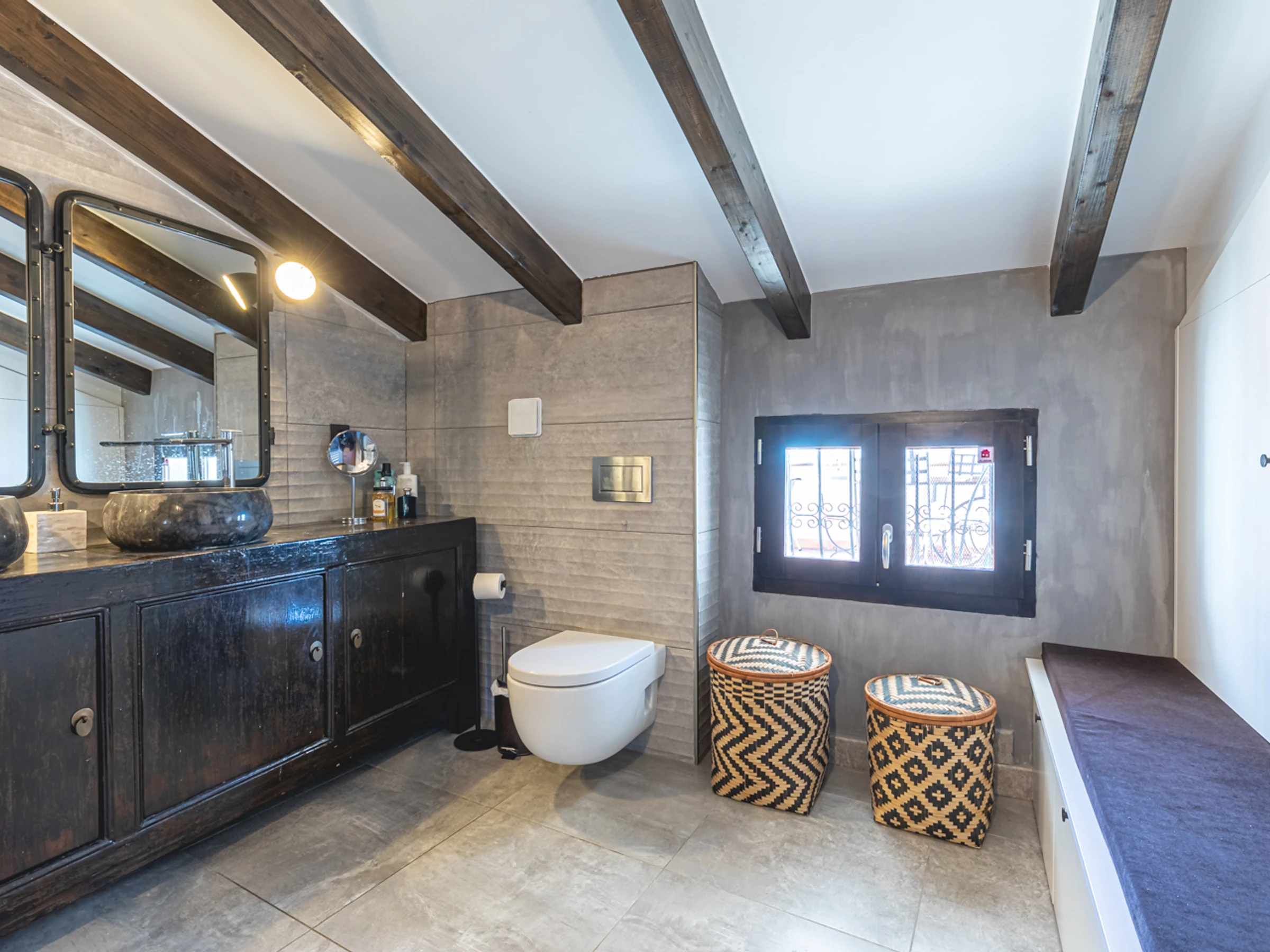 * salle de bain en suite avec double lavabo, douche, bidet et toilette