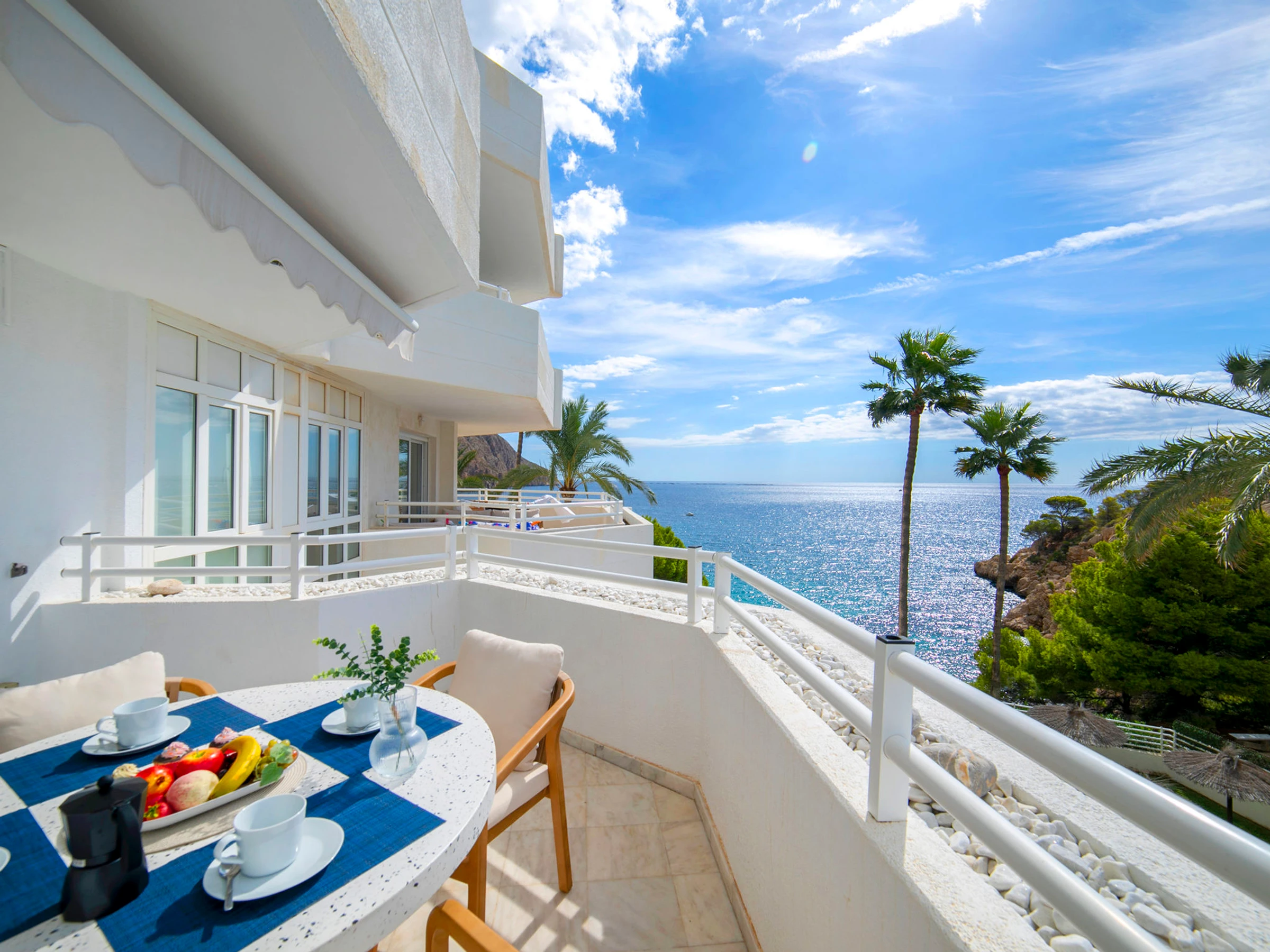 Mascarat: Belle petite résidence "Panorama". À 7 km du centre d'Altea, à 6 km du centre de Calpe, situation tranquille, ensoleillée, zone avec peu de trafic, juste au bord de la mer, juste au bord de la plage. En commun: terrain (clôturé), jardin avec pelouse, piscine (20 x 8 m, disponibilité saisonnière: [hidden] - [hidden] Douche extérieure. Infrastructures de la Maison: ascenseur. Magasin d'alimentation 3 km, supermarché 3 km, restaurant 2 km, arrêt de bus "Parada Bus" 5.5 km, plage de rochers "Playa Mascarat" 80 m. Port plaisance 600 m, marina 600 m, terrain de golf (9 trous) 7 km. Attractions à proximité: Aqualandia, Mundomar, Terra Mítica, Terra Natura, Les Fonts de l'Algar, Castillo de Guadalest.