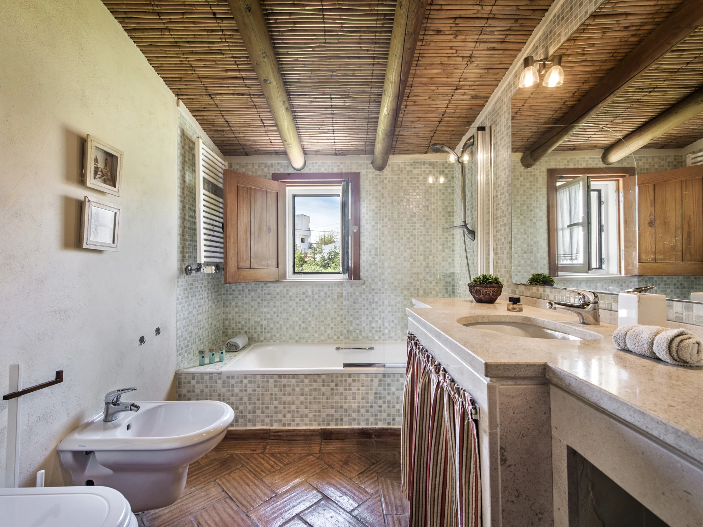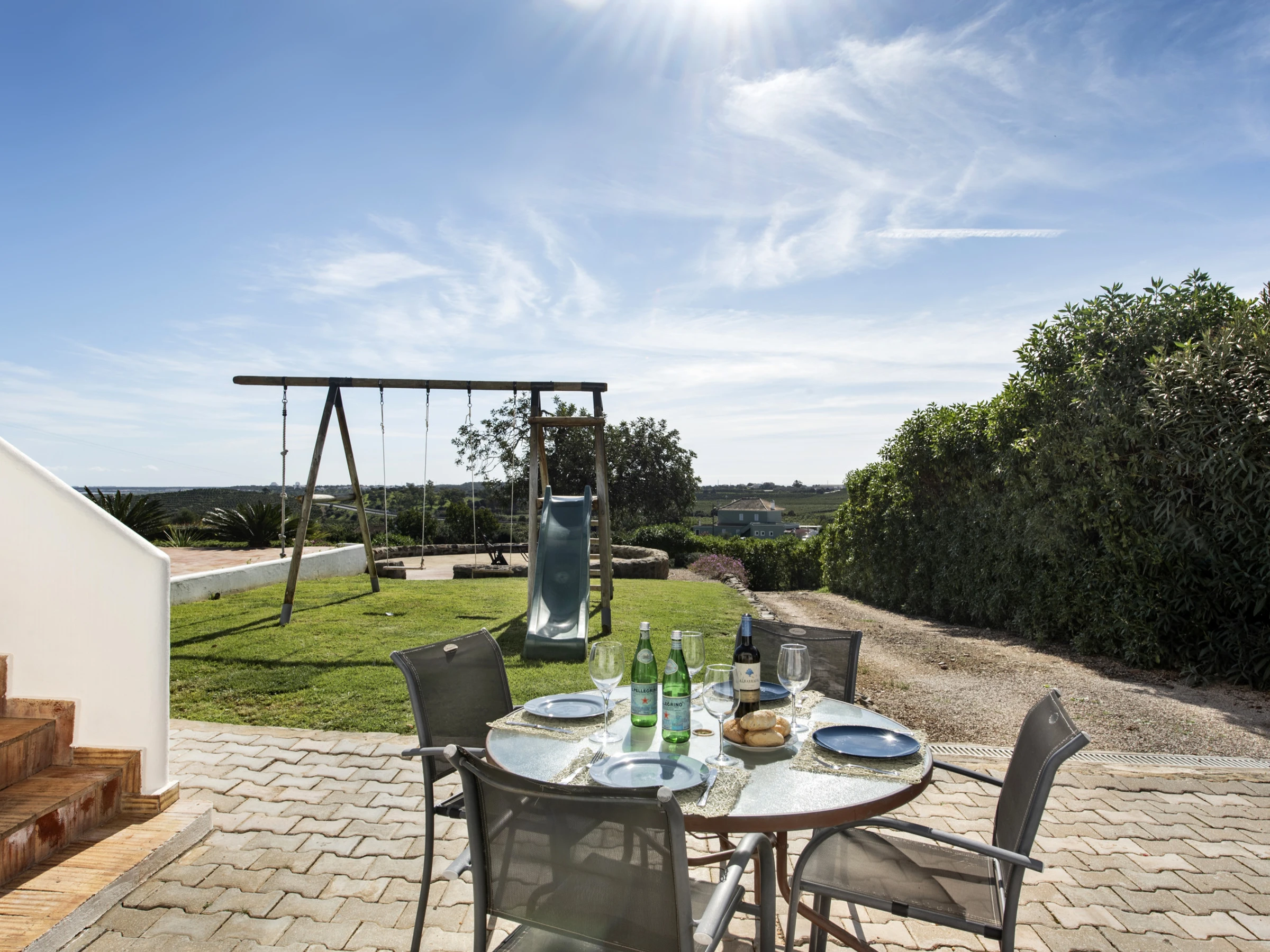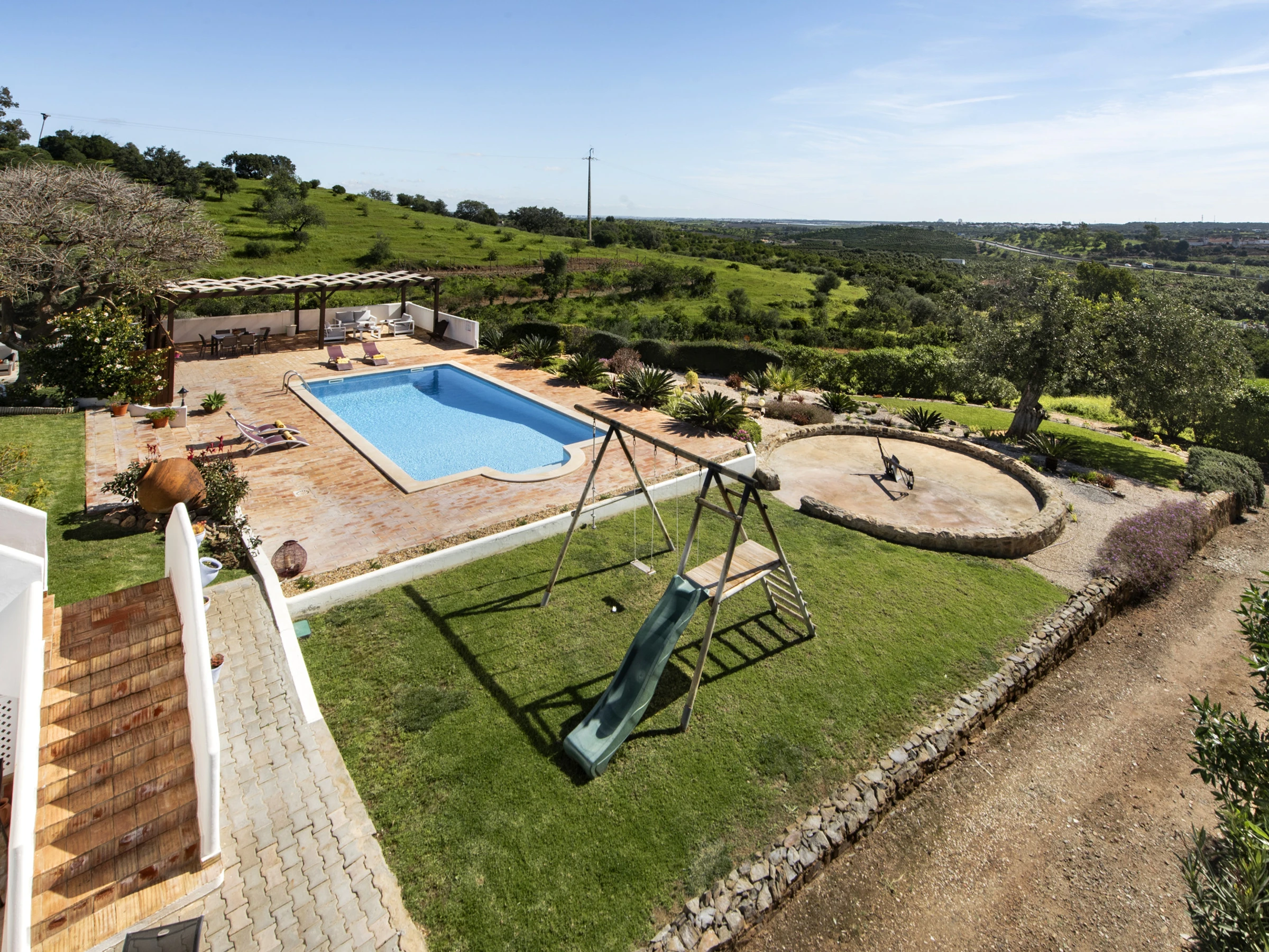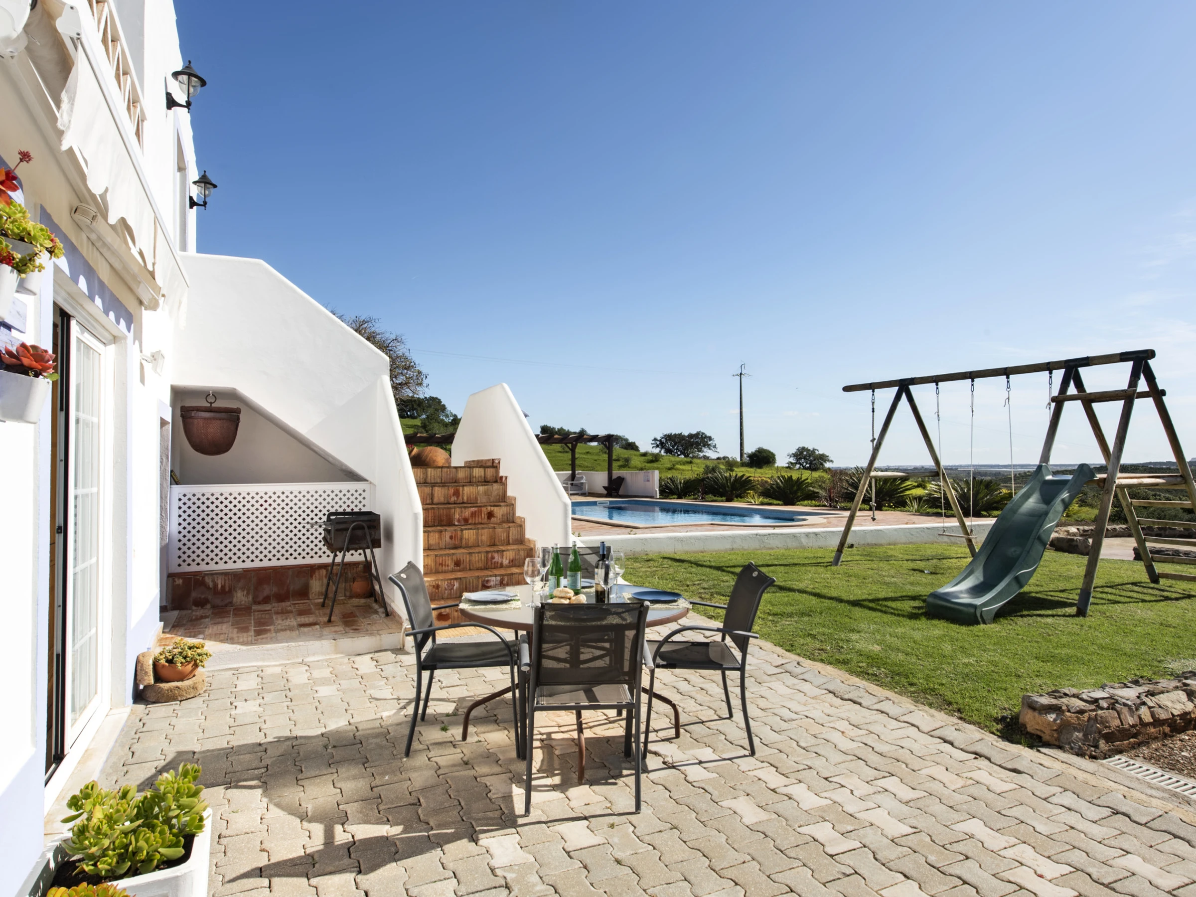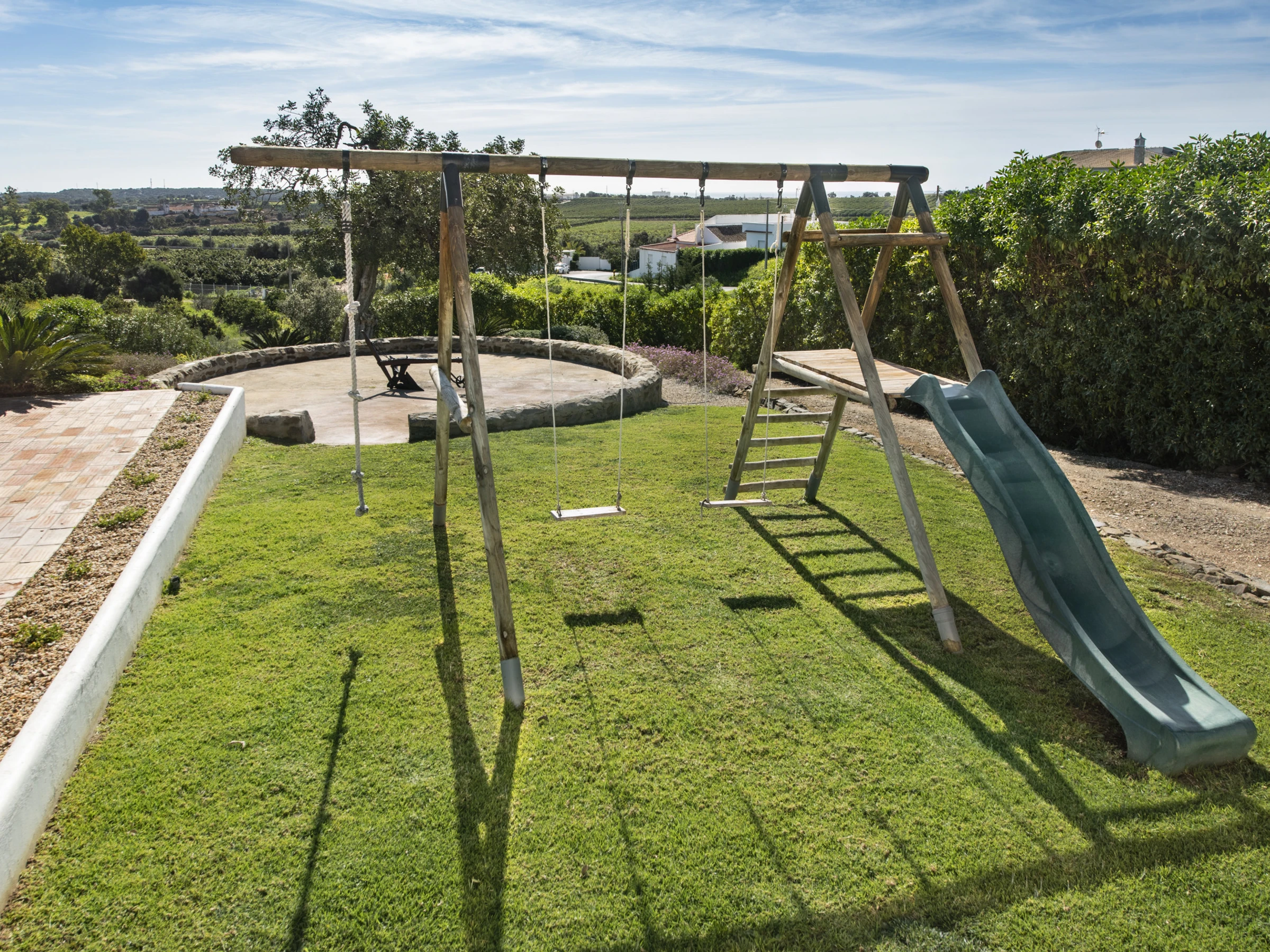 Le salon spacieux est équipé de télévision et de chaînes internationales, offrant des moments de détente. La cuisine entièrement équipée permet de préparer des repas en toute commodité, tout en conservant une touche d'authenticité. À l'extérieur, les éléments locaux typiques créent un espace accueillant pour contempler le paysage, tandis que la cour est idéale pour les repas en plein air. La piscine partagée, entourée d'un jardin soigné et dotée d'une zone de séjour couverte, est parfaite pour se rafraîchir par les journées chaudes. Pour les plus petits, la balançoire et le toboggan garantissent du divertissement. Le stationnement en plein air est également disponible. Pour des moments spéciaux, la maison dispose également d'une cave à vin, accessible selon des conditions spécifiques présentées lors du check-in.