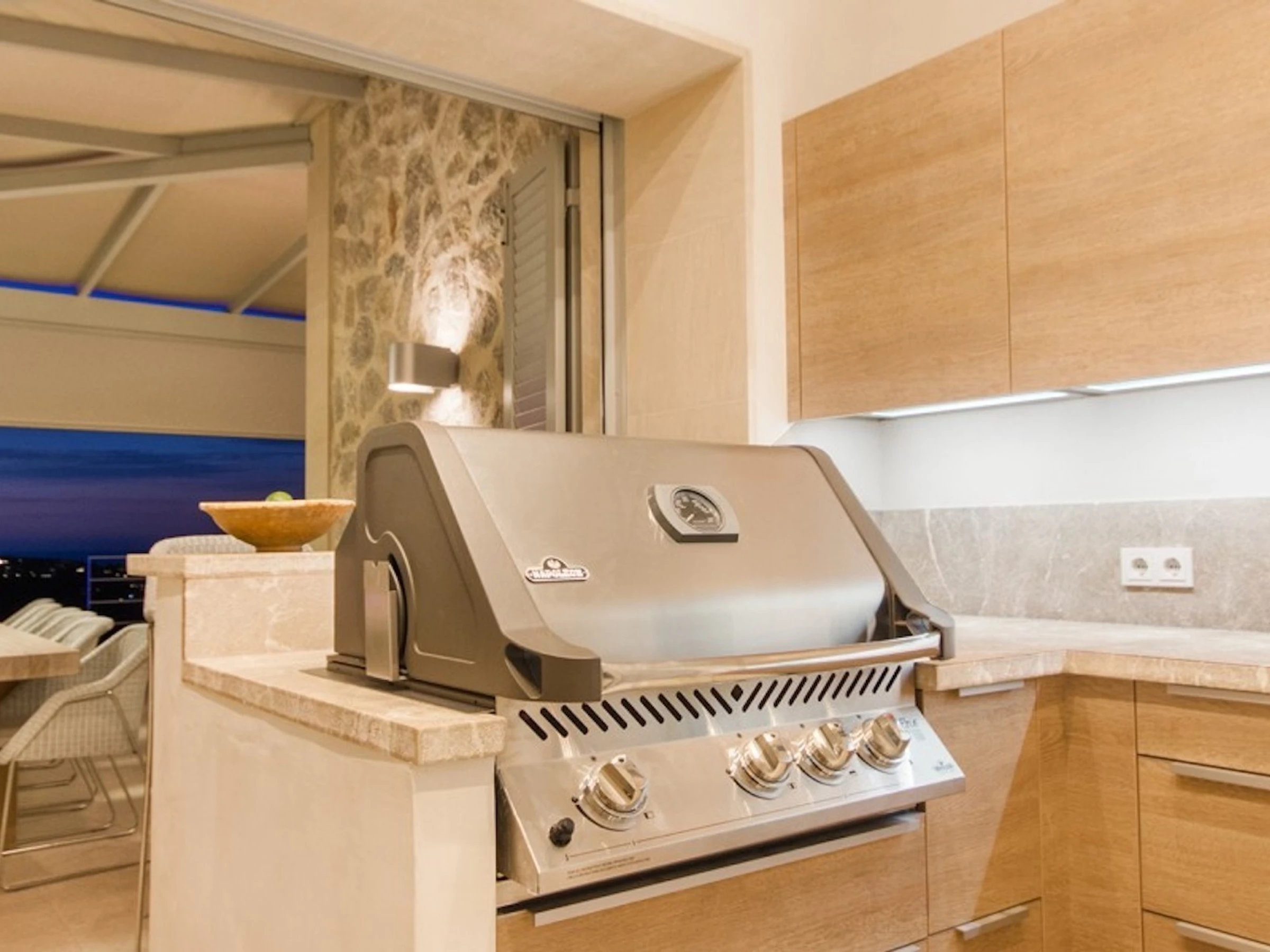 La cuisine, est équipée avec réfrigérateur, four, lave-vaisselle et cafetière.