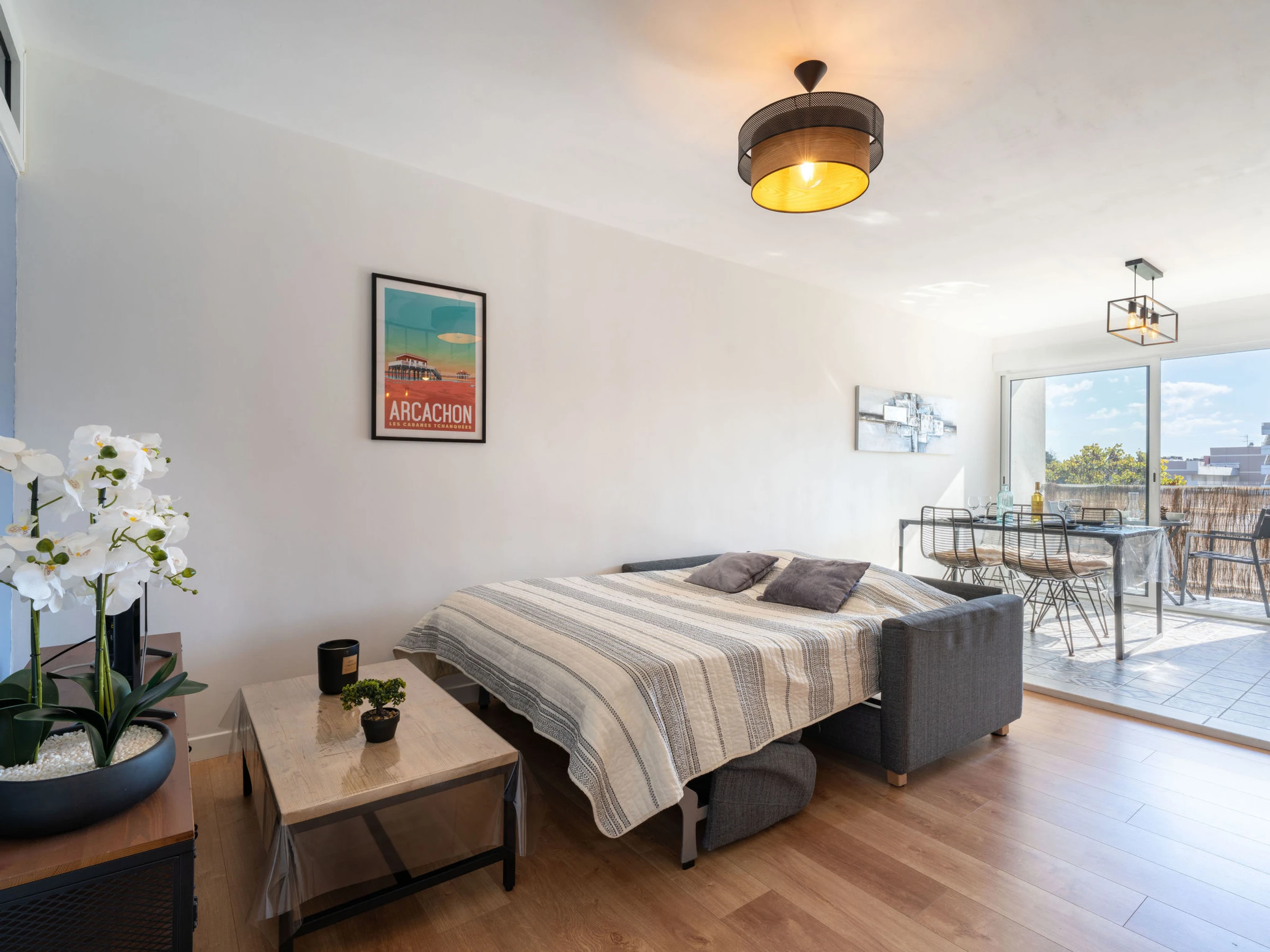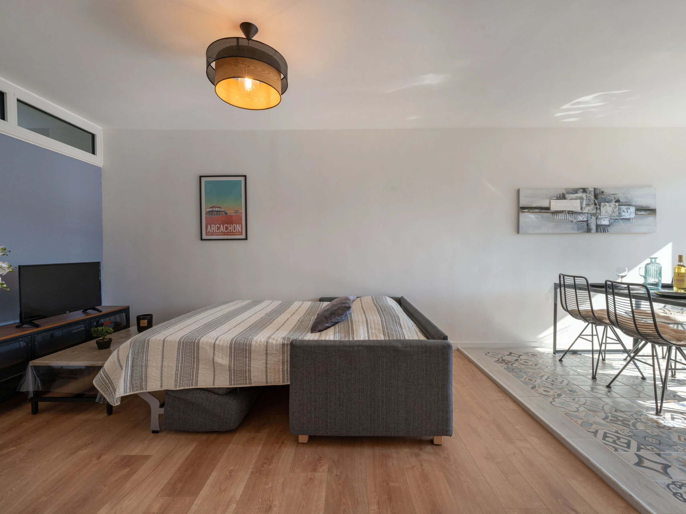 Arcachon: Résidence "Arcachon Marines". Dans le quartier de d'Aiguillon, à 1.2 km de la mer, à 1.2 km de la plage. Magasins 1 km, magasin d'alimentation, supermarché 850 m, centre commercial 2.6 km, restaurant 1 km, bar 1 km, boulangerie 1 km, café 1 km, arrêt de bus "Les Mouettes" 50 m, gare ferroviaire "Arcachon" 1.7 km, plage de sable "Aiguillon" 1.2 km, parc "Mauresque" 2 km, piscine couverte 50 m, centre thermal "Thalazur" 14.2 km. Port plaisance 2.3 km, terrain de golf (18 trous) 4.6 km. Attractions à proximité: Dune du Pyla 11.2 km, ArcaJetMarine 1.2 km, Observatoire Sainte Cécile 2.5 km, Marché Municipal 2.3 km, Eratopia 7.5 km, Navette Maritime pour le Cap Ferret 1.7 km. Les lacs connus sont facilement accessibles: Lac de la Magdeleine 8.8 km, Lac de Cazaux 16.3 km. La remise des clés a lieu à l’agence d'Arcachon, 2 km.