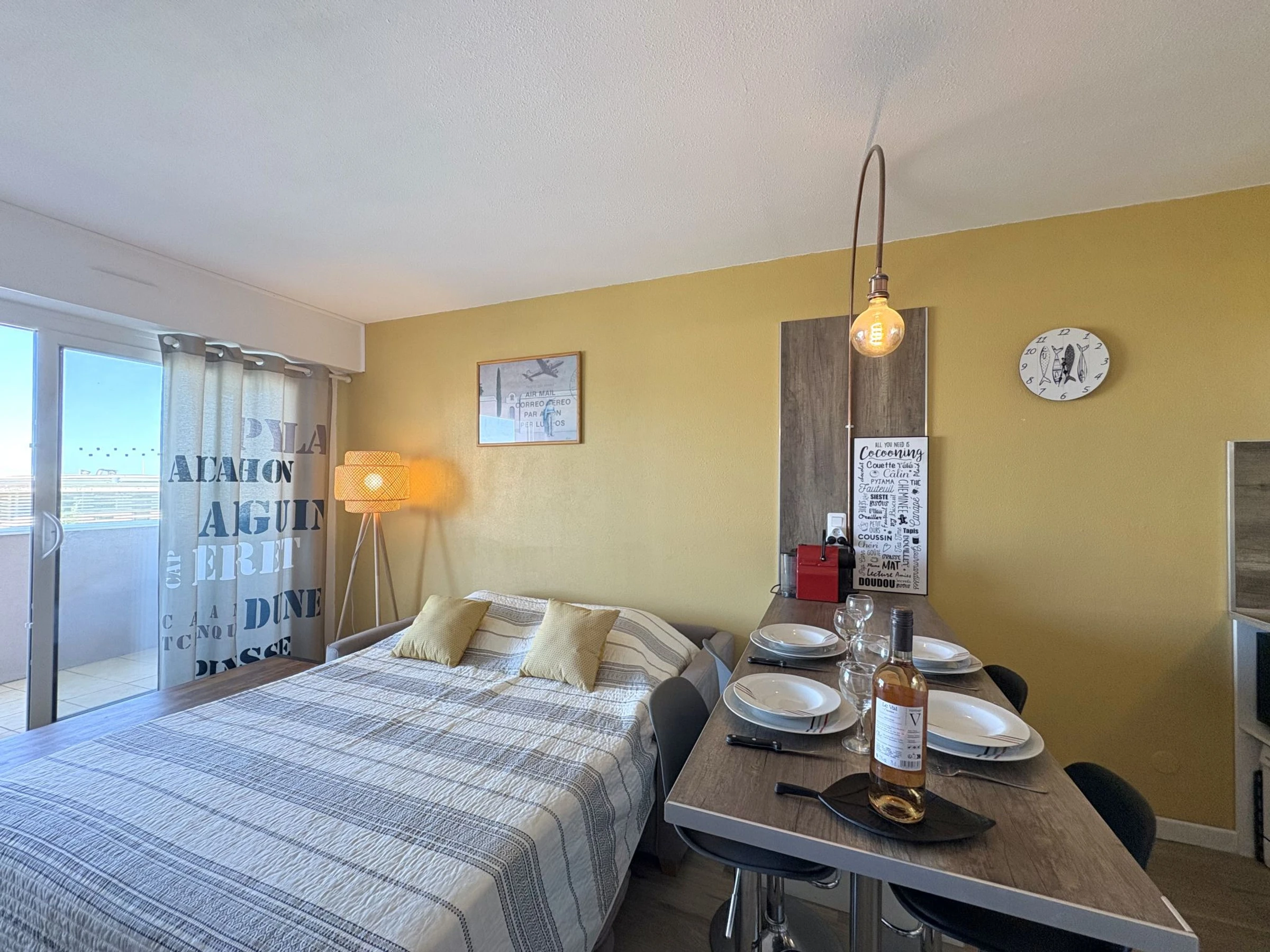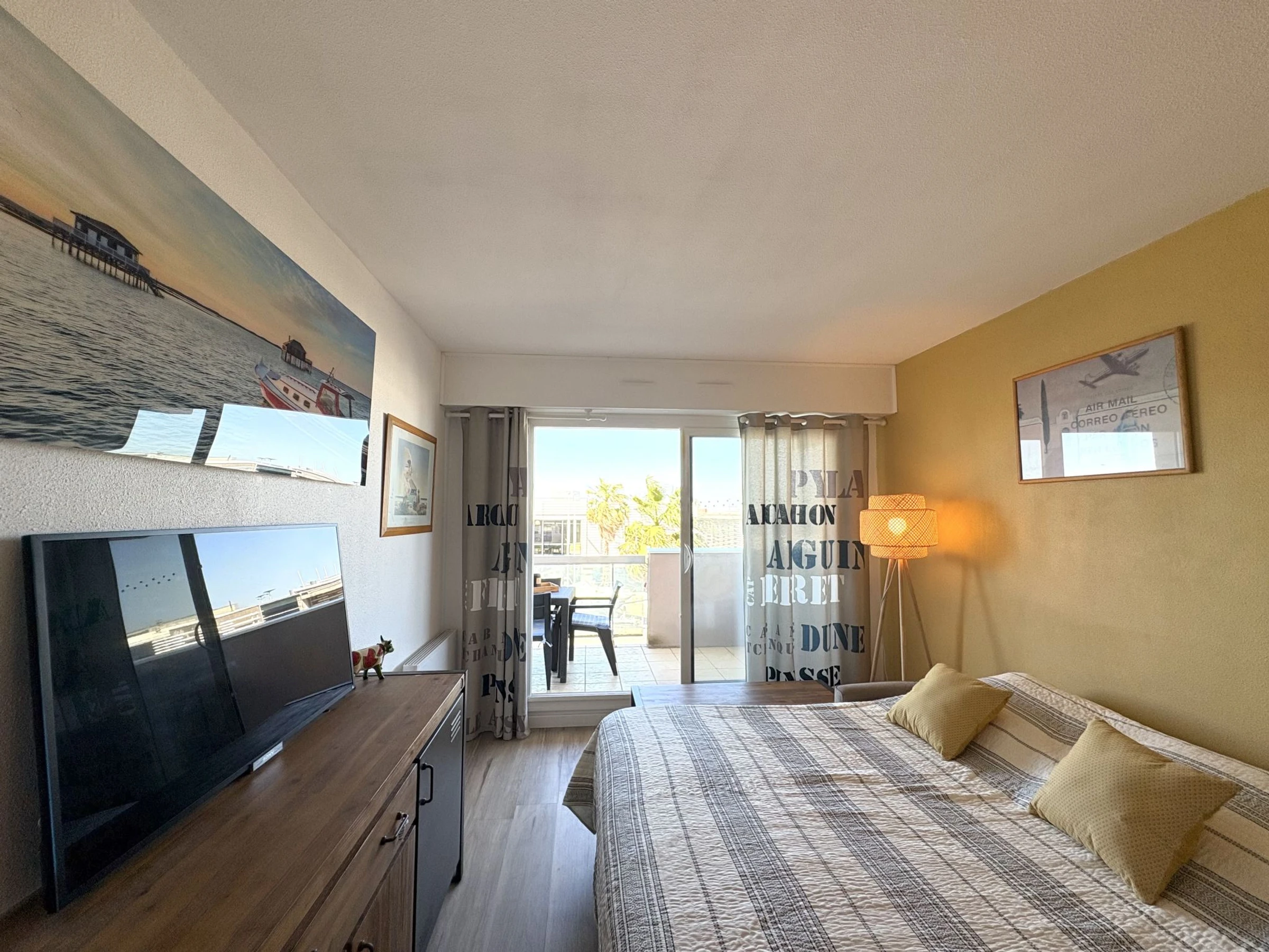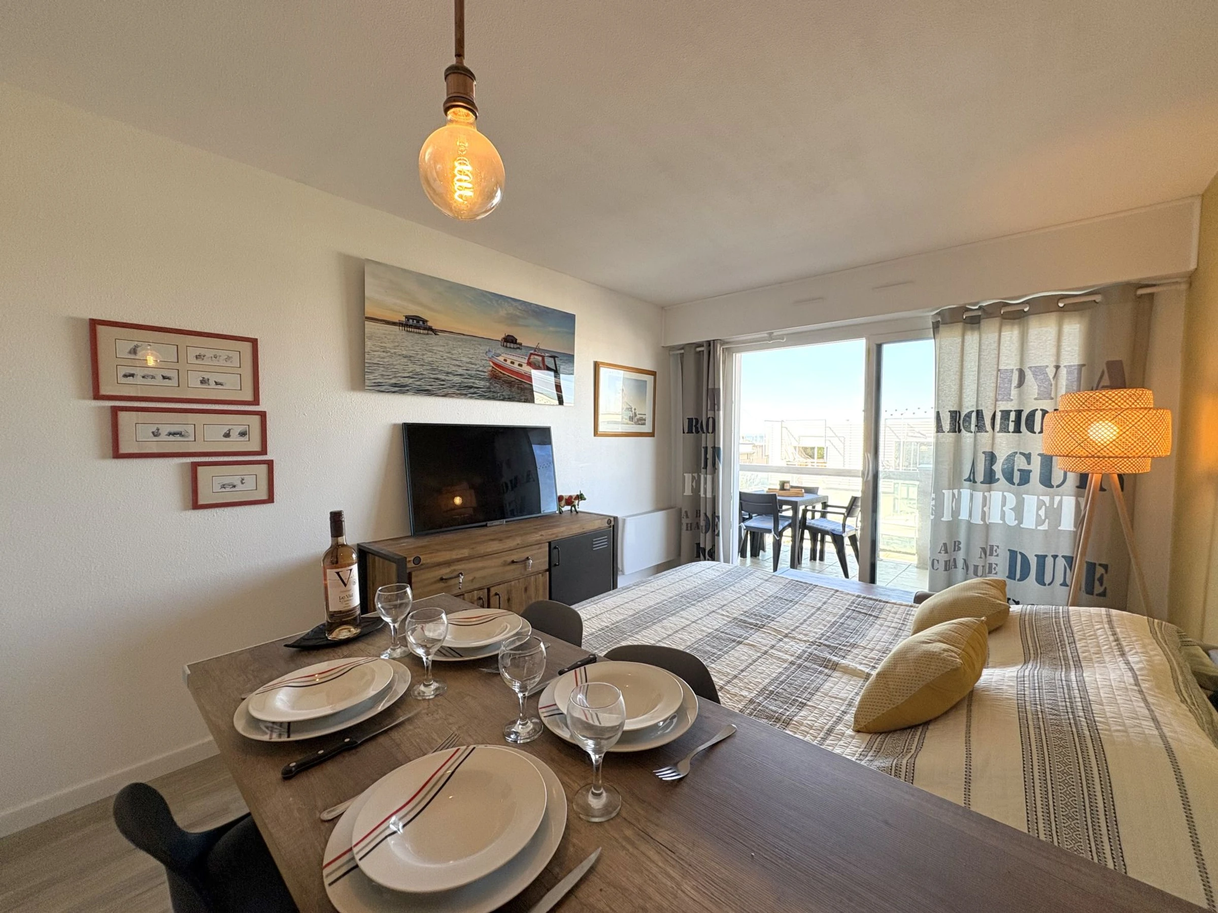 Apt 2 pièces 35 m2 au 2ème étage. Aménagement confortable: séjour/salle à manger avec 1 divan-lit double (1 x 140 cm, longueur 190 cm), TV (écran plat). Sortie sur la terrasse. 1 chambre avec 1 grand-lit (1 x 140 cm, longueur 190 cm). Sortie sur la terrasse. Cuisine ouverte (lave-vaisselle, 2 plaques à induction, grille-pain, bouilloire électrique, congélateur, cafetière électrique, Capsules pour machine à café (Nespresso) (NON INCLUSES), combiné micro-ondes). Douche/WC. Chauffage électrique. Grande terrasse 16 m2, situation nord et situation est. Meubles de terrasse. Vue partielle sur la mer et le Bassin d'Arcachon. A disposition: lave-linge, sèche-cheveux. Internet (Connexion WIFI, en sus). Place de parking No 324 (cloturée, 1 Voiture). Veuillez noter: détecteur de fumée. Annonce d'un particulier (art 155, IV du CGI). [hidden]