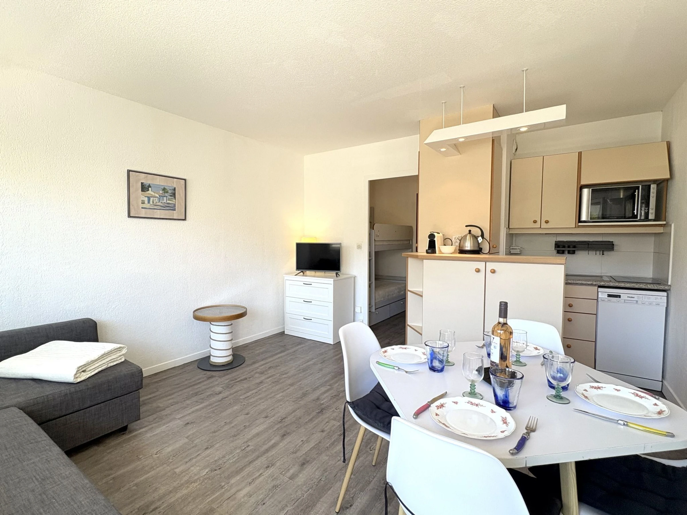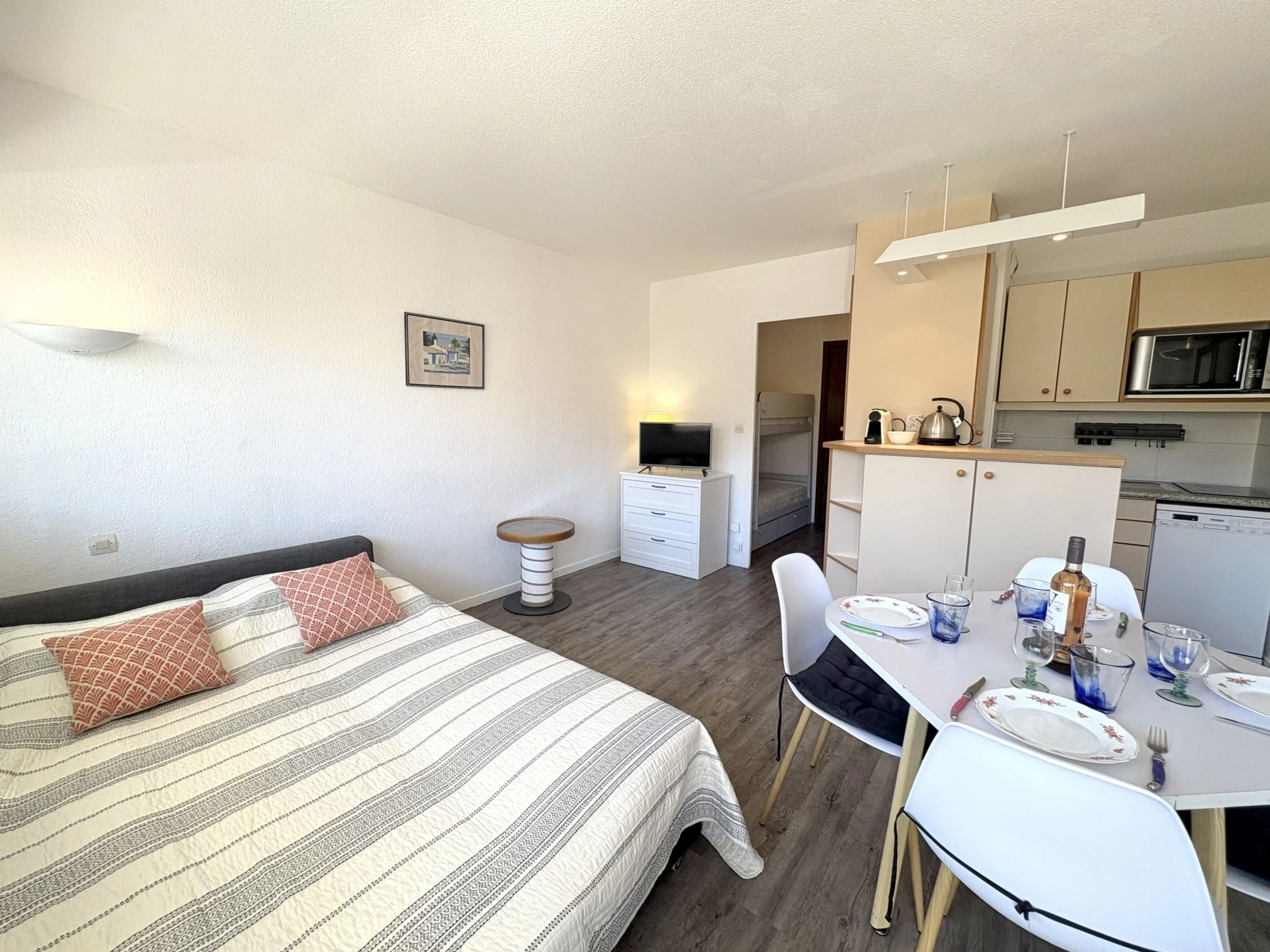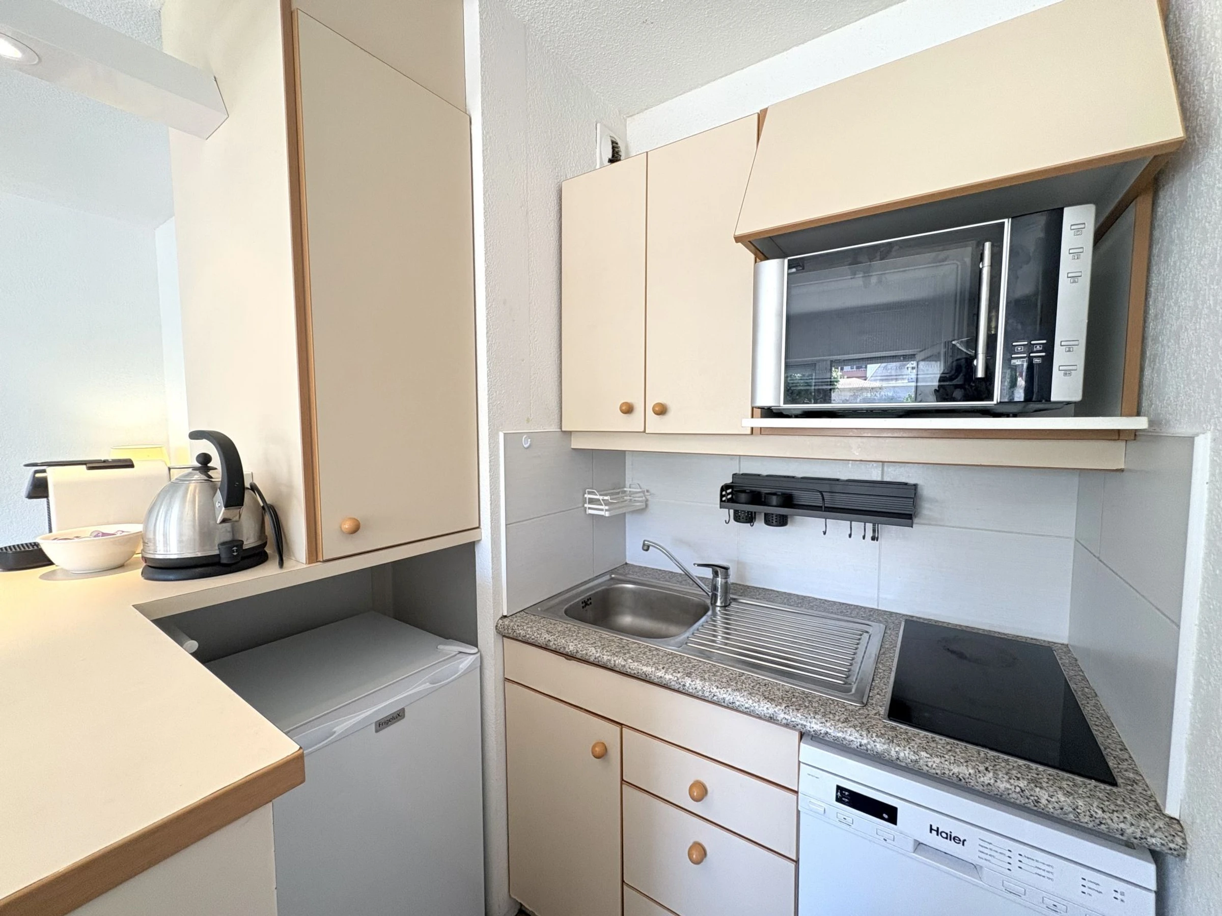 Studio 30 m2, au rez-de-chaussée. Logement idéal pour 2 adultes + 2 enfants. Aménagement confortable: séjour/salle à manger avec 1 divan-lit double (1 x 140 cm, longueur 190 cm). Sortie sur le balcon. Cabine avec 1 x 2 lits superposés (90 cm, longueur 190 cm). Cuisine ouverte (lave-vaisselle, 2 plaques à induction, grille-pain, bouilloire électrique, cafetière électrique, Capsules pour machine à café (Nespresso), combiné micro-ondes). Bain/WC. Chauffage électrique. Balcon 6 m2, situation sud. Mobilier de balcon. A disposition: sèche-cheveux. Internet (Connexion WIFI, en sus). Place de parking (cloturée, 1 Voiture). Veuillez noter: détecteur de fumée. Annonce d'un particulier (art 155, IV du CGI). [hidden]