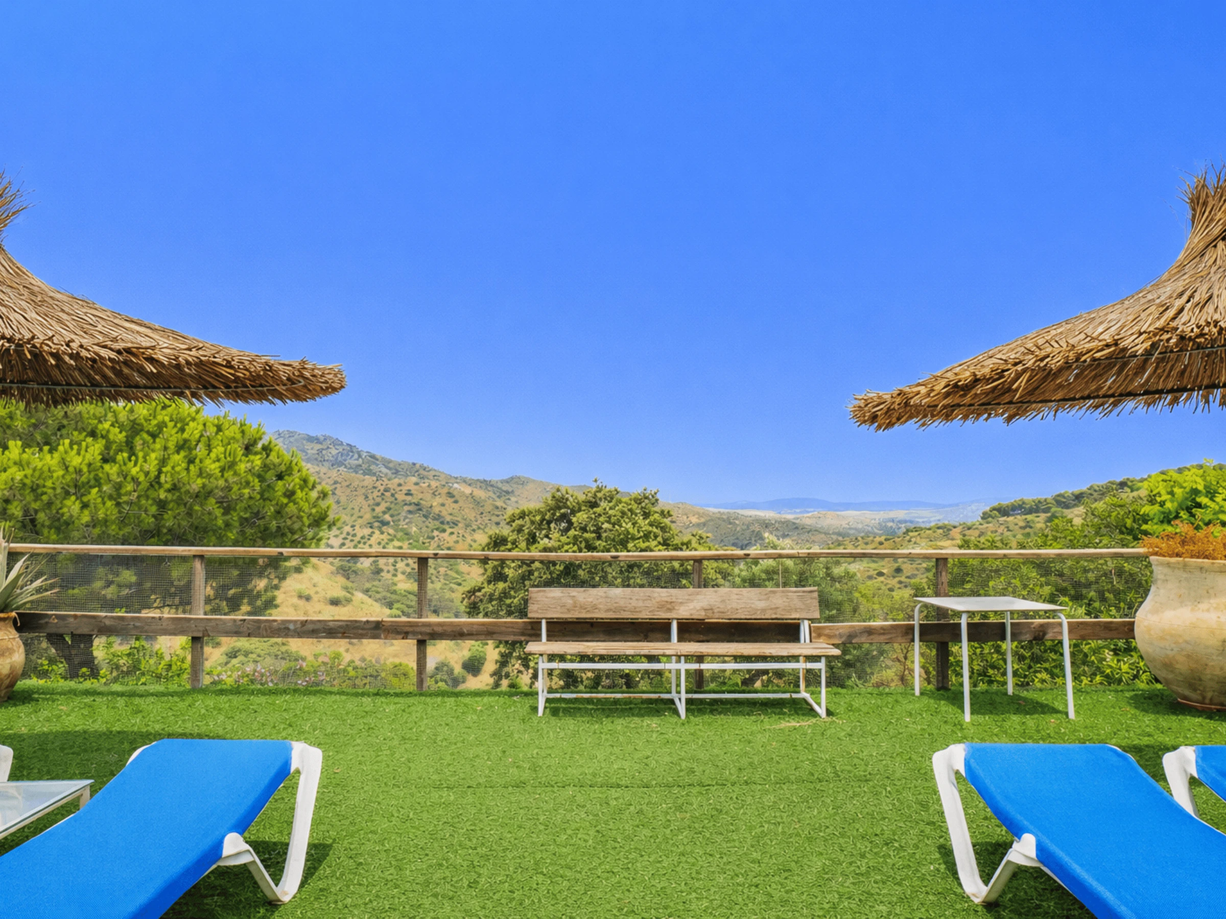 Avec 100 m² de superficie, le logement offre une vue sur la montagne, une grande terrasse de 100 m², une piscine privée et une zone ajardinée avec barbecue, le tout dans une parcelle clôturée pour plus de confidentialité. De plus, il dispose d'un parking privé et de moustiquaires dans toute la maison.