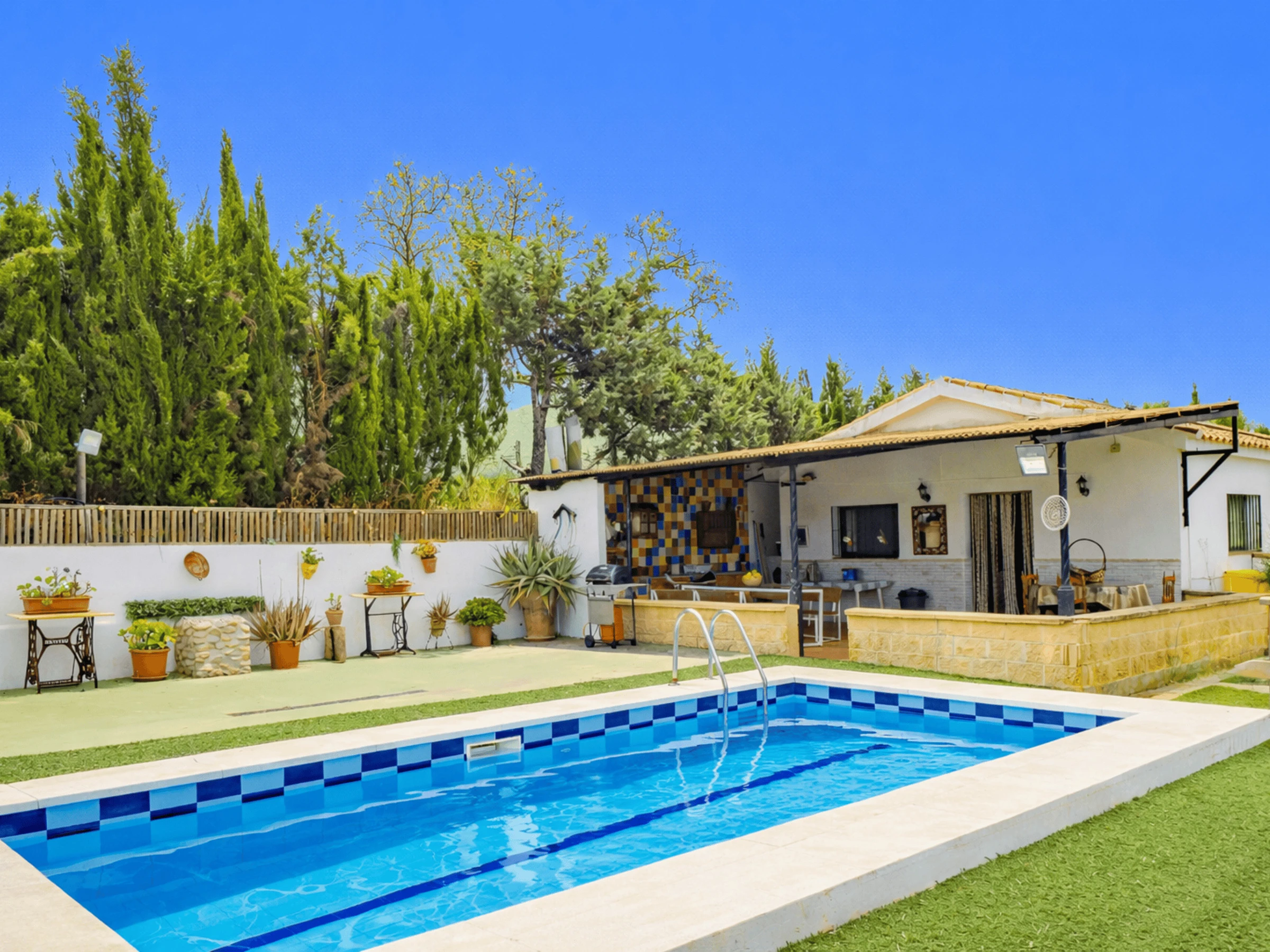 Profitez d'une ambiance chaleureuse avec cheminée pour les mois les plus frais, climatisation et chauffage dans le salon et l'une des chambres, ainsi que le wifi gratuit, un lave-linge, la télévision et du mobilier d'extérieur pour des repas en plein air ou des après-midis de détente sous le soleil andalou.
