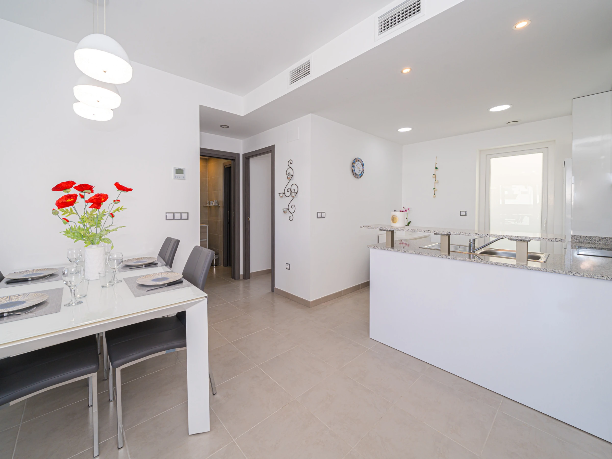 La location se trouve à 500 m de la plage de sable, 500 m du restaurant, 1 km de la ville "Arenales del Sol", 1 km du super-marché, 5 km de l'aéroport "Alicante", 15 km du domaine de Golf et il est situé dans une zone idéale pour familles zone et près de la mer.